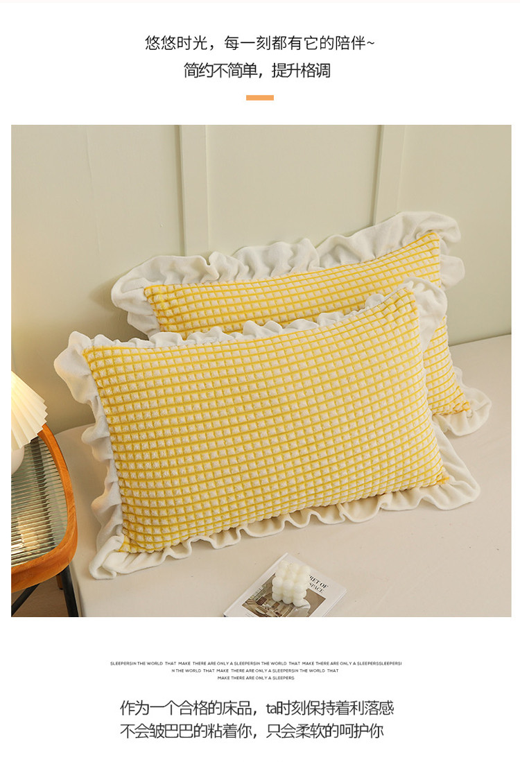 商品名称:慕澄 2022新款牛奶绒花边枕套48*74一对 满天星