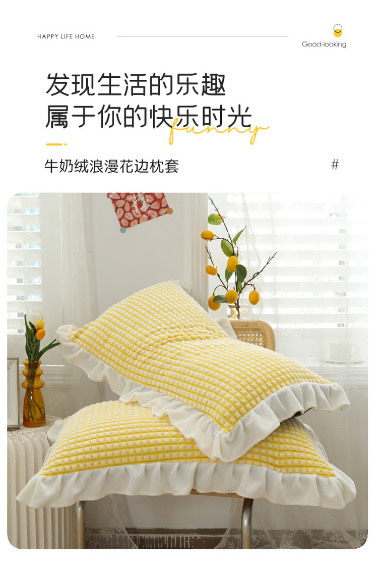 慕澄 2022新款牛奶绒花边枕套48*74一对 满天星