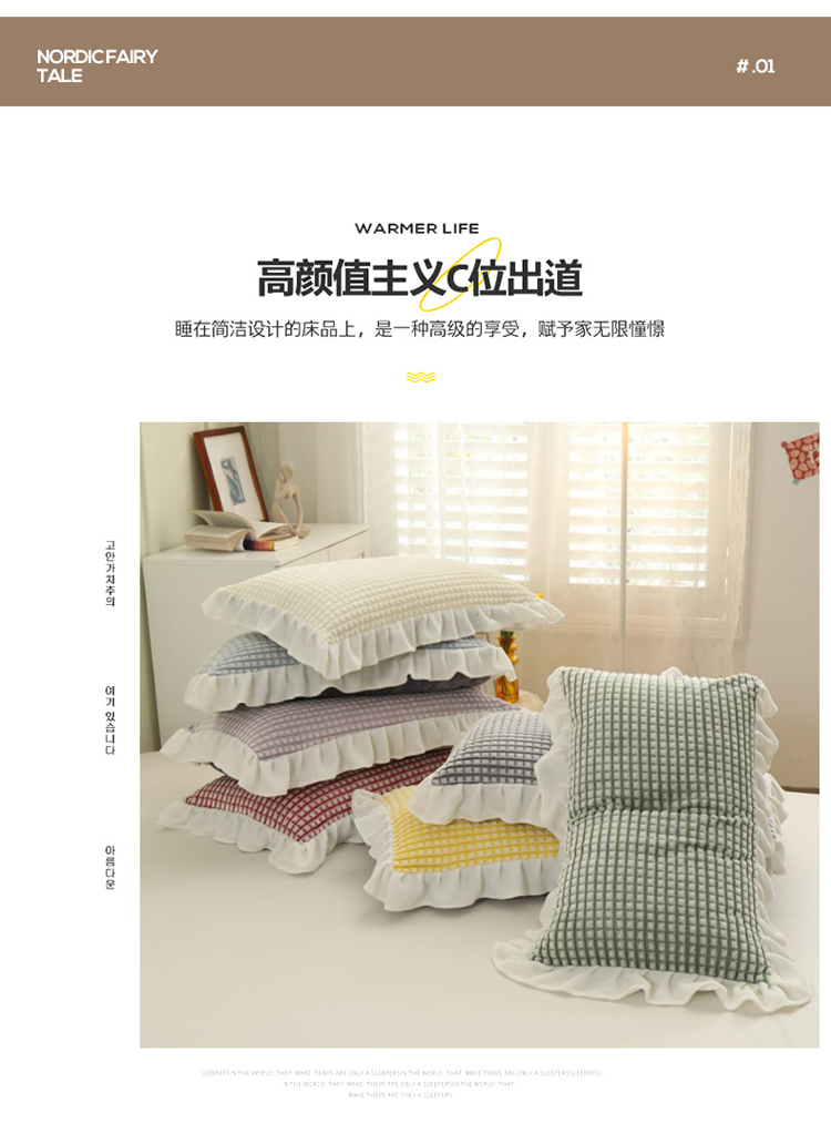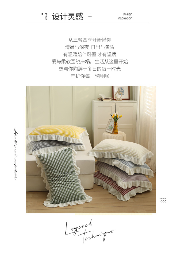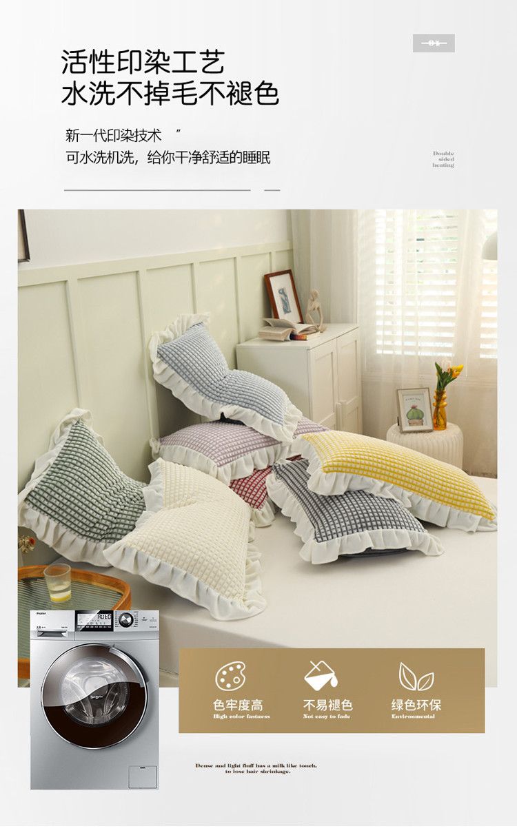 总慕澄家纺 2022新款韩版泡泡纱花边四件套(手机实拍),公主粉,极致灰,梨花白,梨花白+灰,奶油黄,宁静蓝,优雅紫