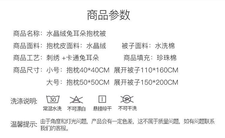 抱枕50*50cm被子150*200cm