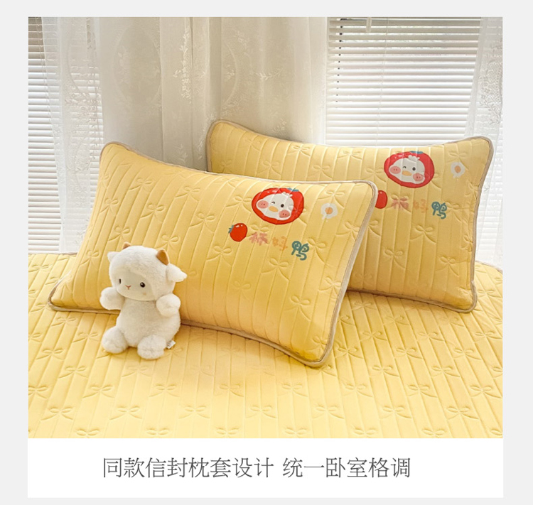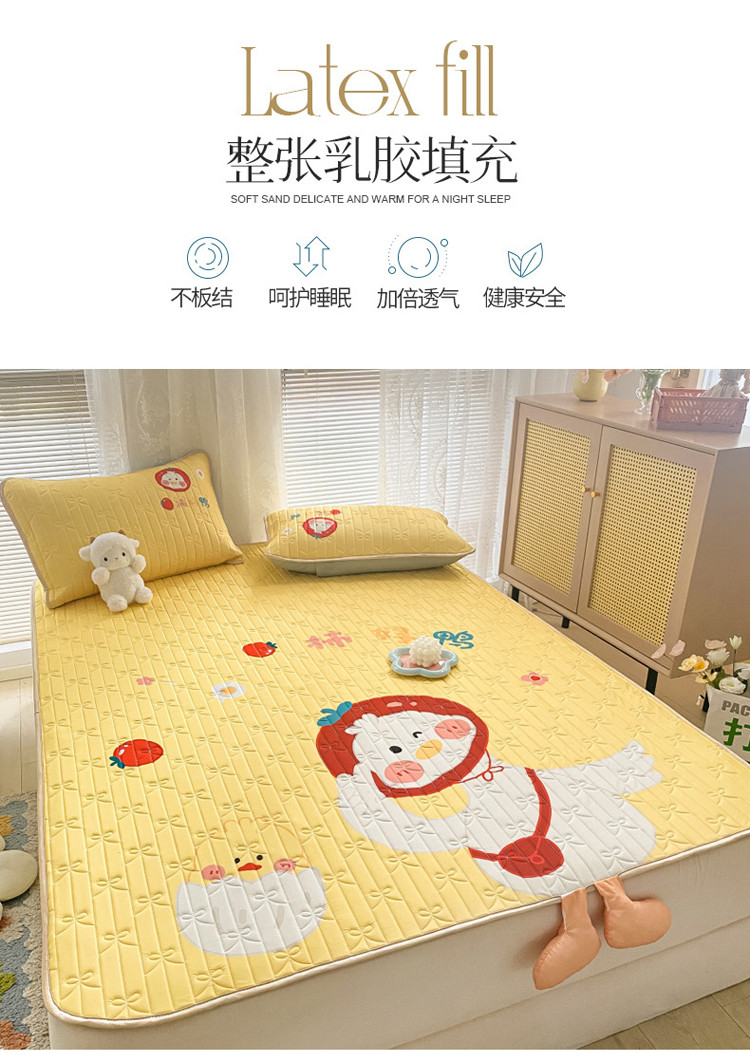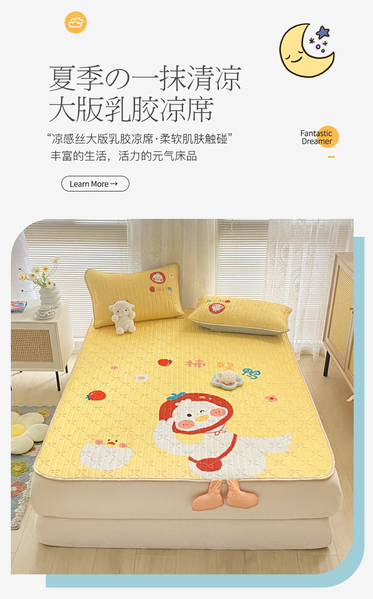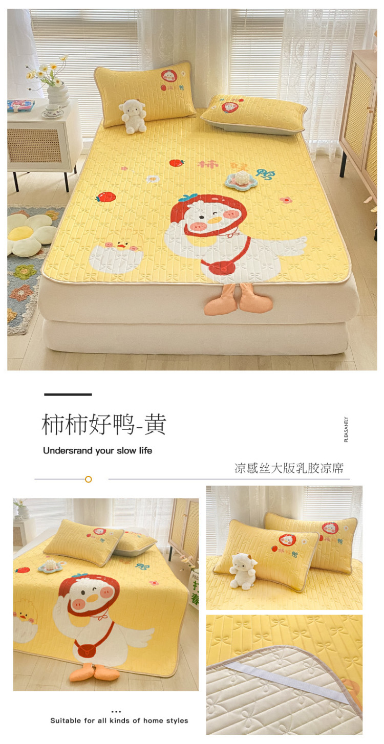 商品名称:沐慕 2022新款工艺款大版乳胶凉席 柿柿好鸭-黄