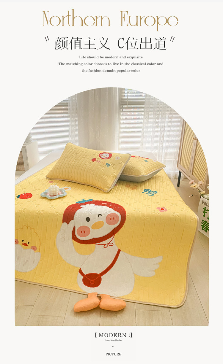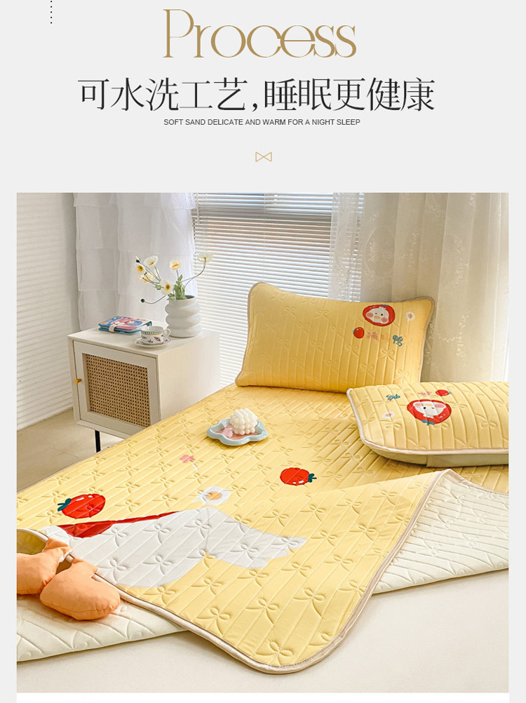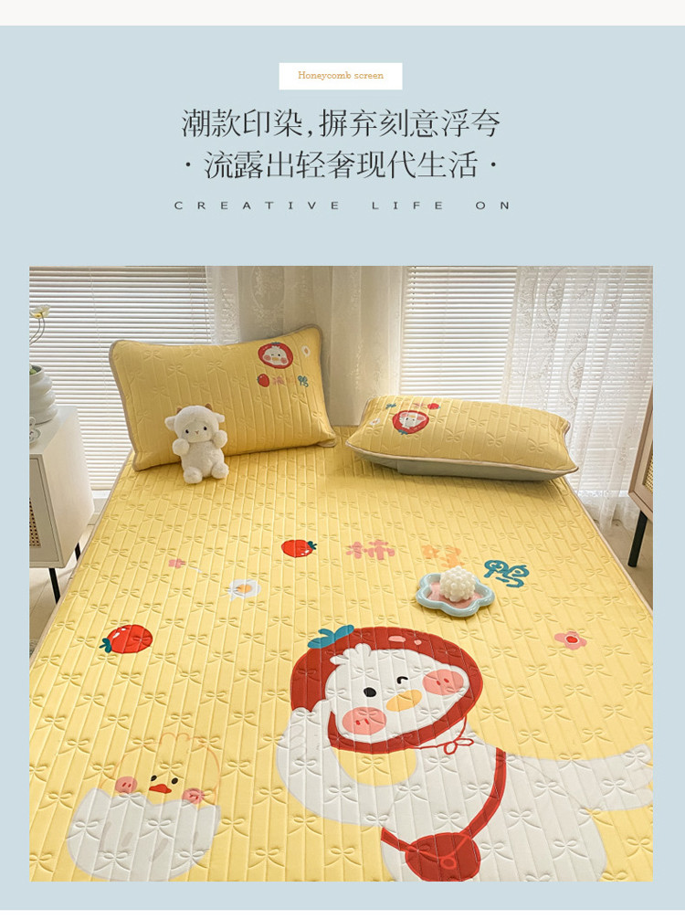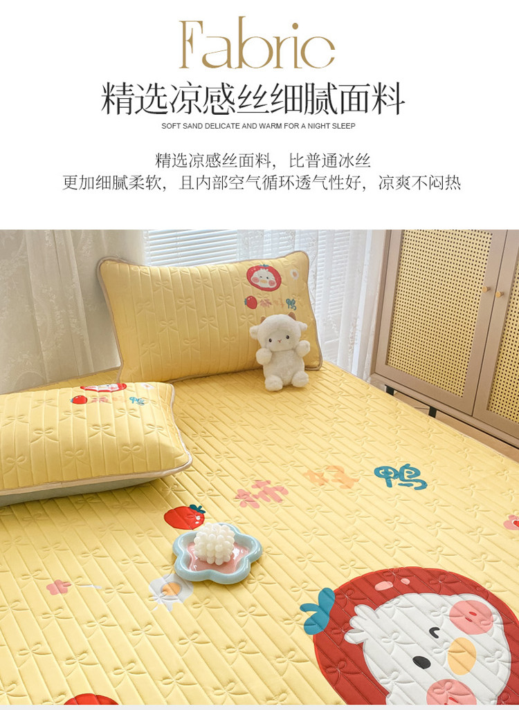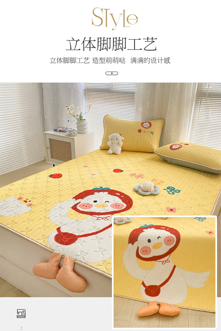 商品名称:沐慕 2022新款工艺款大版乳胶凉席 柿柿好鸭-黄