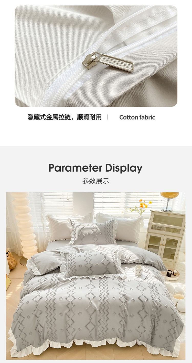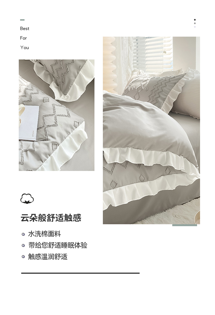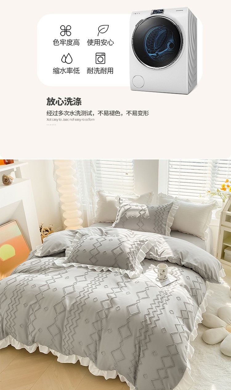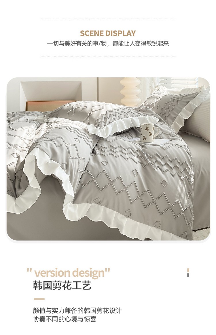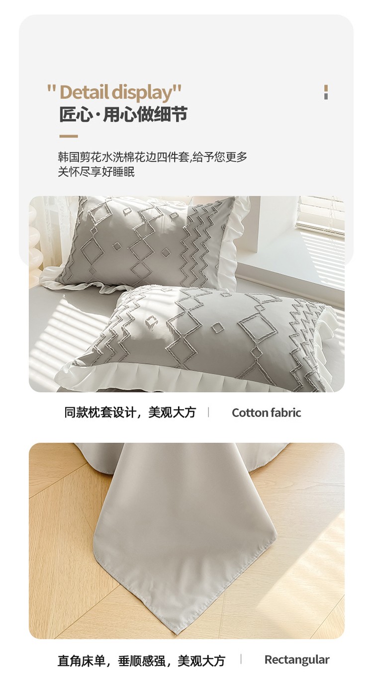 商品名称:米莱家纺2022新款剪花水洗棉花边四件套 极 致灰