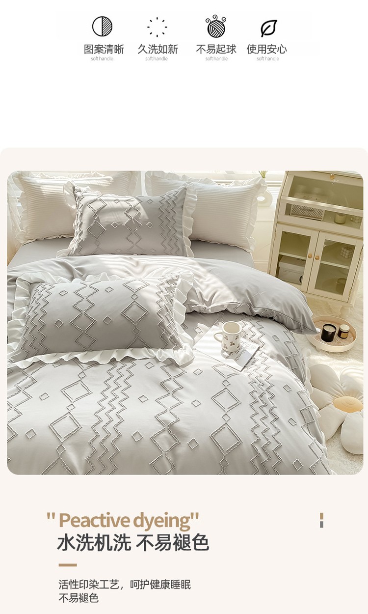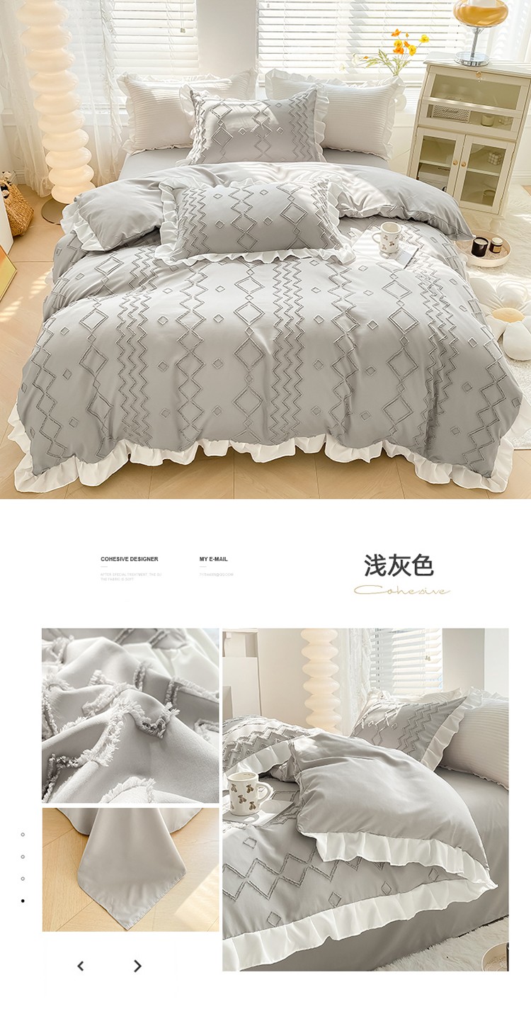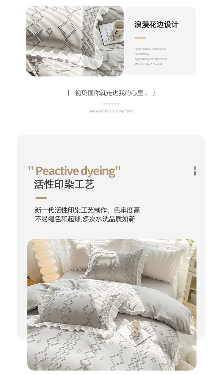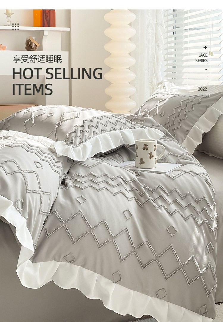 商品名称:米莱家纺2022新款剪花水洗棉花边四件套 极 致灰