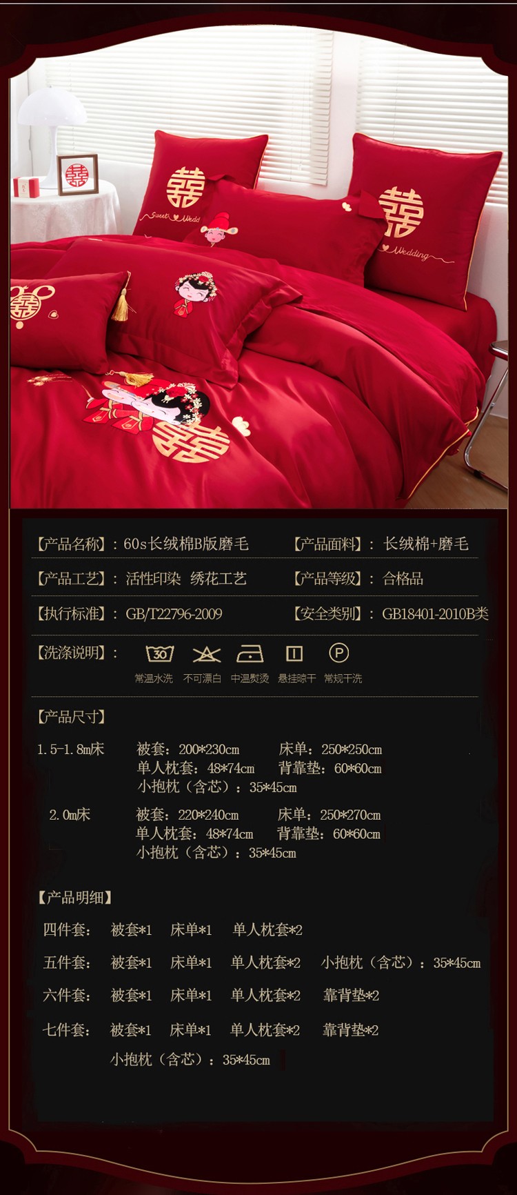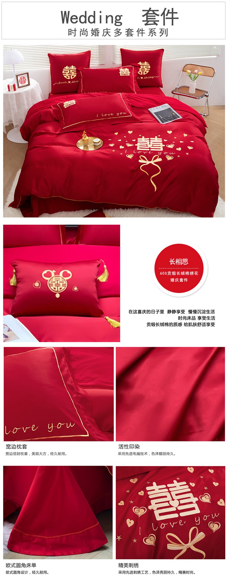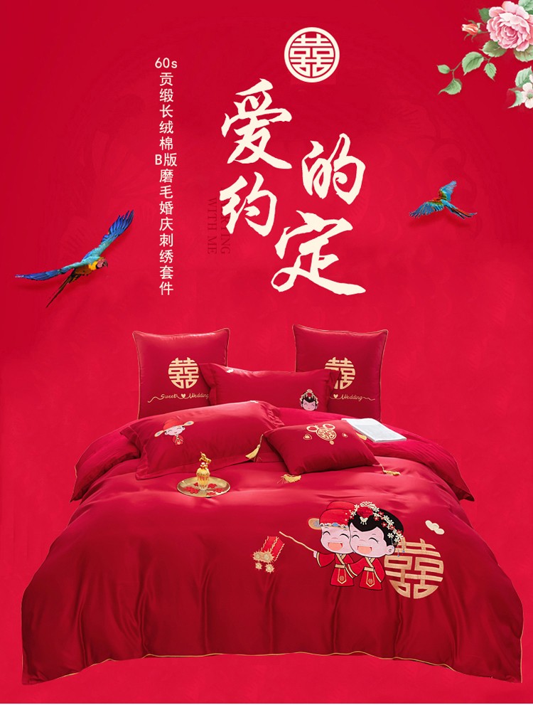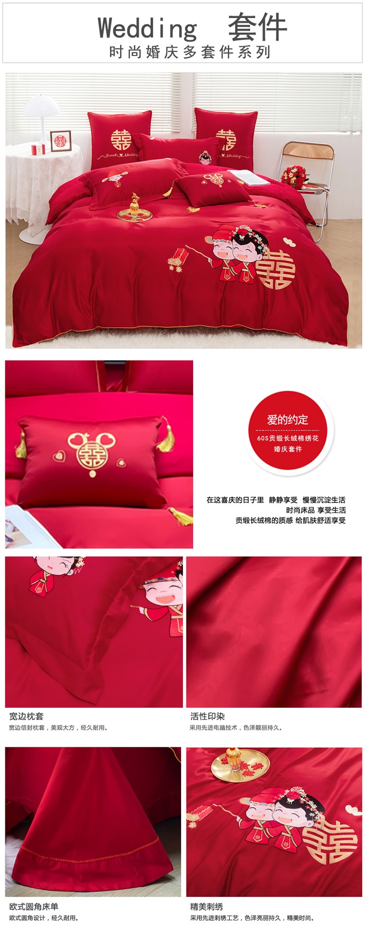 (总)甜咪咪婚庆 2025新款50支长绒棉全棉婚庆床单床盖四件套多件套刺绣工艺,洛可可,爱恋小熊,爱意久久,多子多福,花田喜事,节节高升,克拉恋人,浪漫情怀,怦然心动红,怦然心动玉,甜心玫瑰,温莎公主,伊甸园,醉红妆