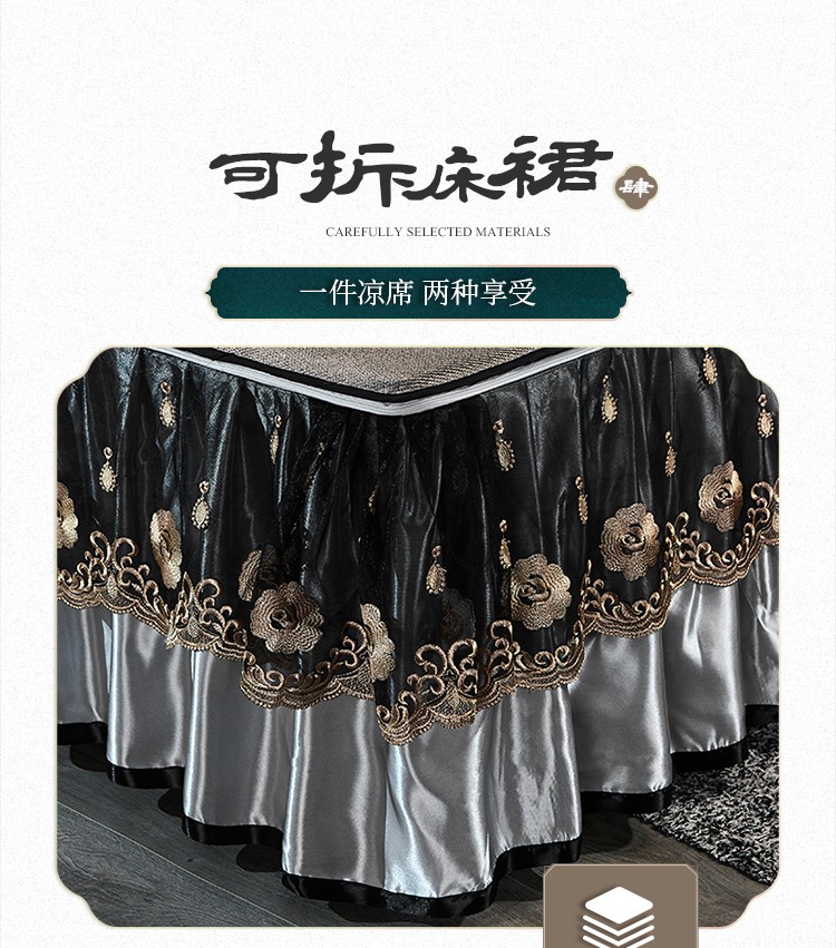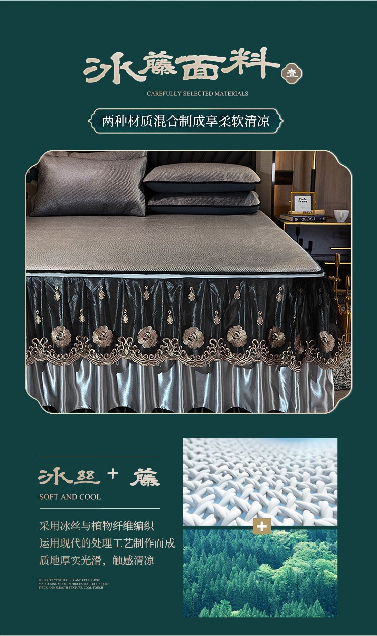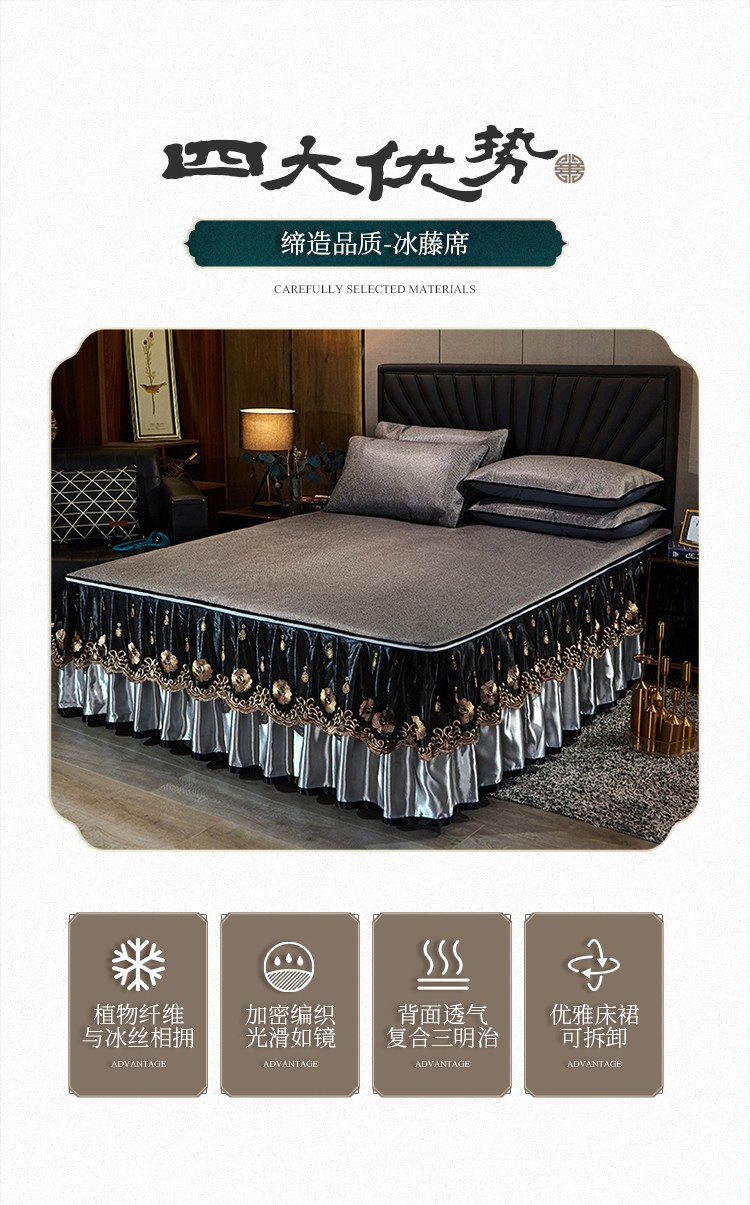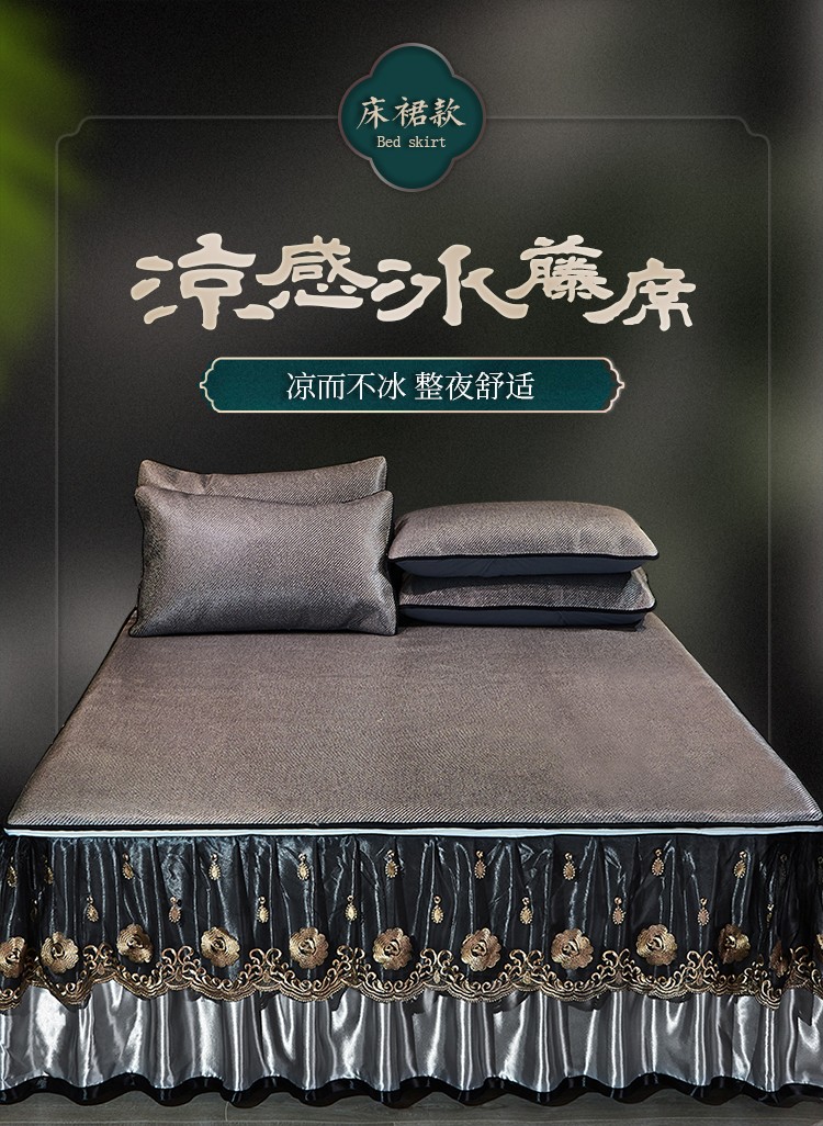 商品名称:瑞宝 2025新款床裙冰藤席三件套 灰色