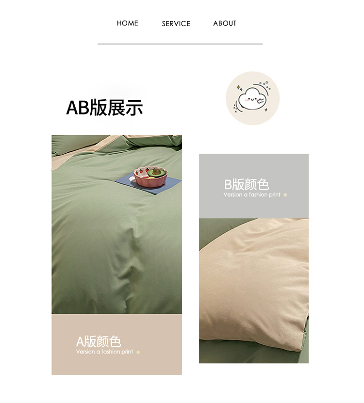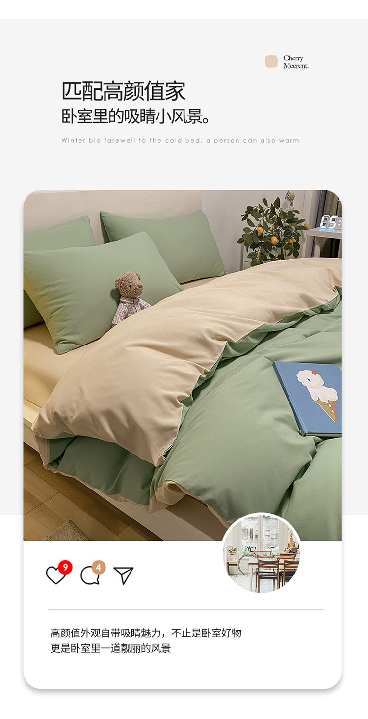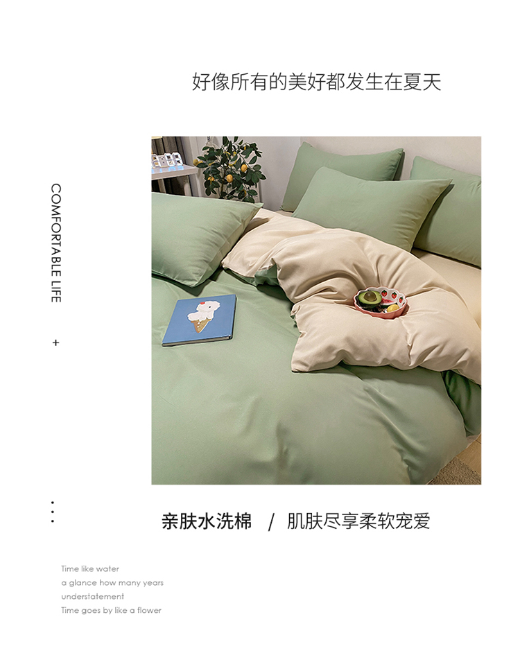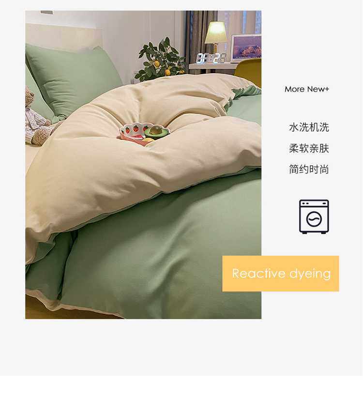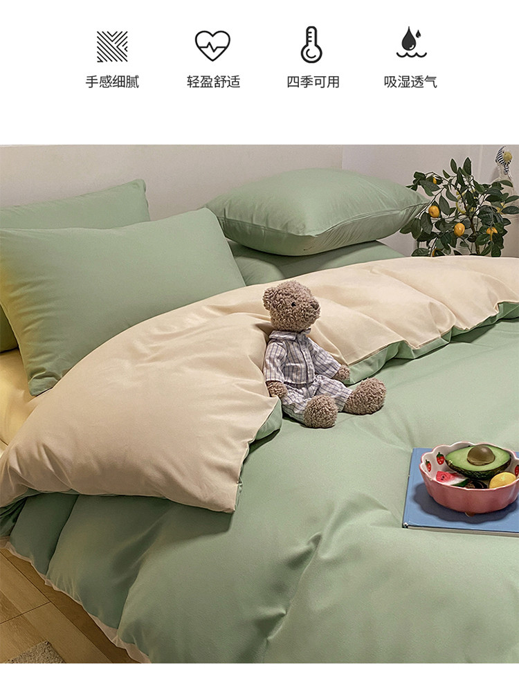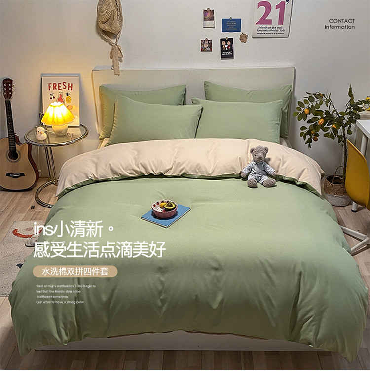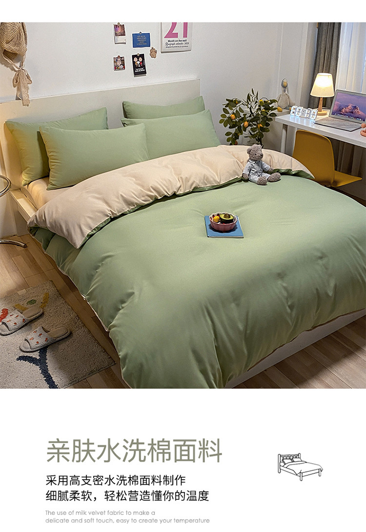 商品名称:(总)同田 2023新纯色拼色水洗棉四件套三件套