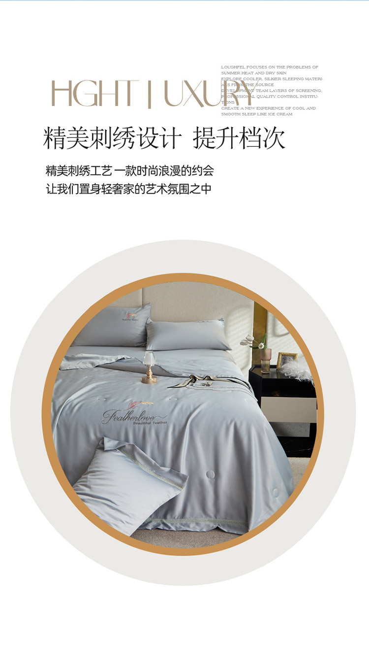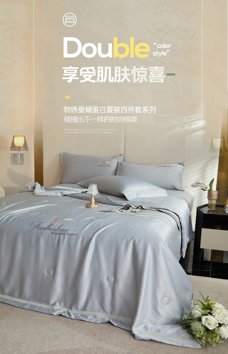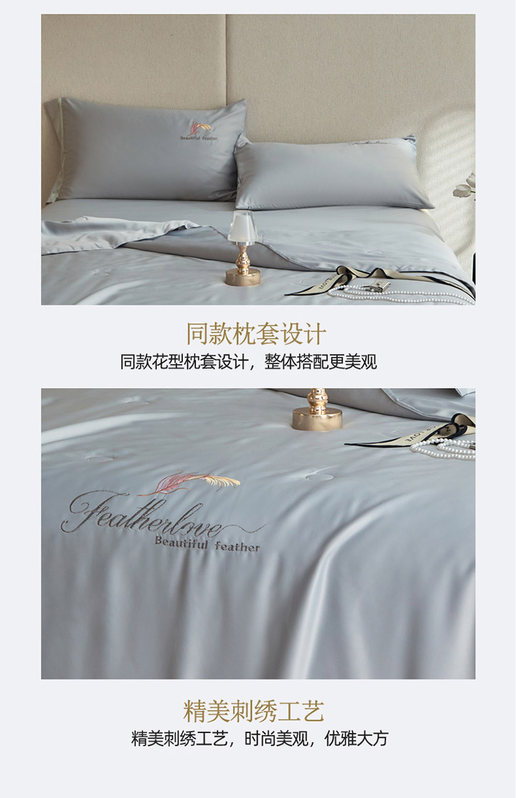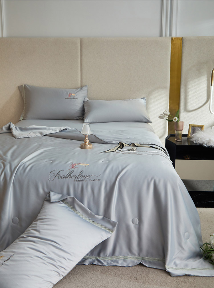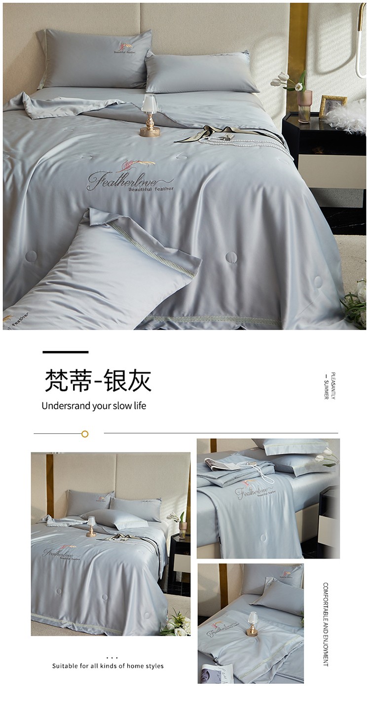 凡客2022水洗天丝刺绣蚕蛹蛋白梵蒂夏被四件套梵蒂-银灰