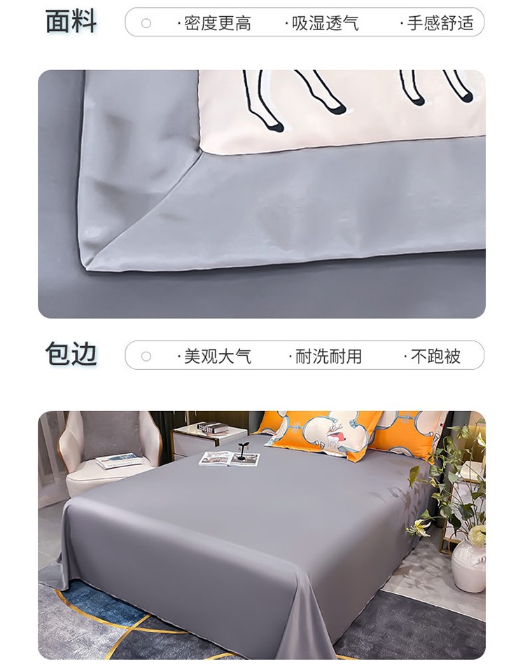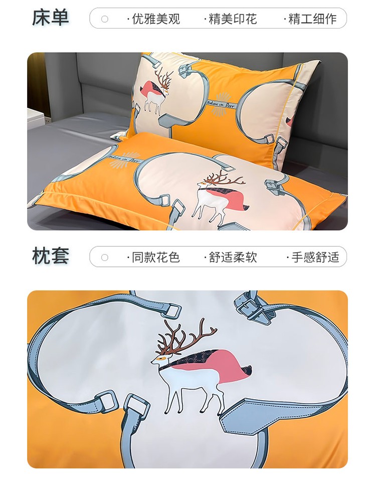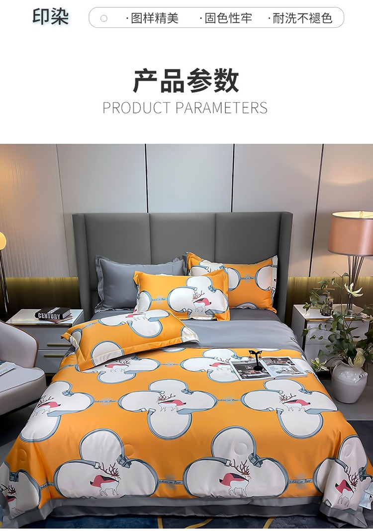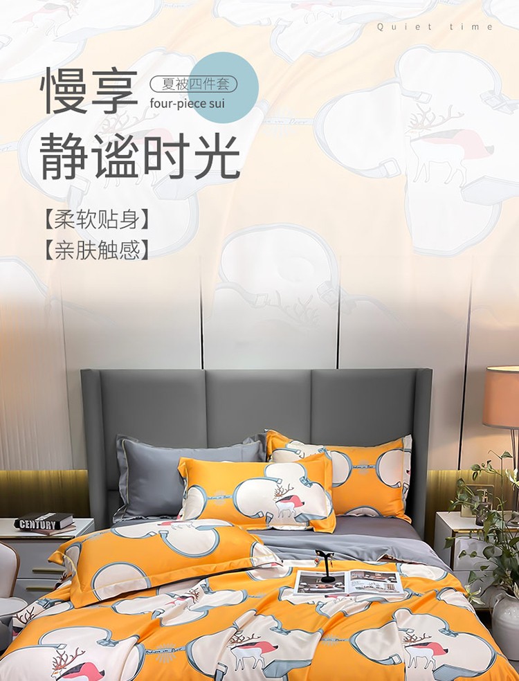 商品名称:铠畅 2022新款床单款夏被四件套 橘色心情