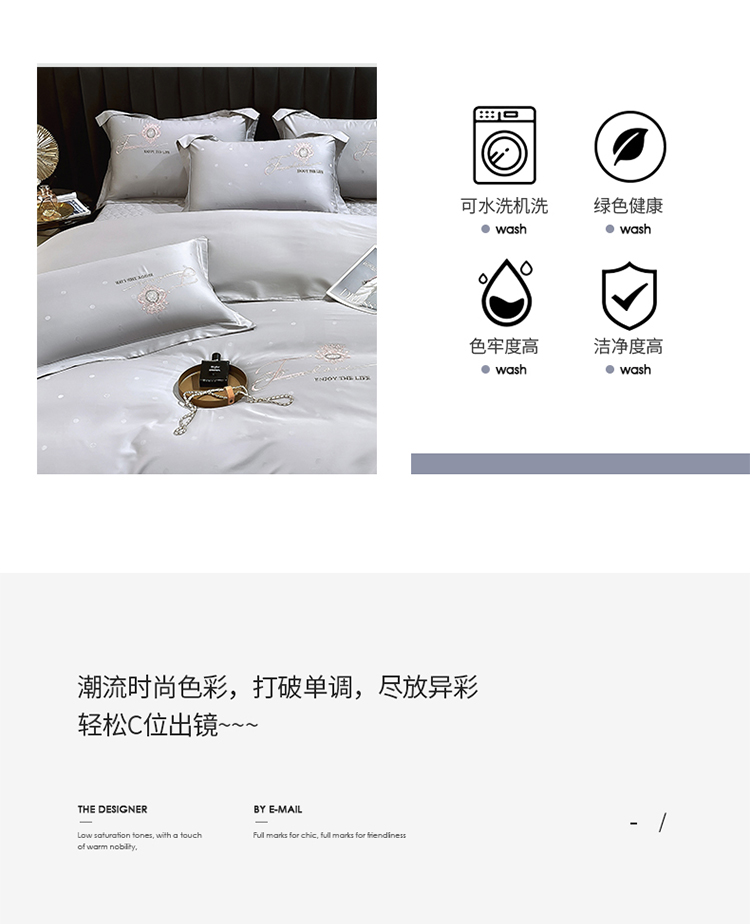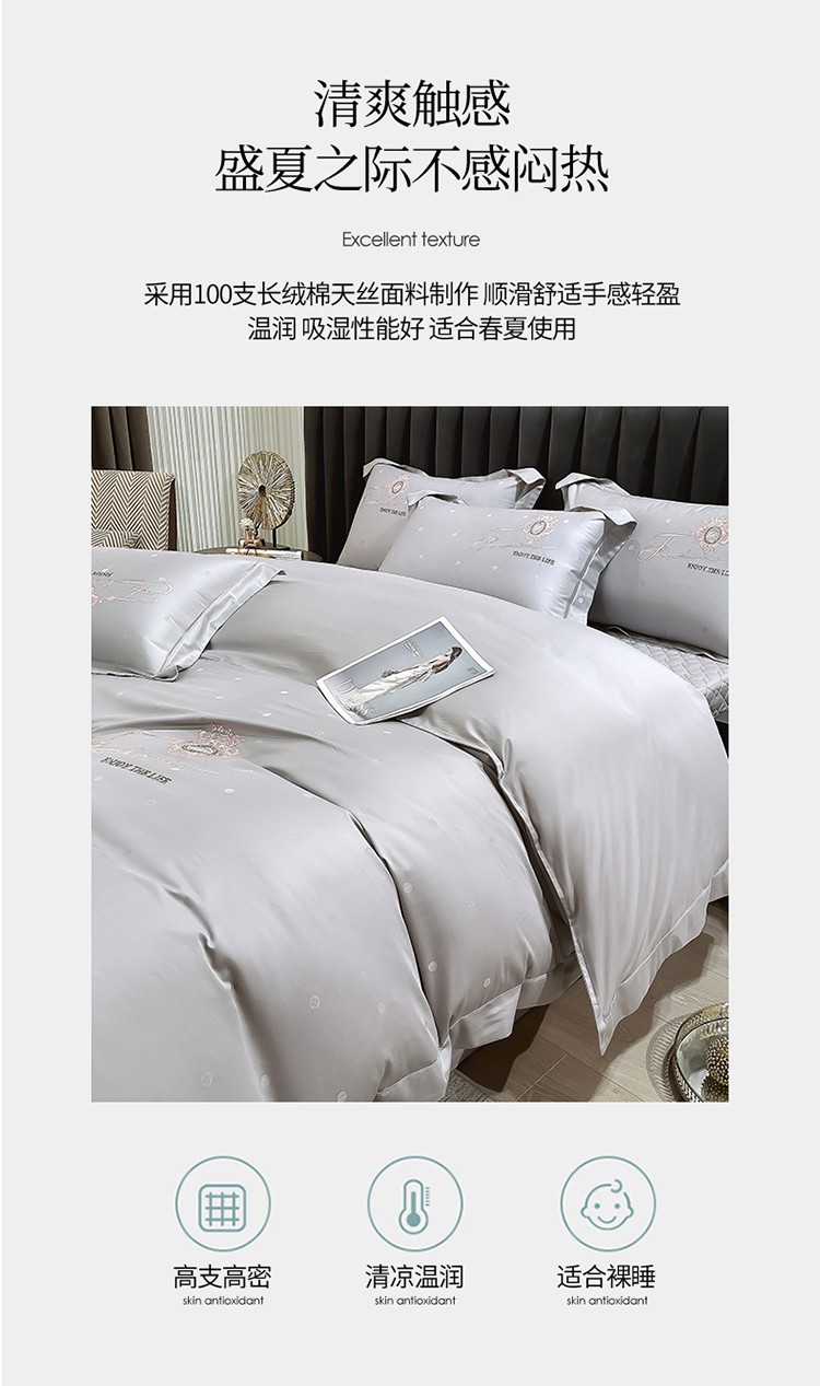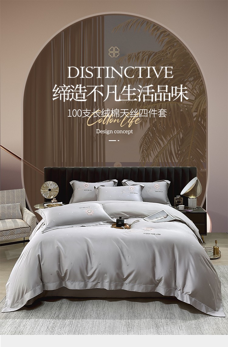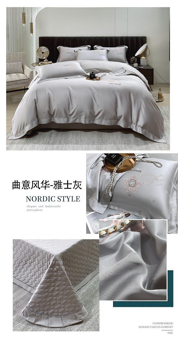 商品名称:小时代2022款100支长绒棉天丝床盖四件套曲意风华 雅士灰