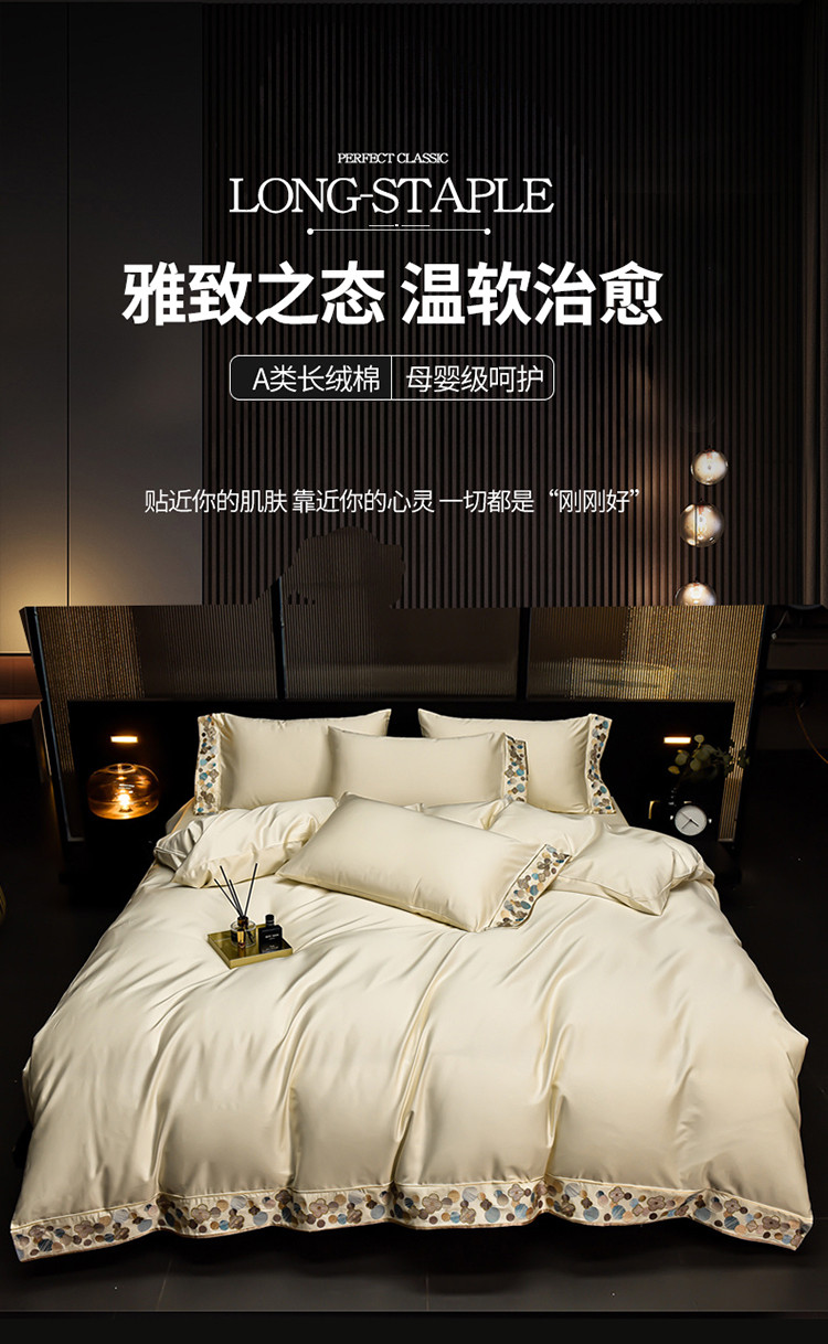 金莎浪 2023新款瑾雅系列100支长绒棉四件套 瑾雅-米白