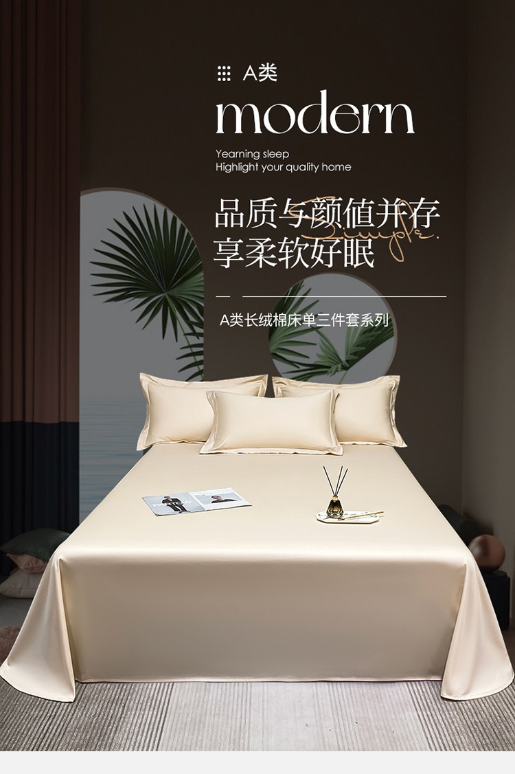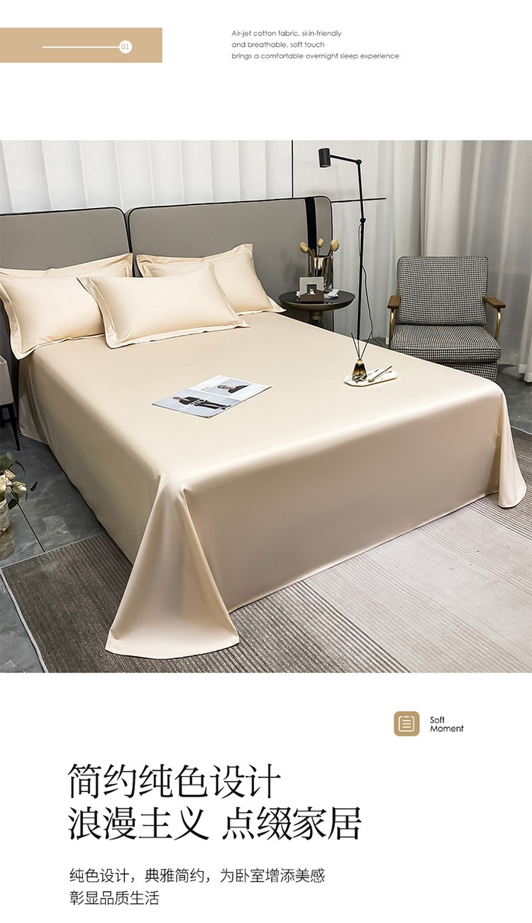商品名称:(总)秀色2025新款50支贡缎纯色双拼四件套长绒棉-单床单