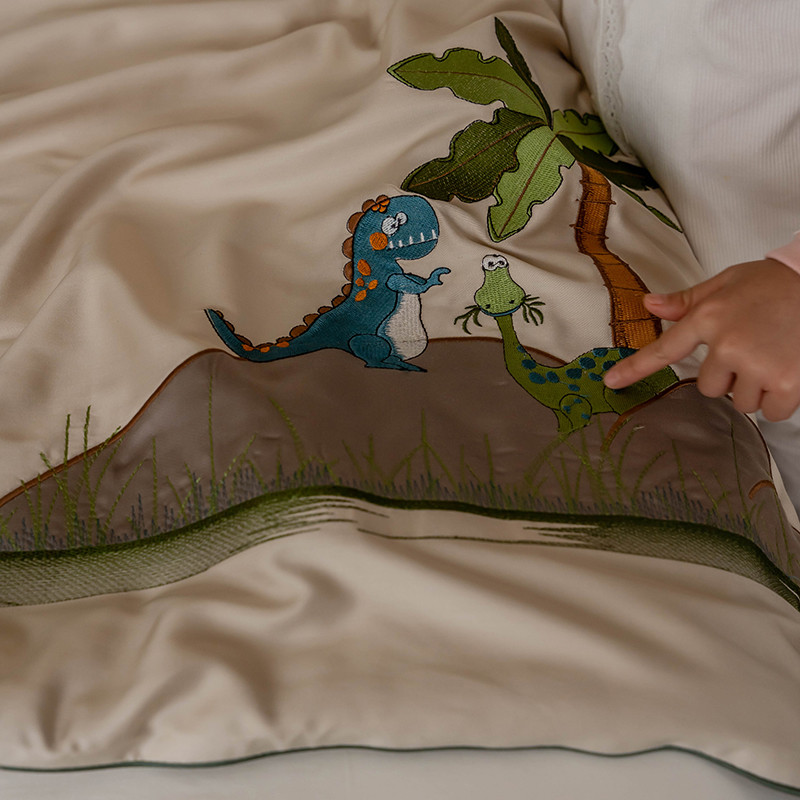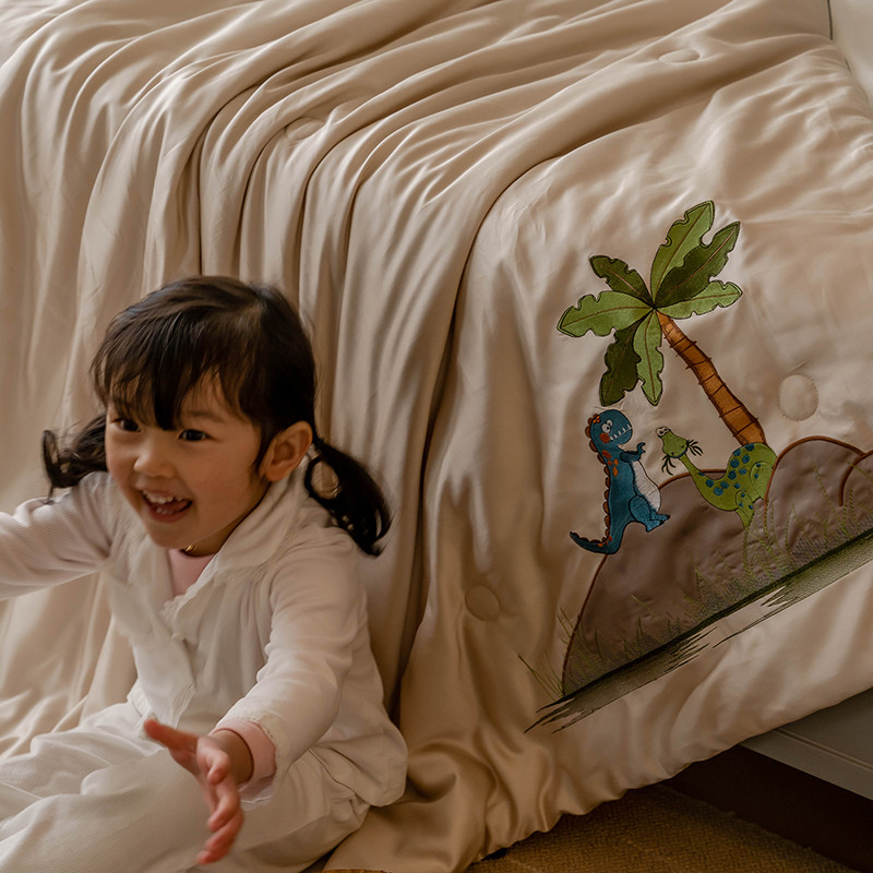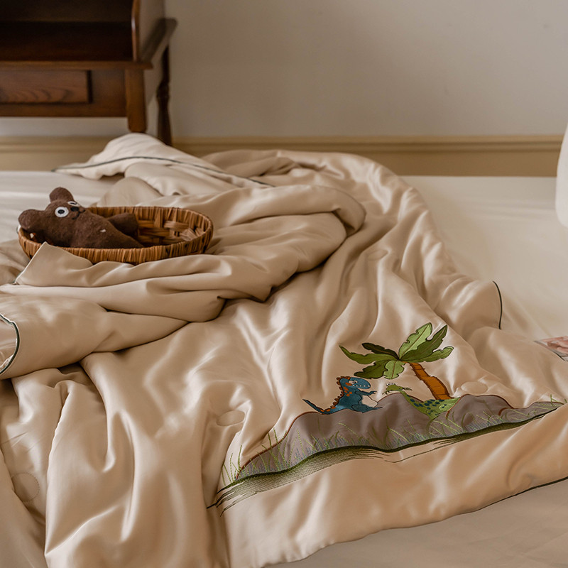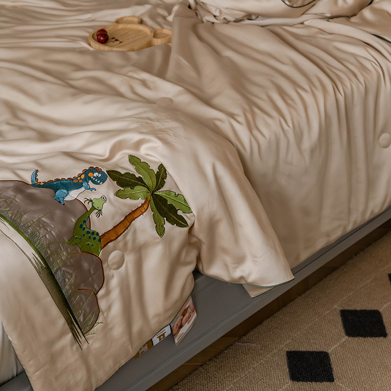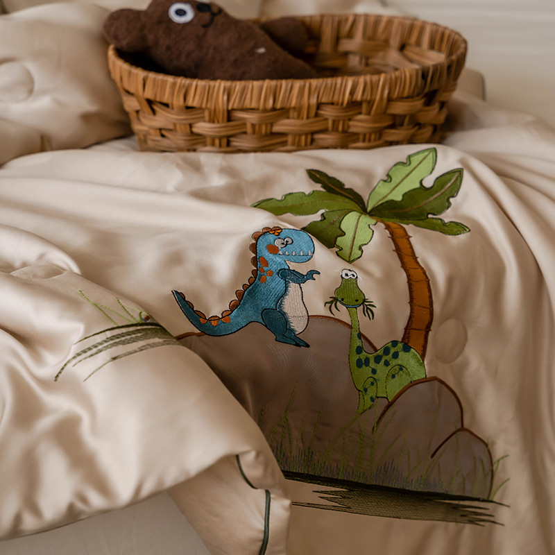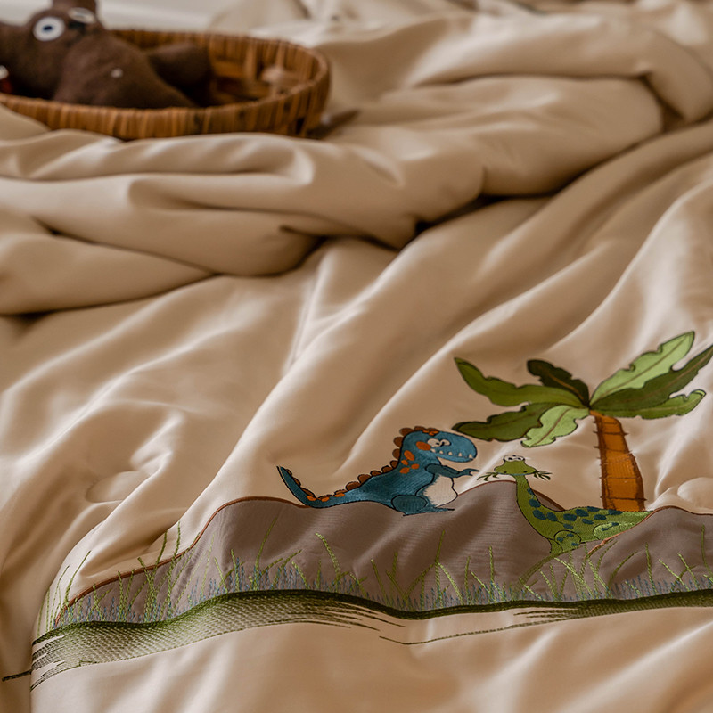 汇庭 2022新款单人绣花天丝夏被子被芯 恐龙米