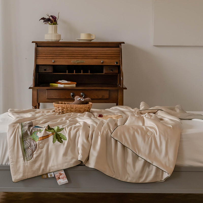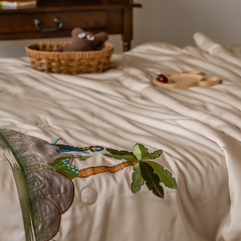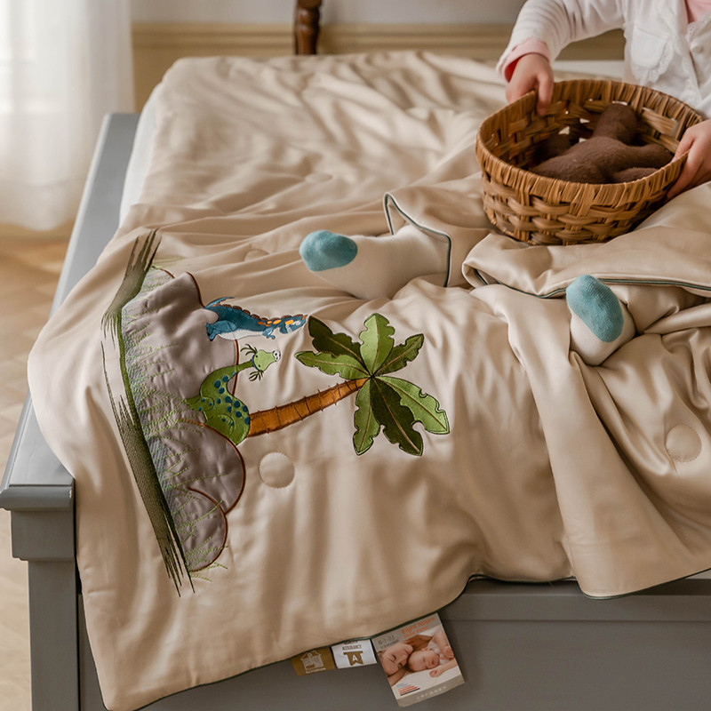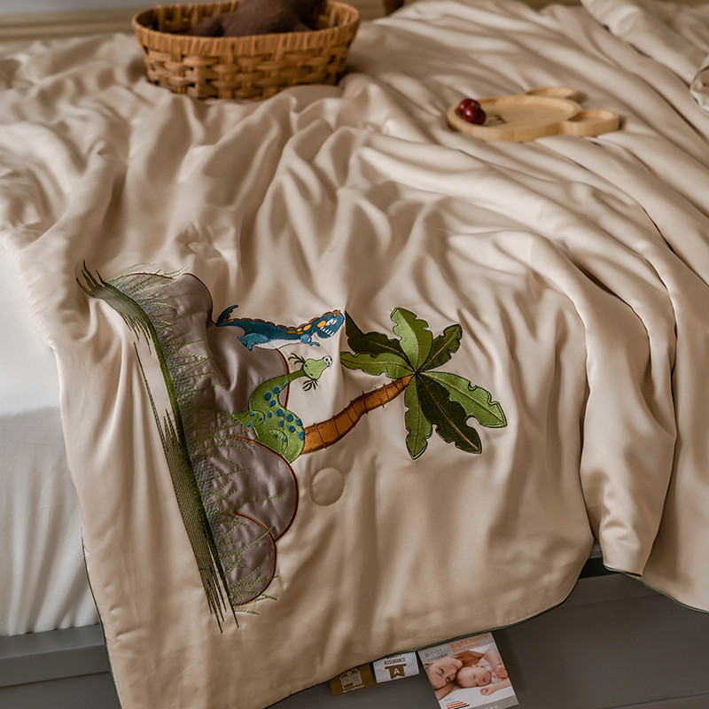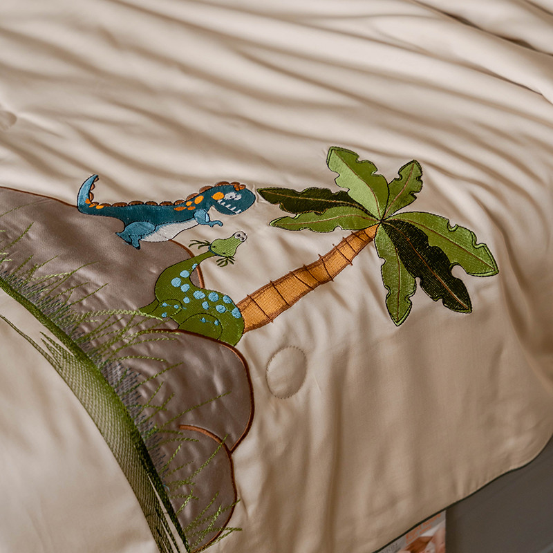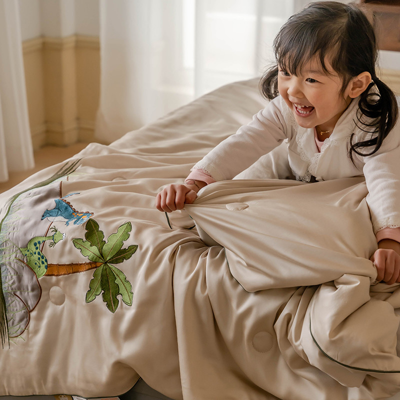 汇庭 2022新款单人绣花天丝夏被子被芯 恐龙米