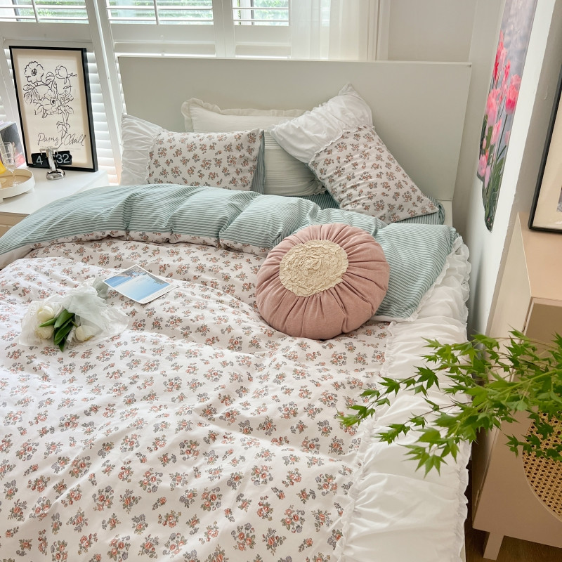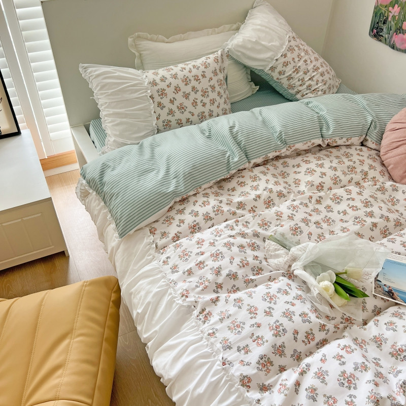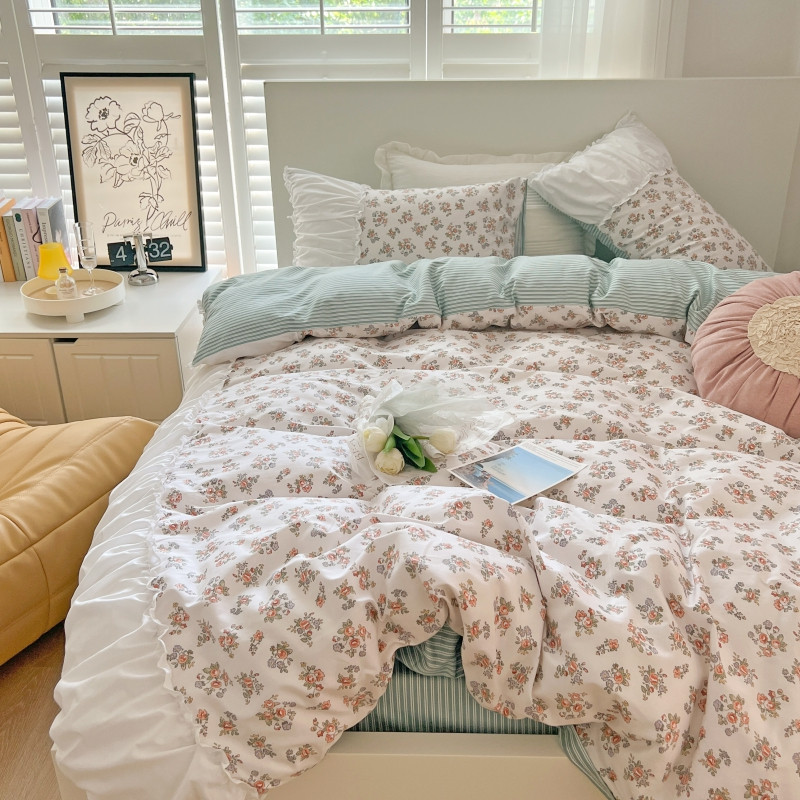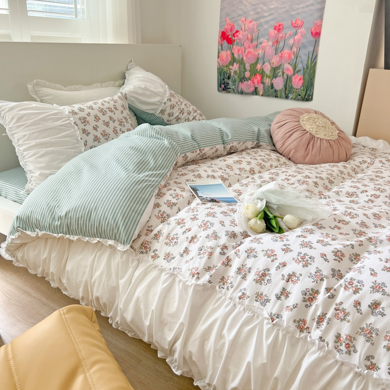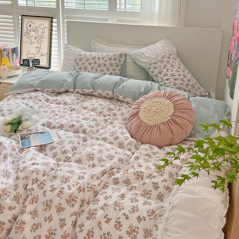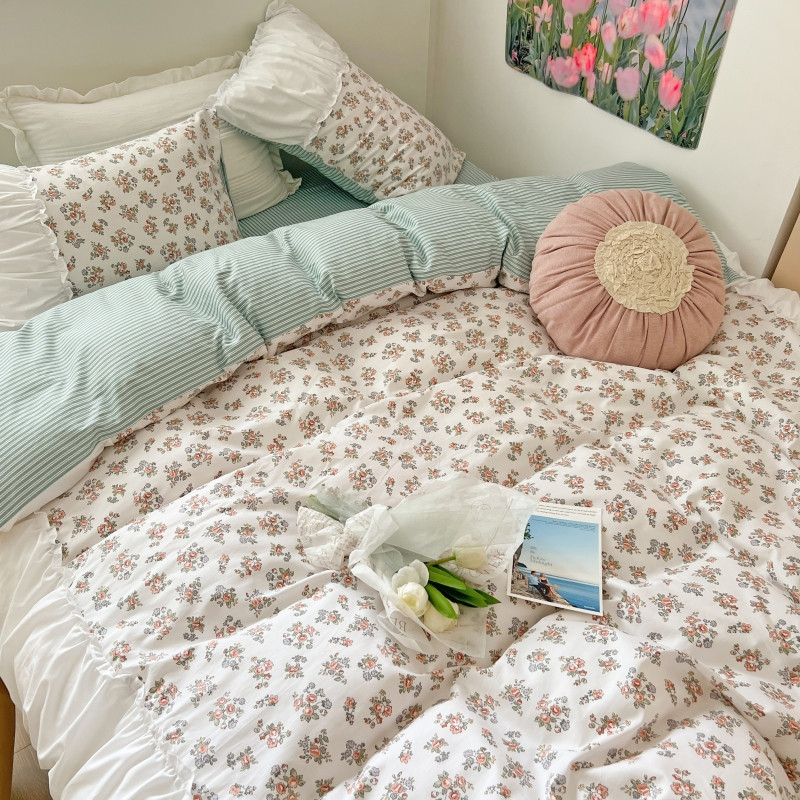 商品名称:顾里 2023新款法式甜美褶边全棉四件套-复古碎花系第一批 田园浪漫