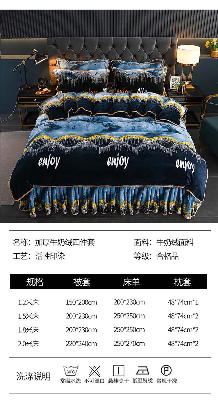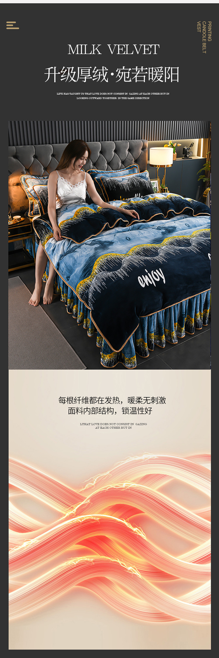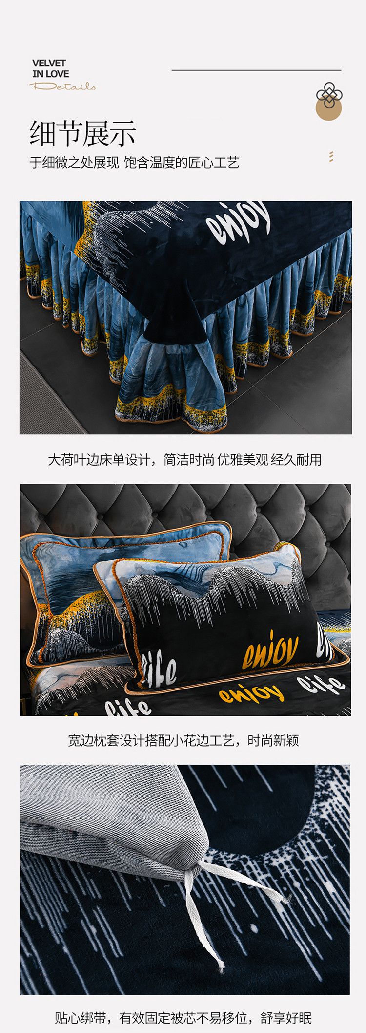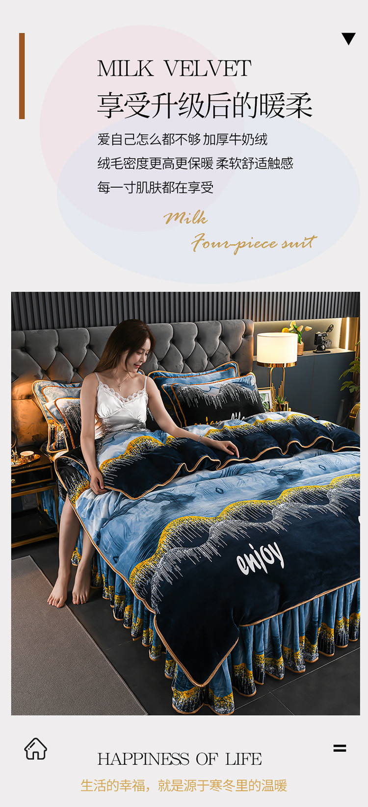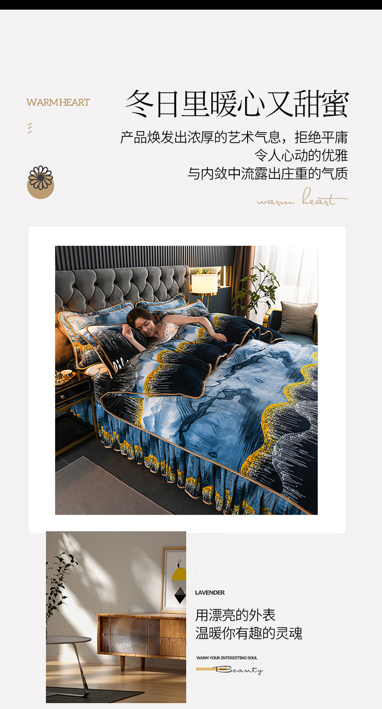 8.5-9.5斤法莱绒四件套珊瑚牛奶金貂绒四件套床裙水墨年华