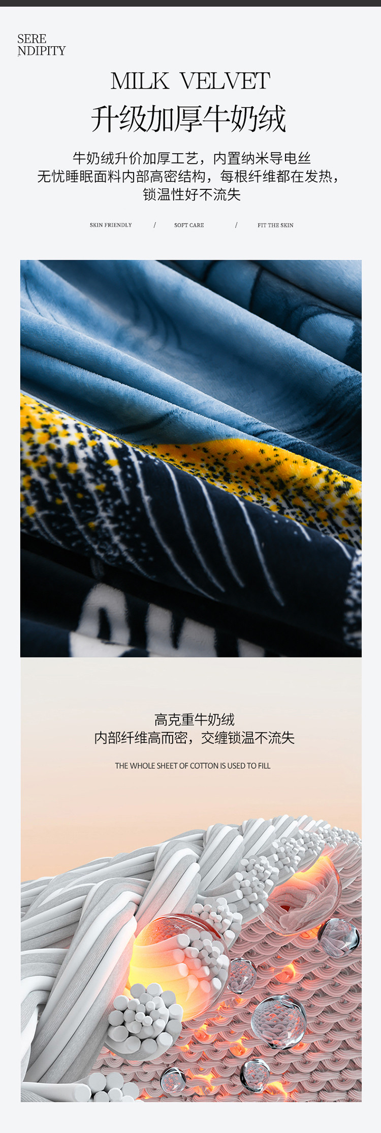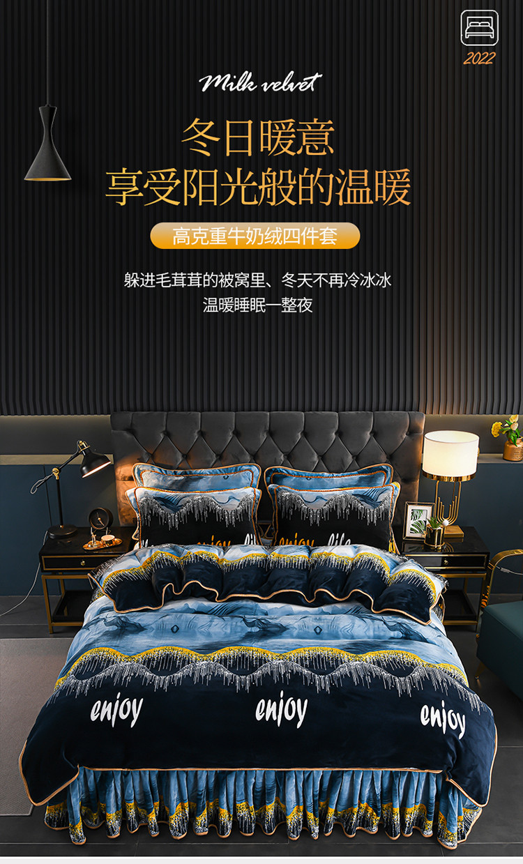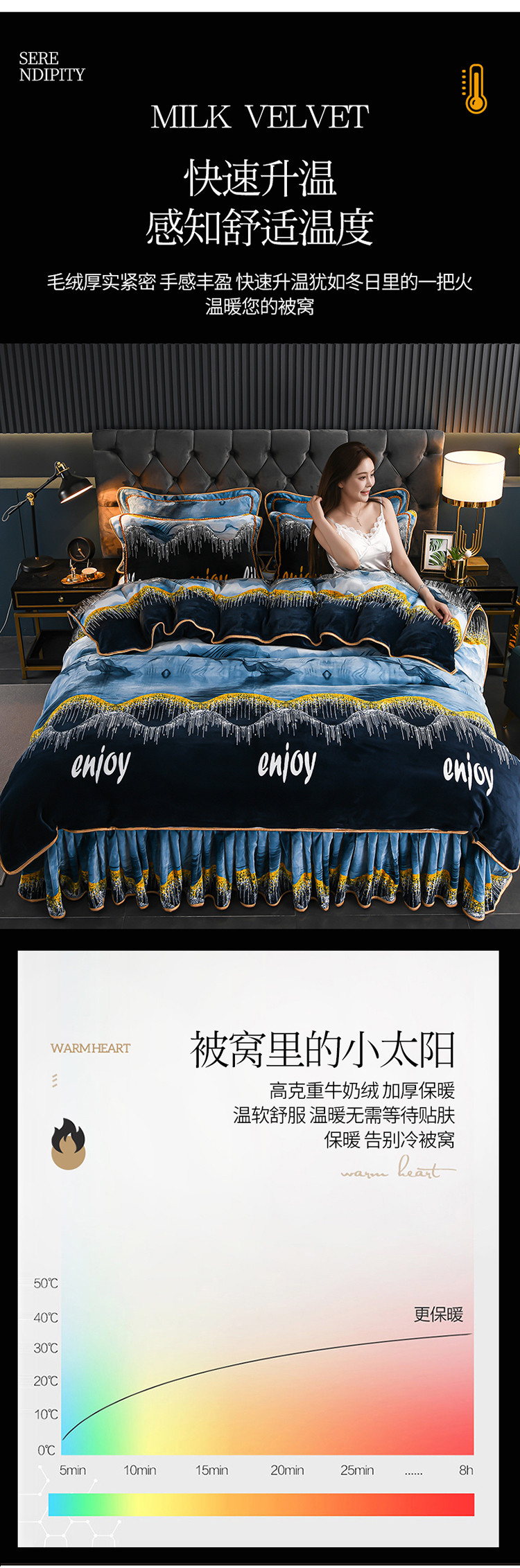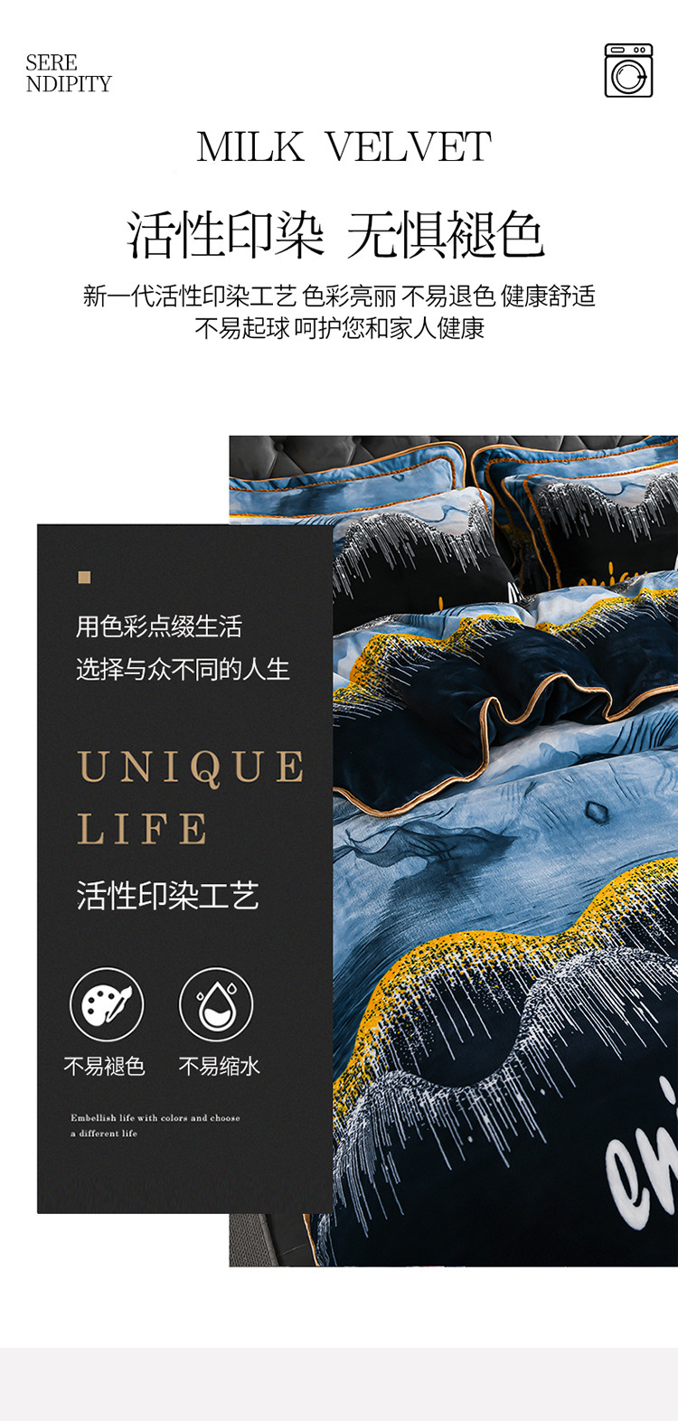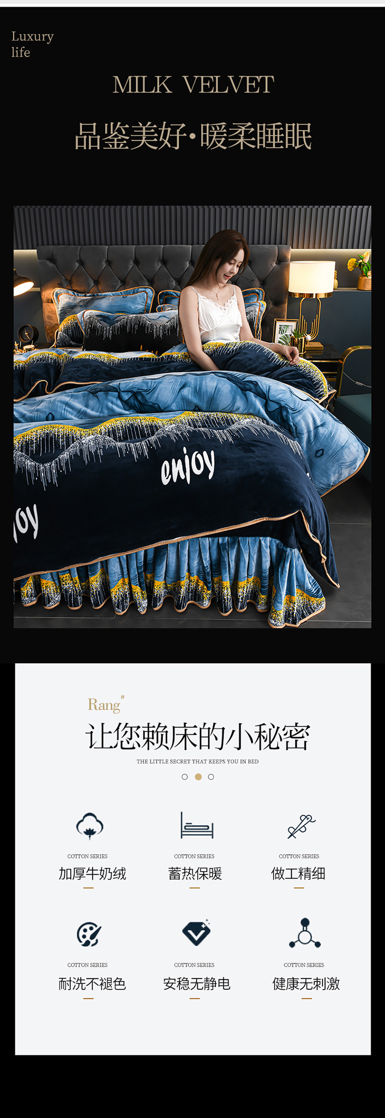 8.5-9.5斤法莱绒四件套珊瑚牛奶金貂绒四件套床裙水墨年华