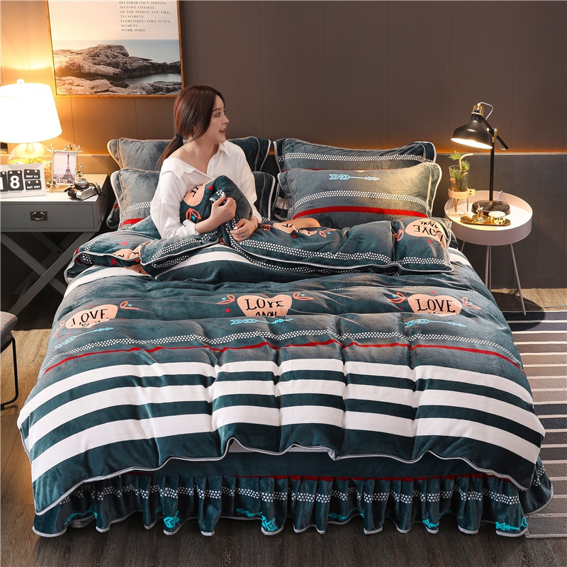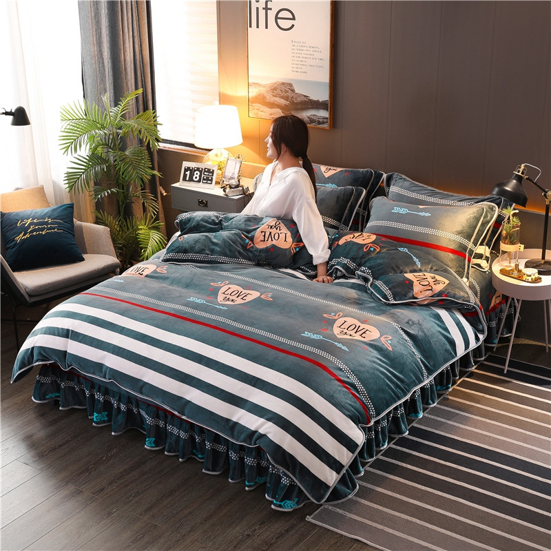 8.5-9.5斤法莱绒四件套珊瑚牛奶金貂绒四件套床裙匆匆那年
