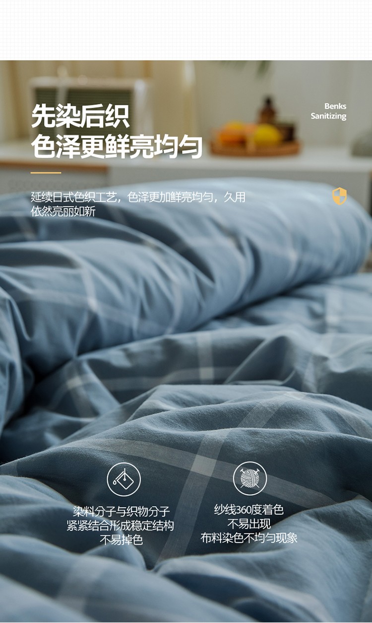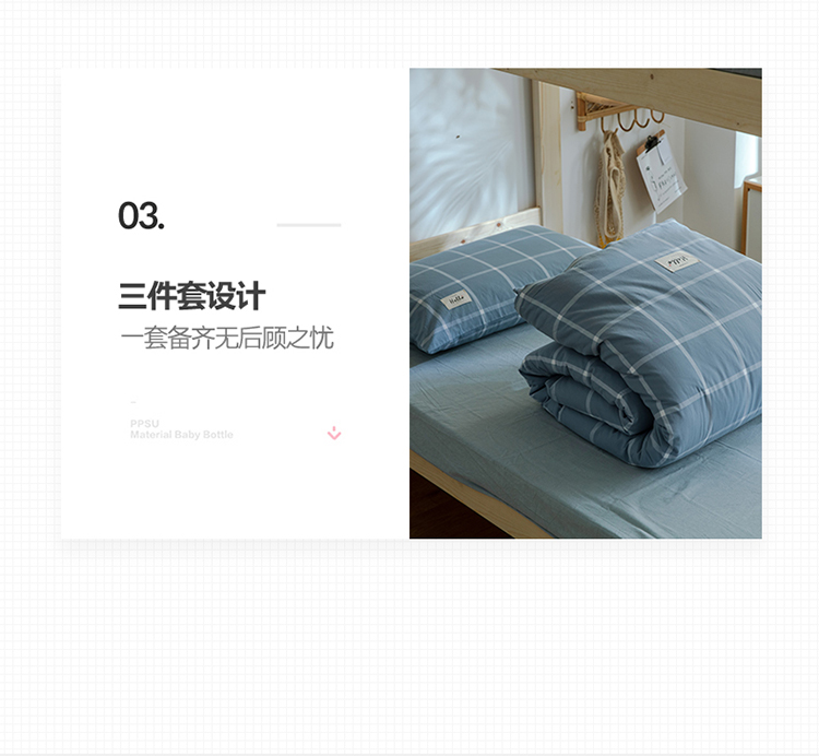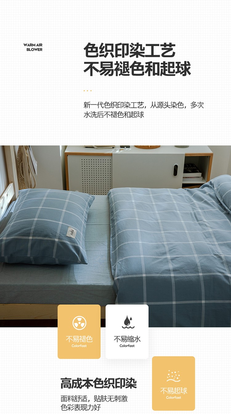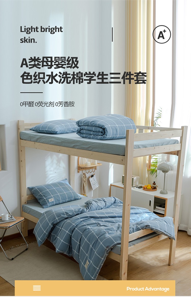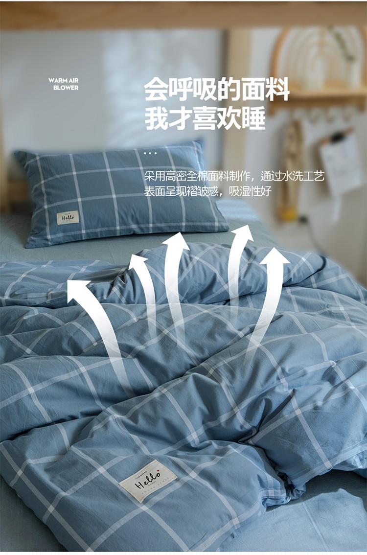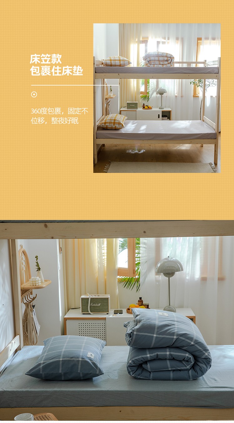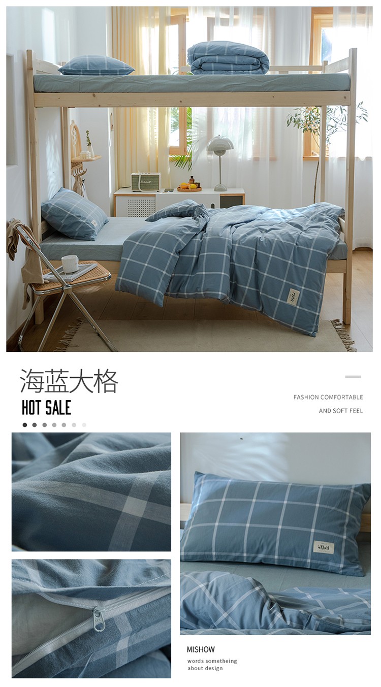 当前位置: 91家纺网 > 商品网购 > 床品套件 > 四件套 > 水洗棉四件套 > 北欧良品2022新款A类纯色织水洗棉学生上下铺四件套 海蓝大格
