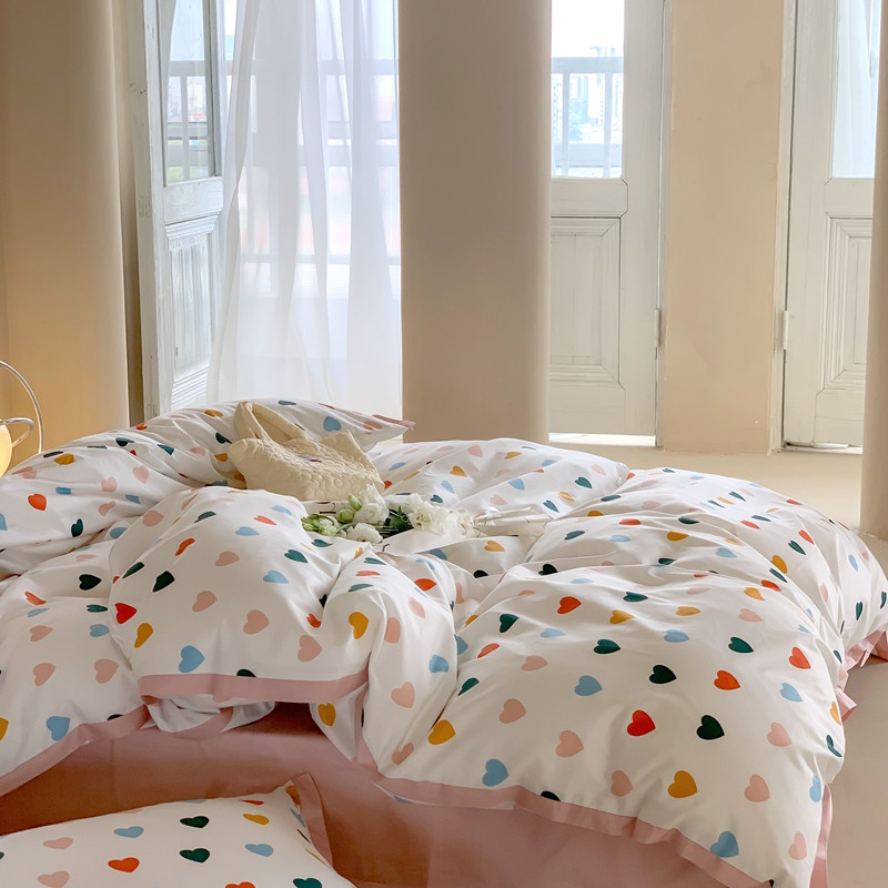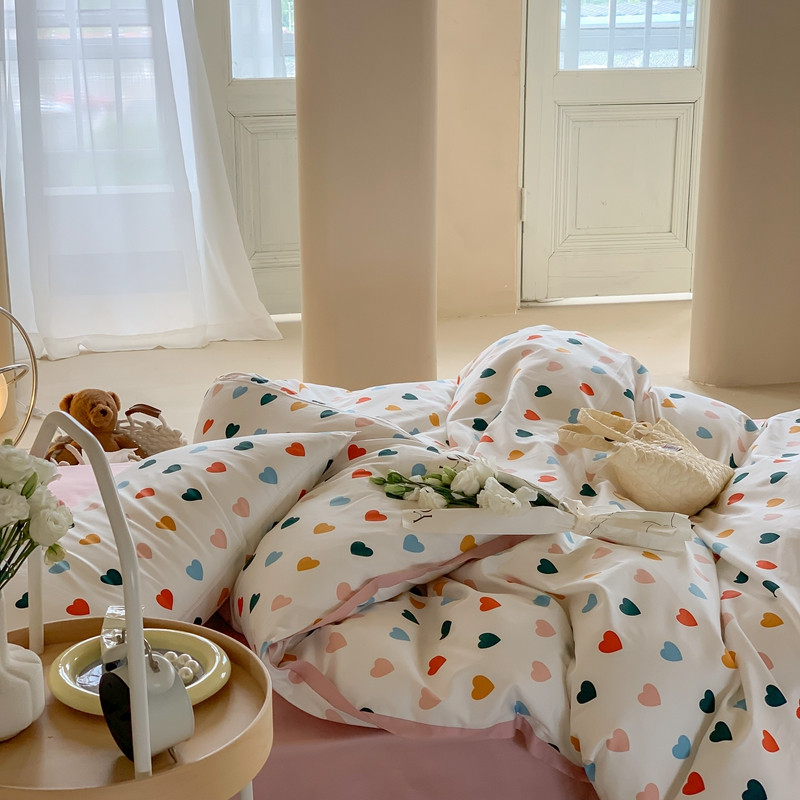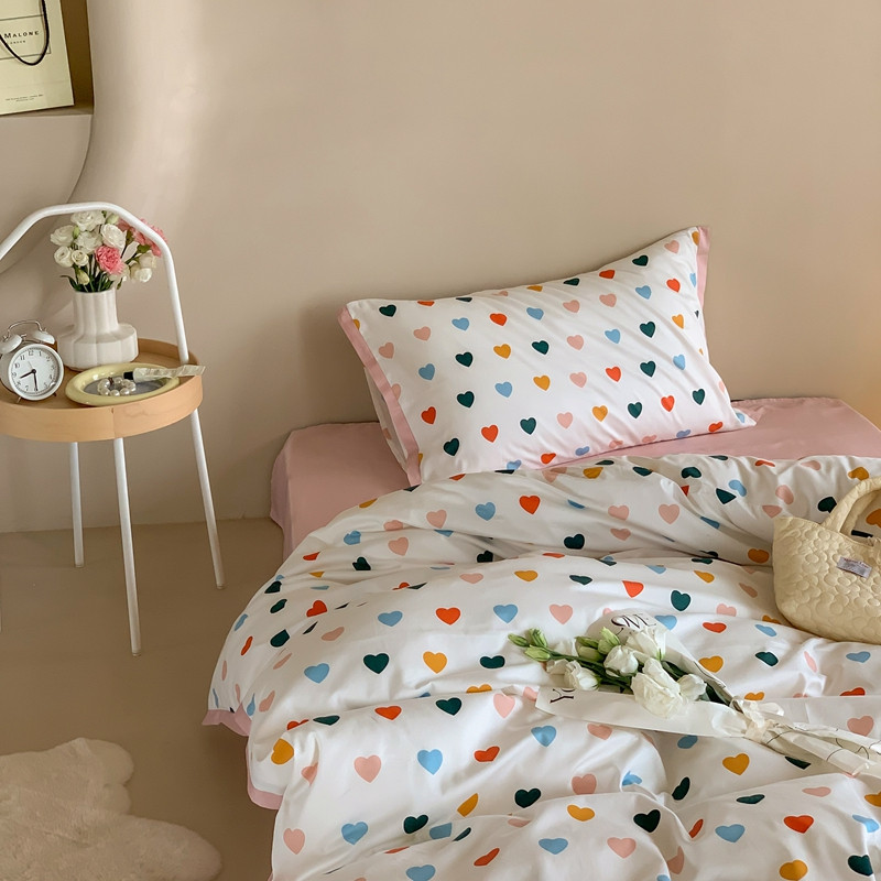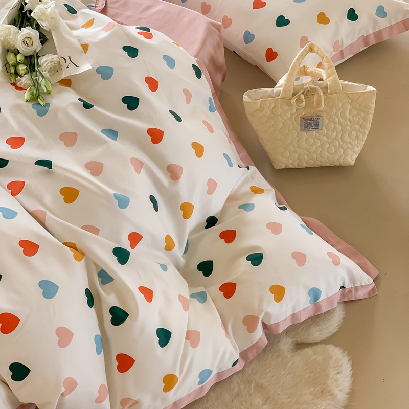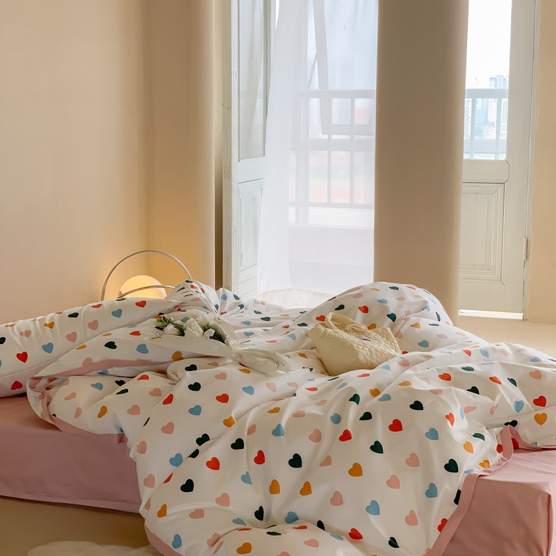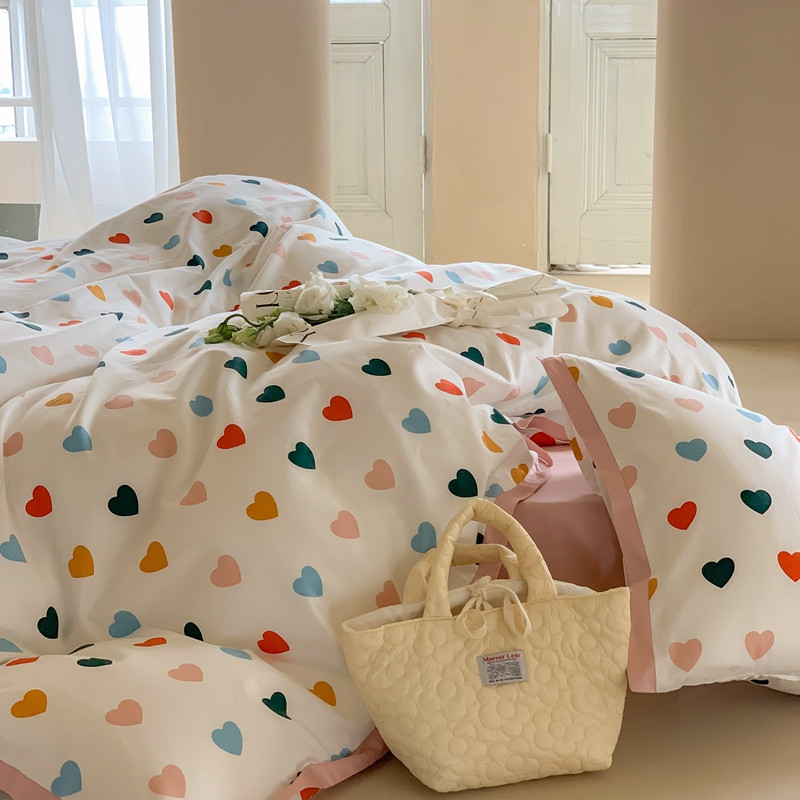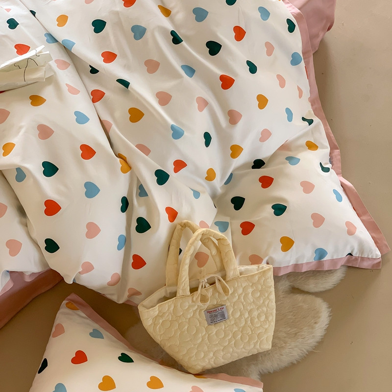 汇庭 2022新款长绒棉印花学生春秋被 比心