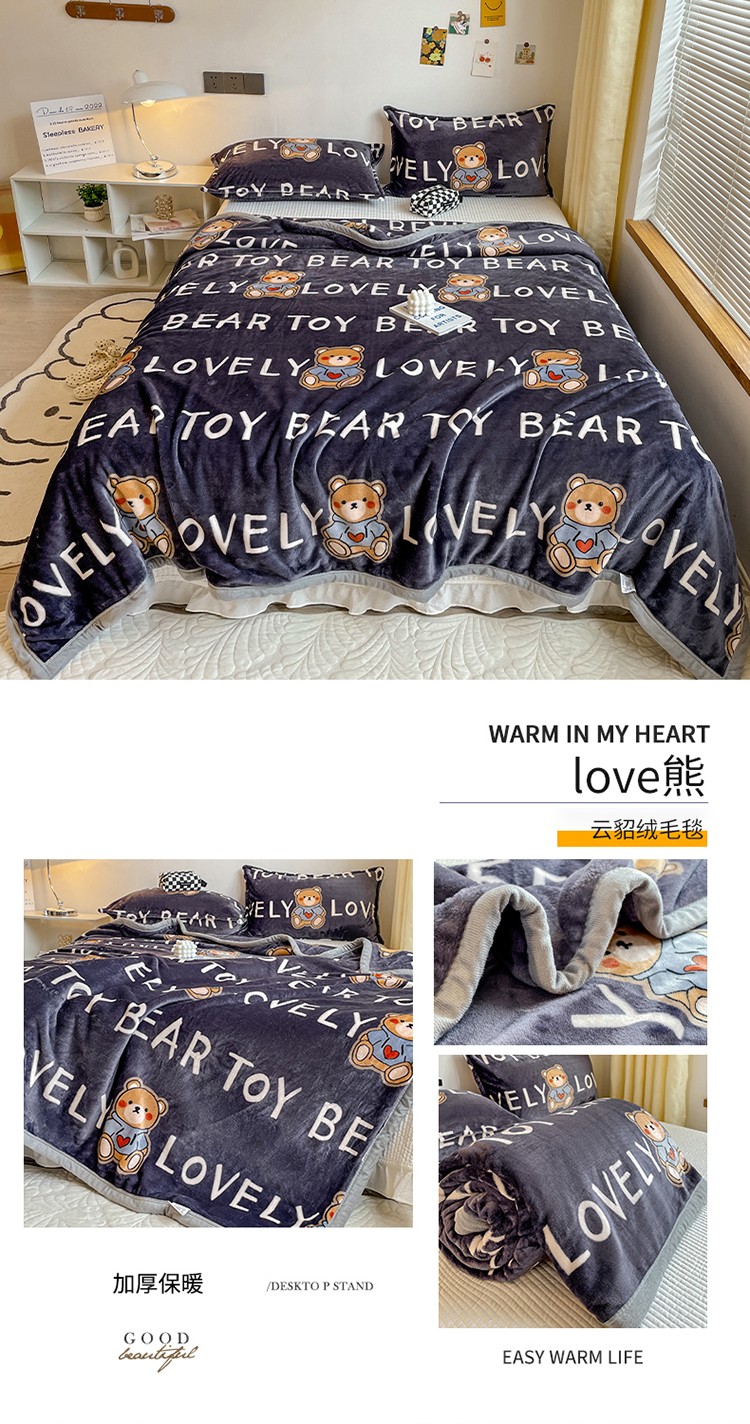 当前位置: 91家纺网 > 商品网购 > 毛毯休闲毯绒毯 > 毛毯 > 雅萱家纺 2022新款印花云貂绒毛毯 love熊