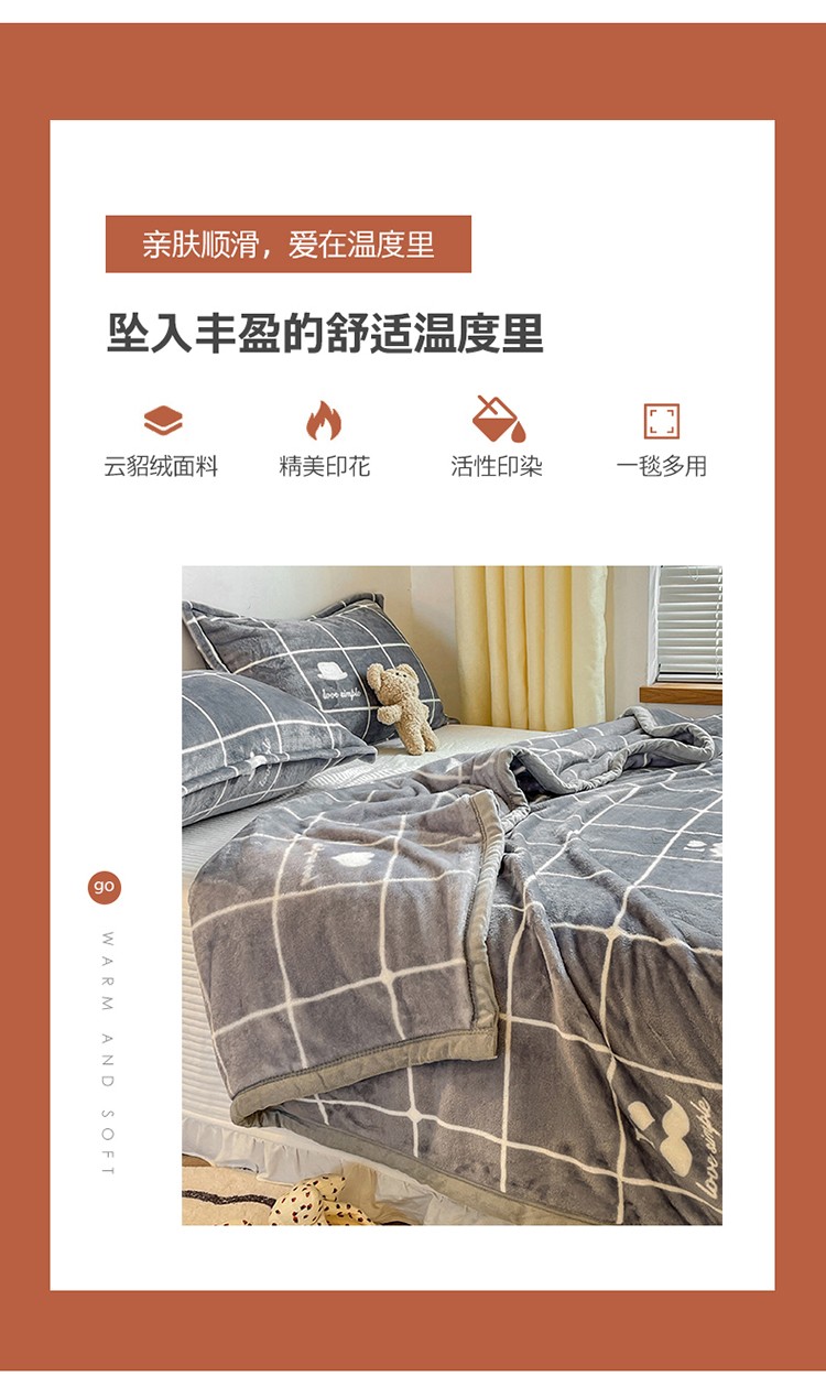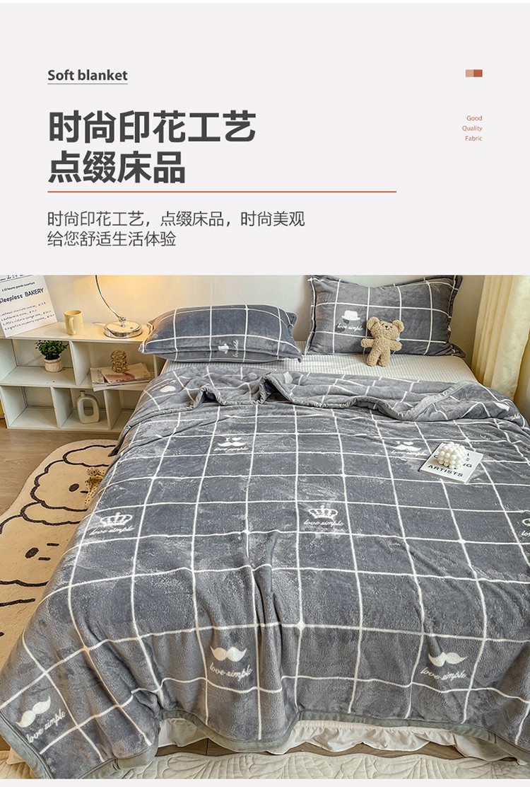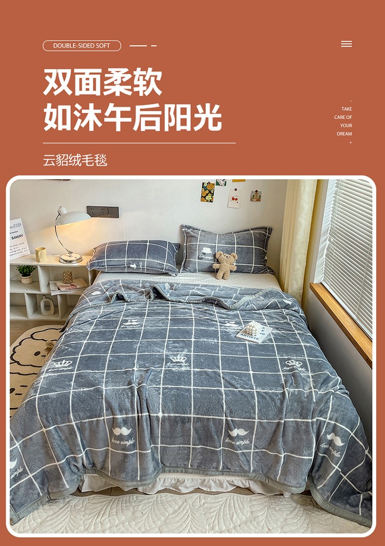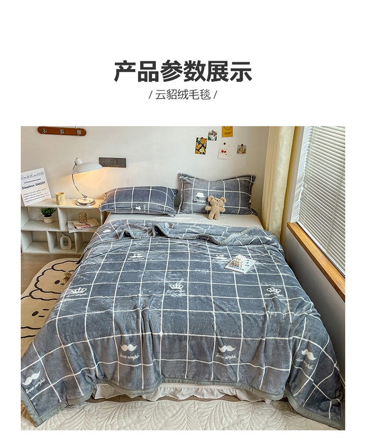 当前位置: 91家纺网 > 商品网购 > 毛毯休闲毯绒毯 > 毛毯 > 雅萱家纺 2022新款印花云貂绒毛毯 胡子格