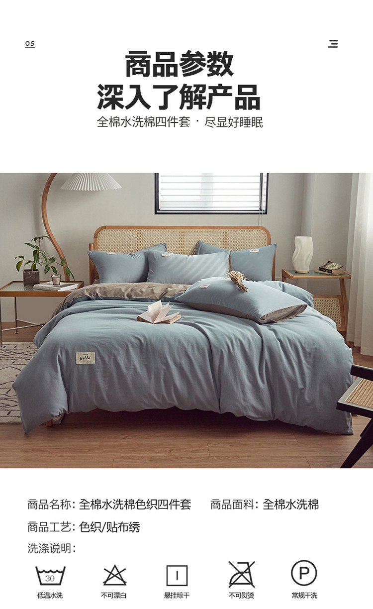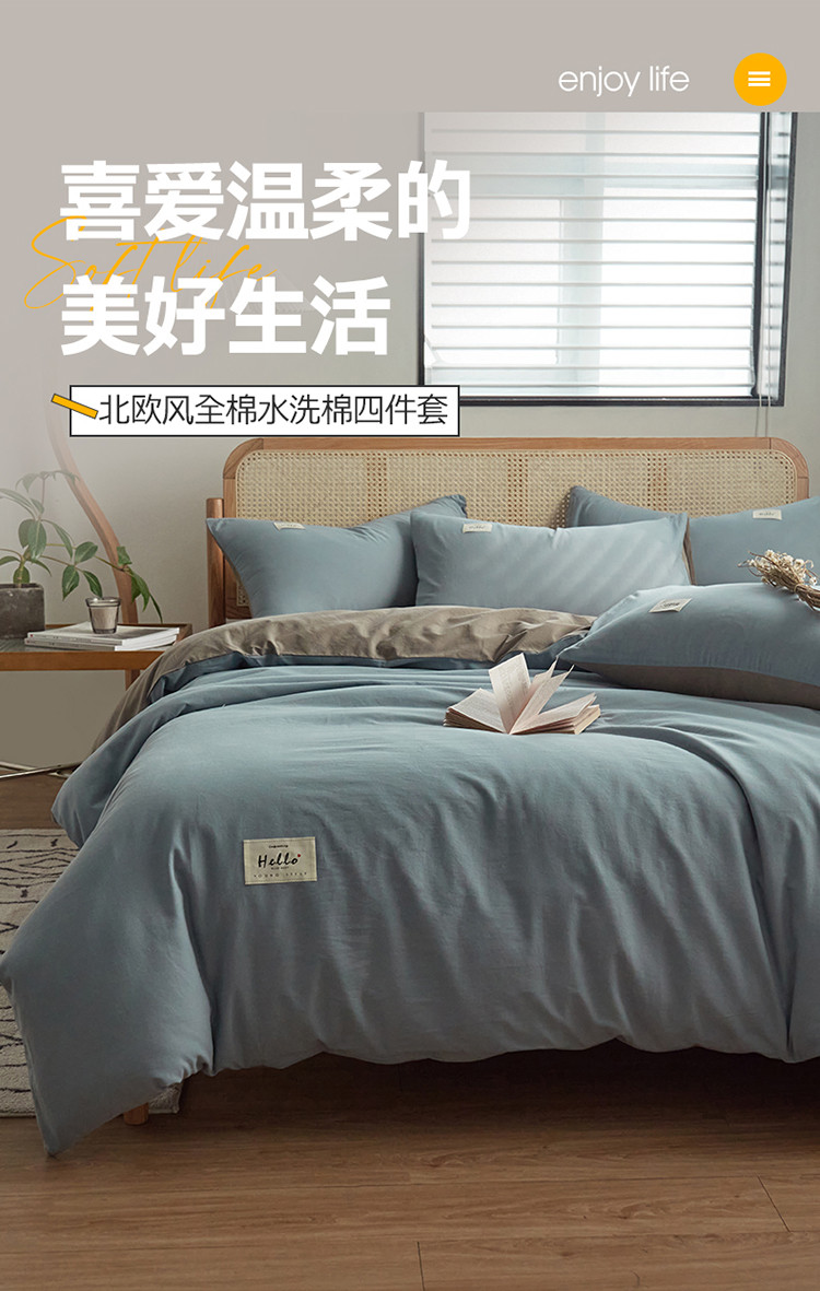当前位置: 91家纺网 > 商品网购 > 床品套件 > 四件套 > 水洗棉四件套 > AB家纺 2022新款全棉水洗棉四件套 浅蓝灰