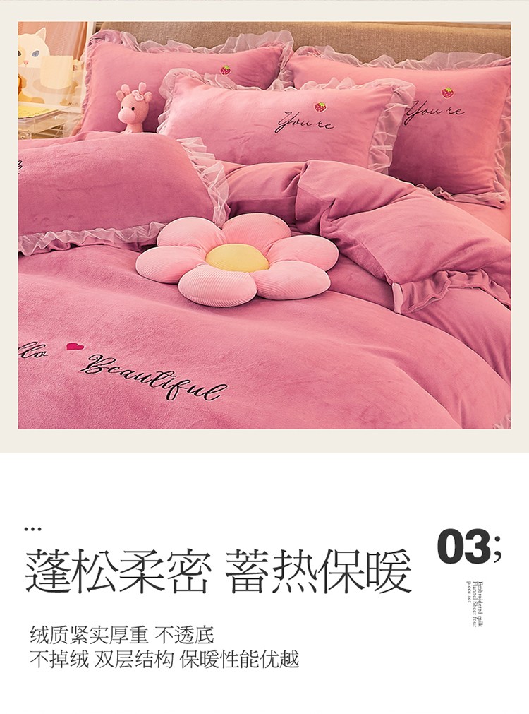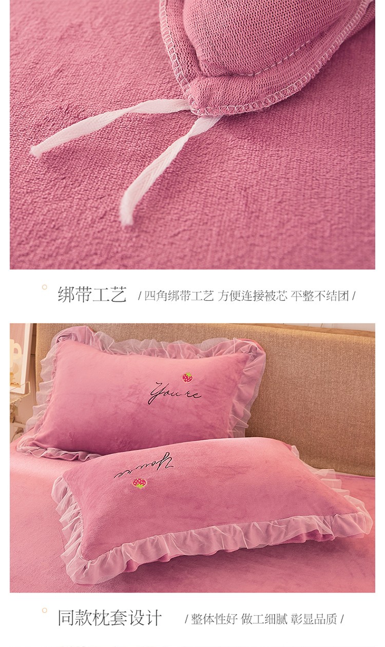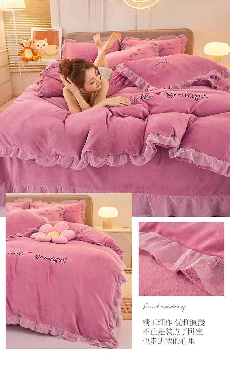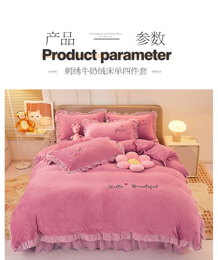 (总)找底底家纺 2025新款花边9-10斤牛奶绒床盖款四件套,花妖,梨花落,小樱桃,紫蔻