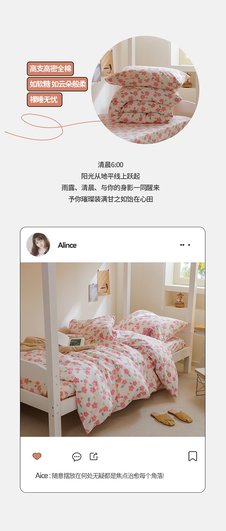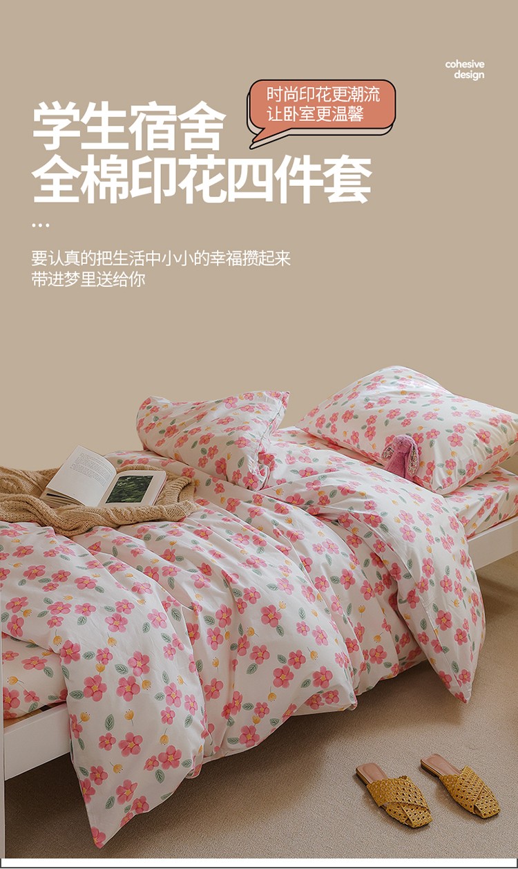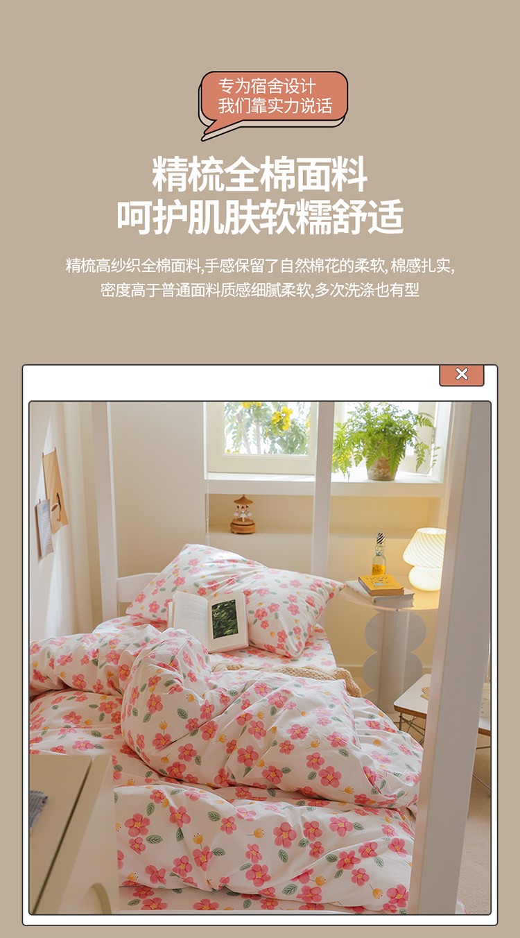 商品名称:寐眠 2022新款全棉印花学生三件套 樱花树下