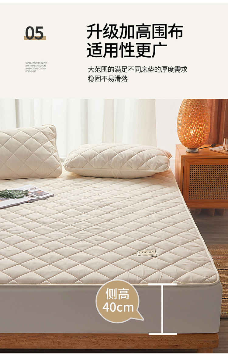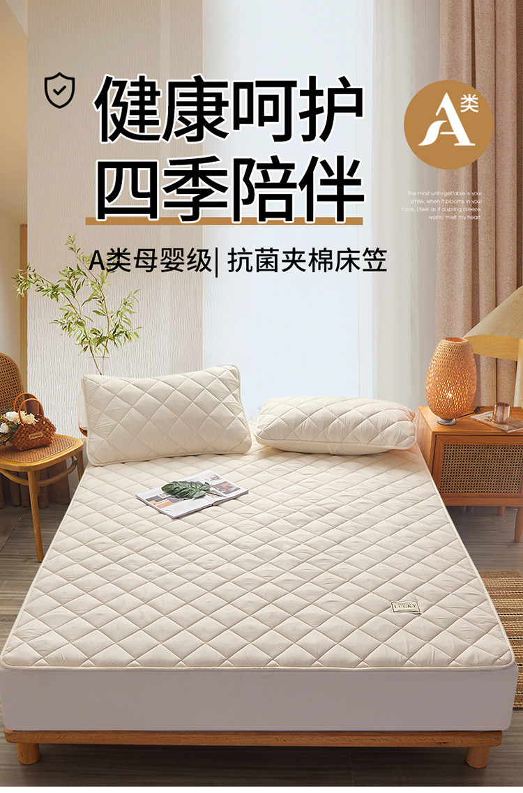 芬晴 2023新款A类全棉母婴级抗菌防螨夹棉床笠 方格-米白