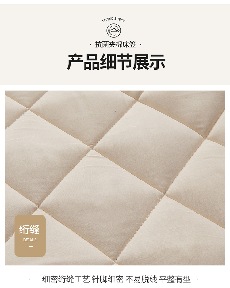 • 91家纺网 家纺一手货源 找家纺 芬晴 2023新款A类全棉母婴级抗菌防螨夹棉床笠 方格-米白