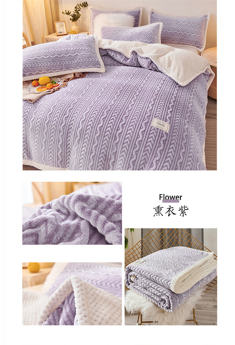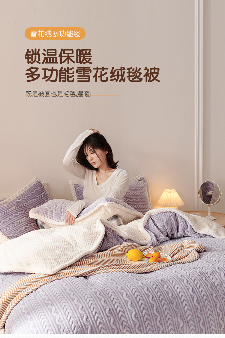 yyds立体雕花雪花双面绒被套毛毯牛奶绒四件套爆款熏衣紫单毯