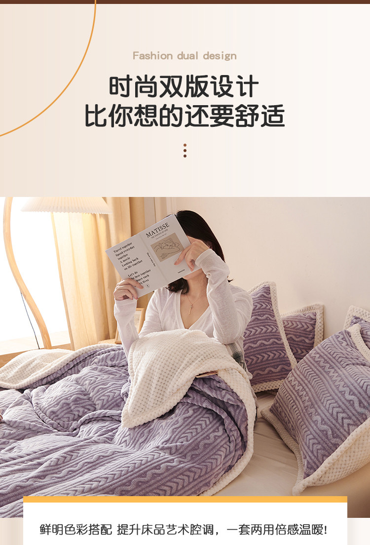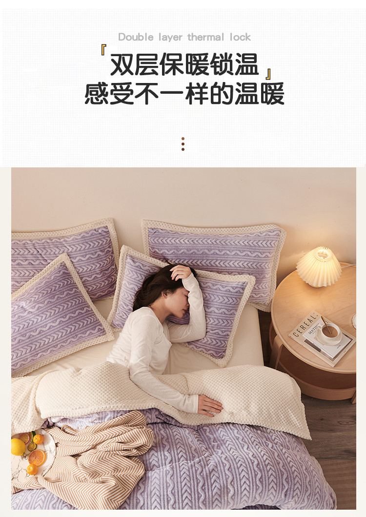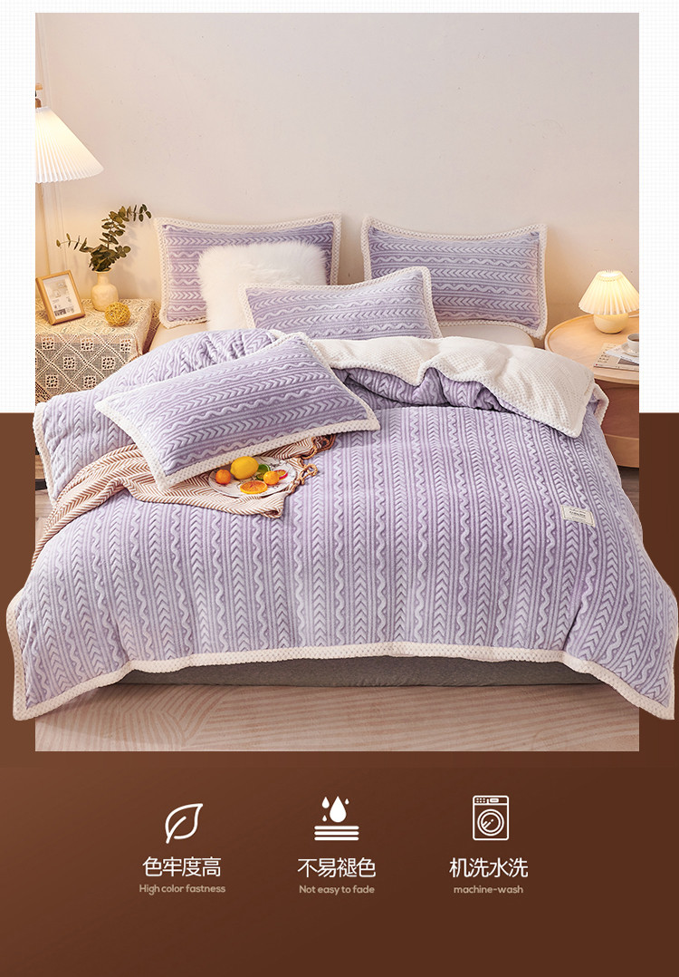 商品名称:yyds立体雕花雪花双面绒被套毛毯牛奶绒四件套爆款熏衣紫单毯