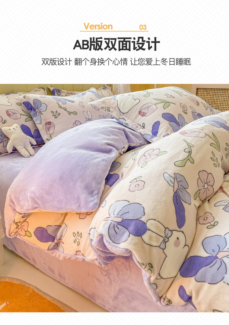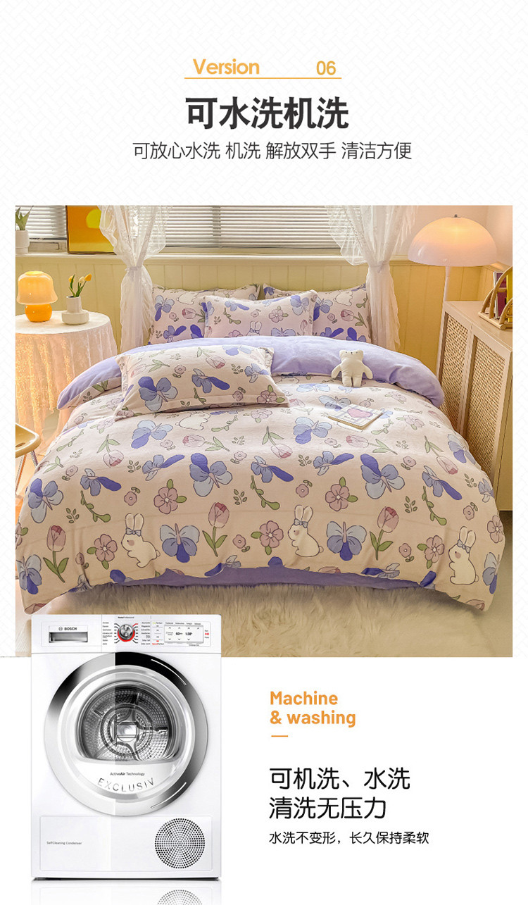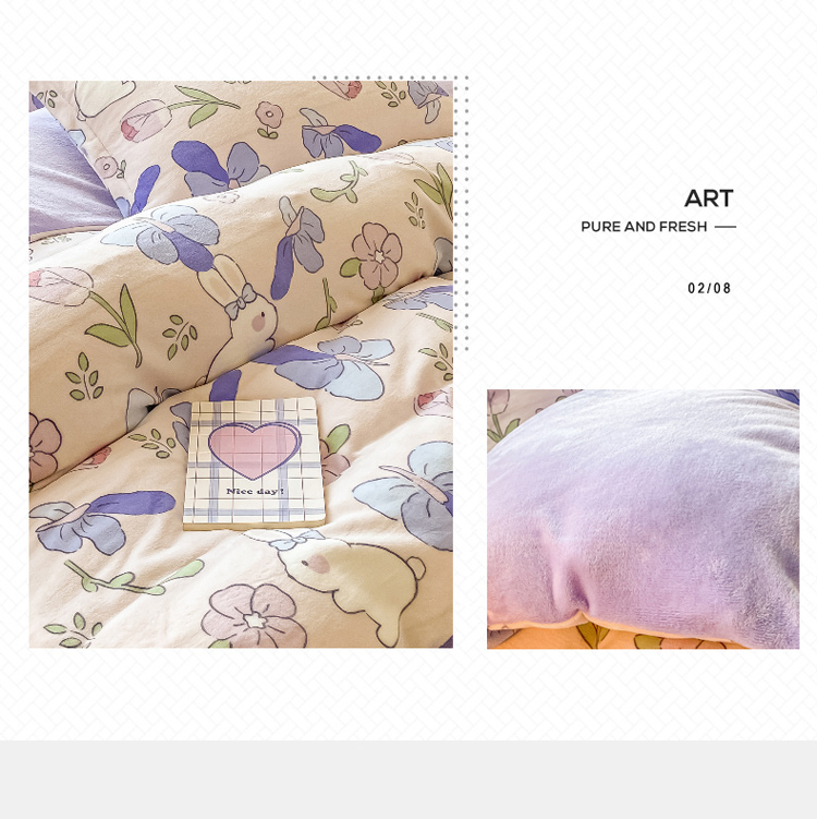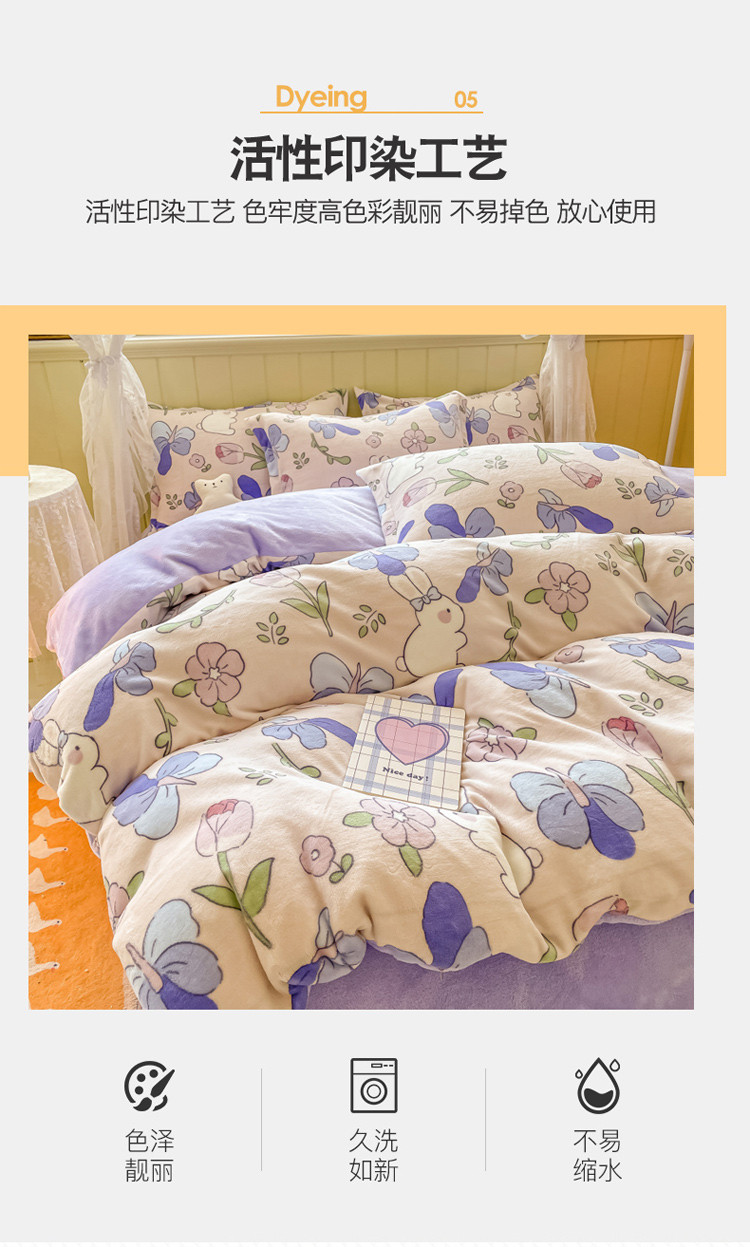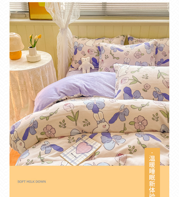 当前位置: 91家纺网 > 商品网购 > 床品套件 > 四件套 > 法莱绒四件套 > 柒月家居 2022新款小清新法莱绒四件套 丛林小兔