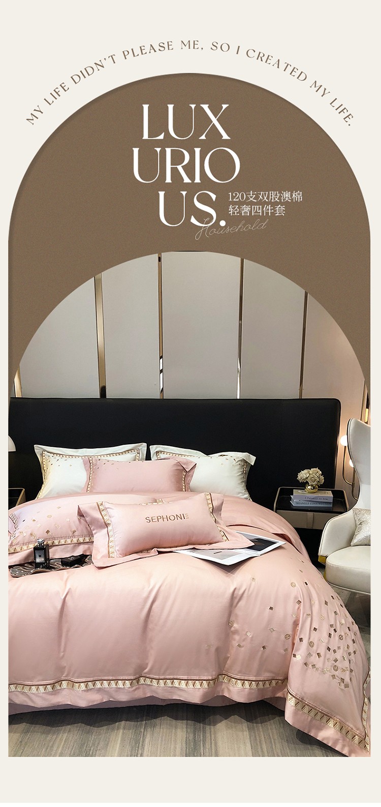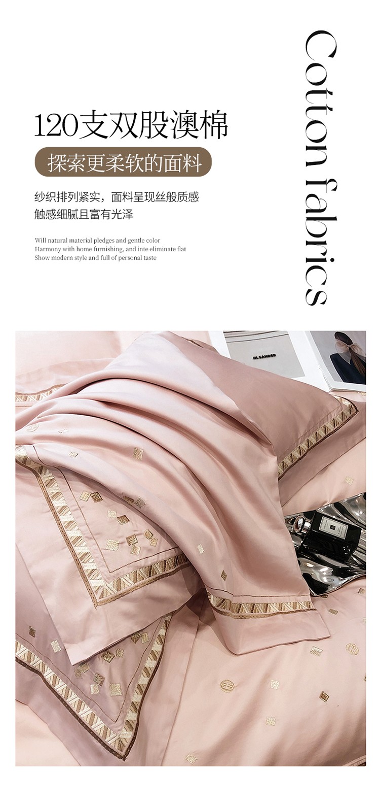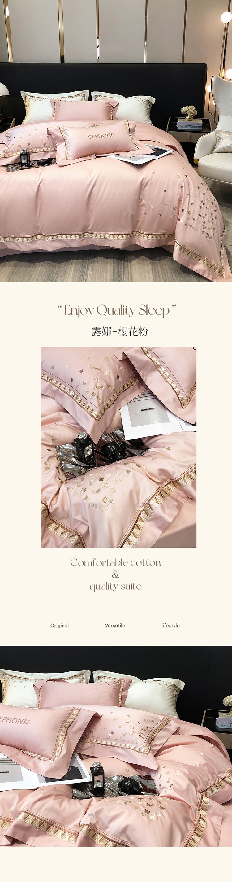商品名称:乐视家纺2024新款120支双股澳棉刺绣四件套 露娜-樱花粉