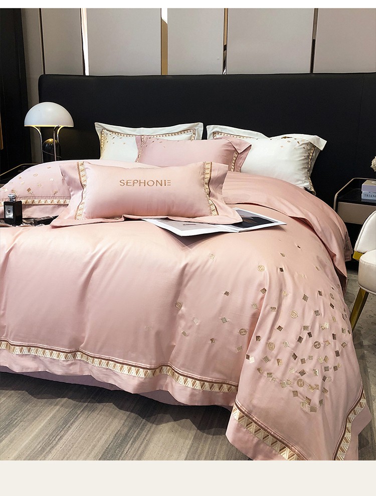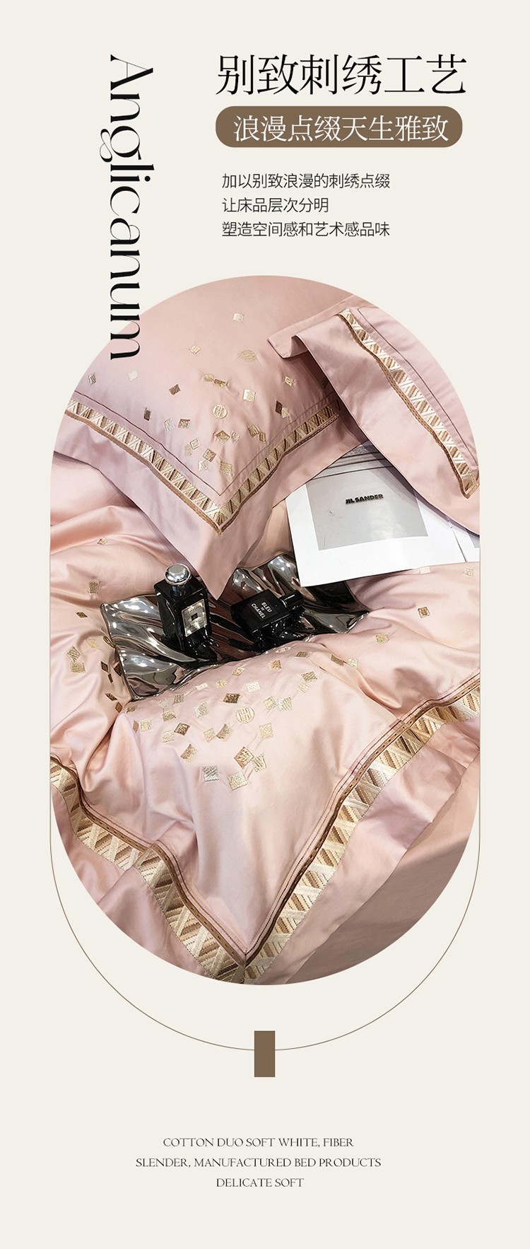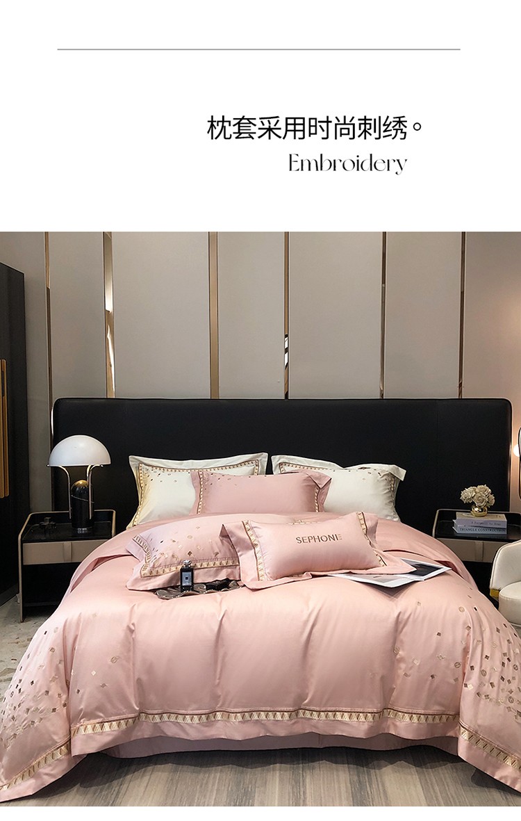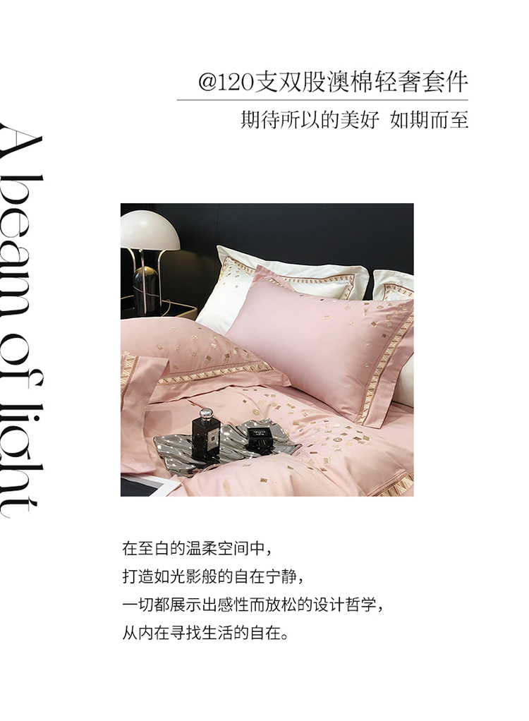 商品名称:乐视家纺2024新款120支双股澳棉刺绣四件套 露娜-樱花粉