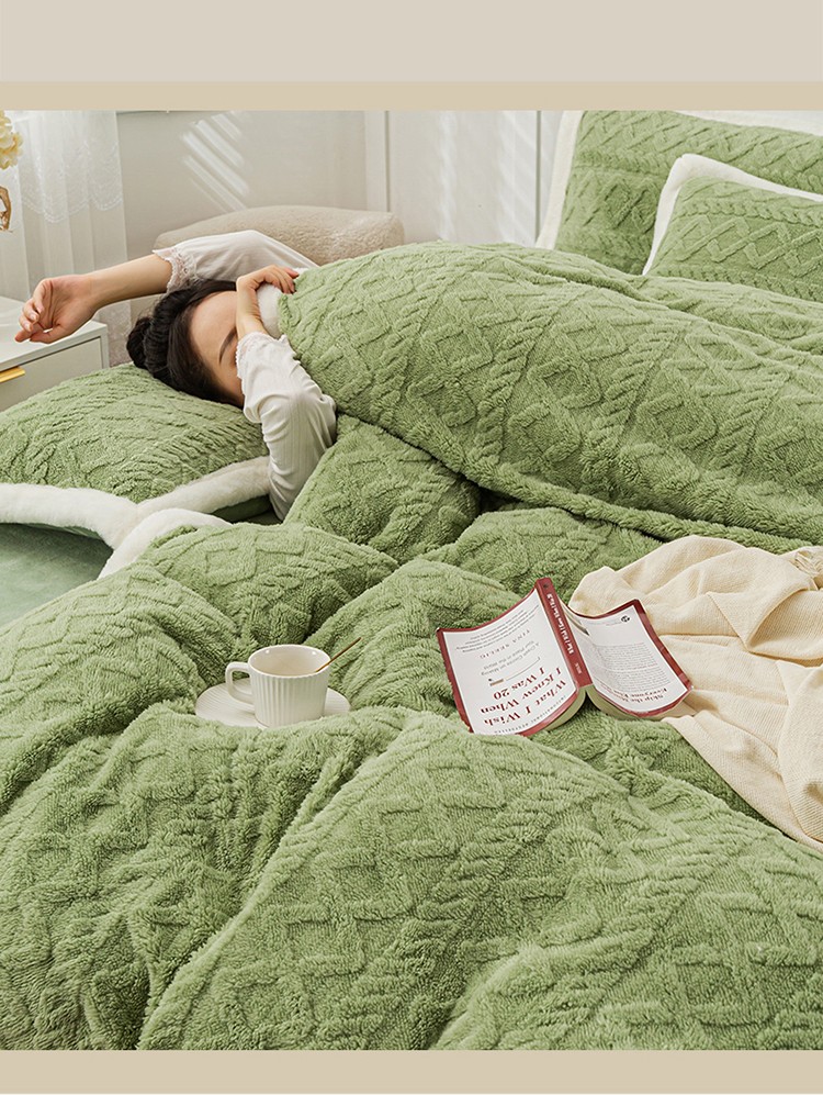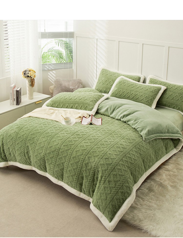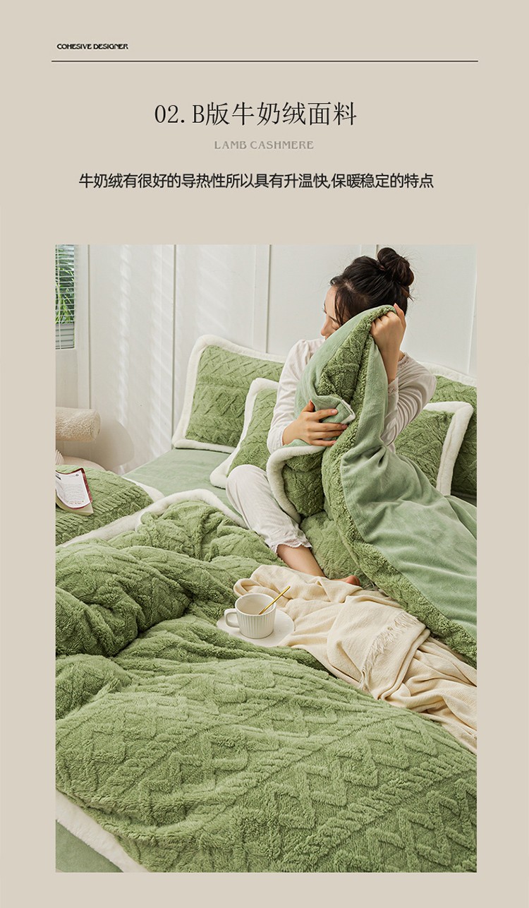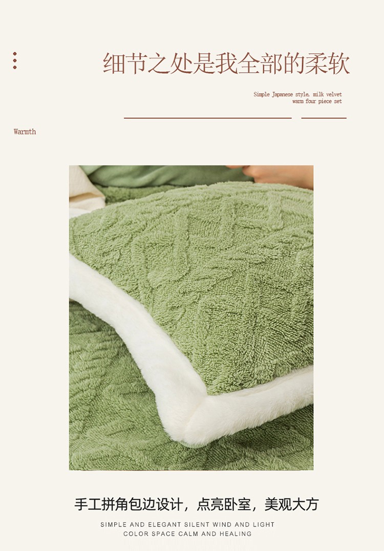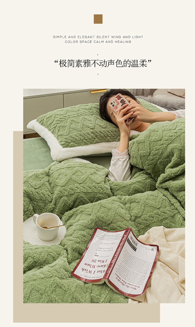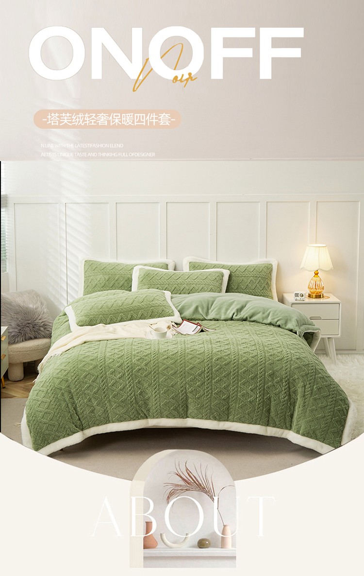 商品名称:潮邦 2025【含买家秀】塔芙绒牛奶绒轻奢保暖四件套 塔芙绿
