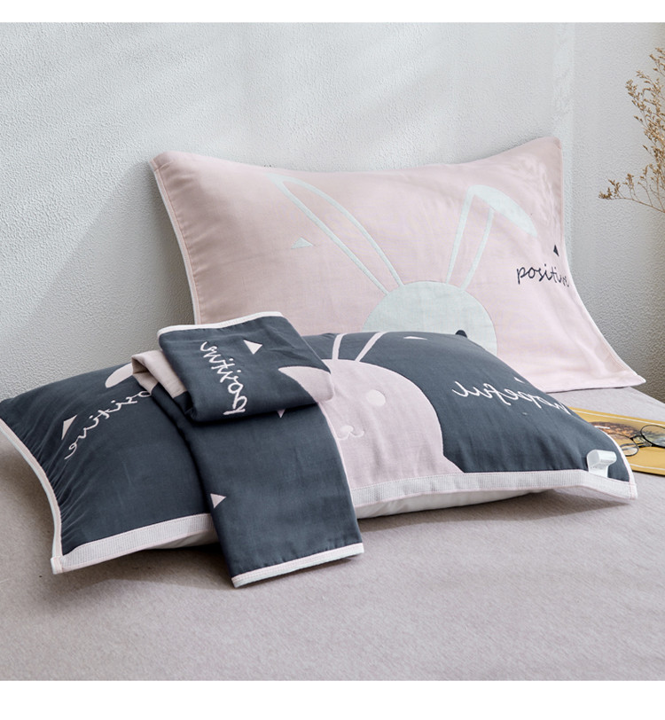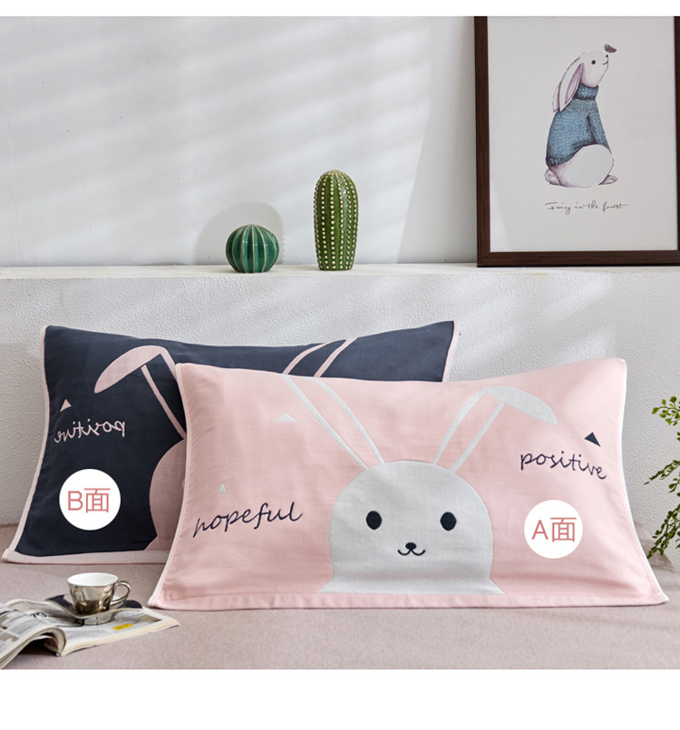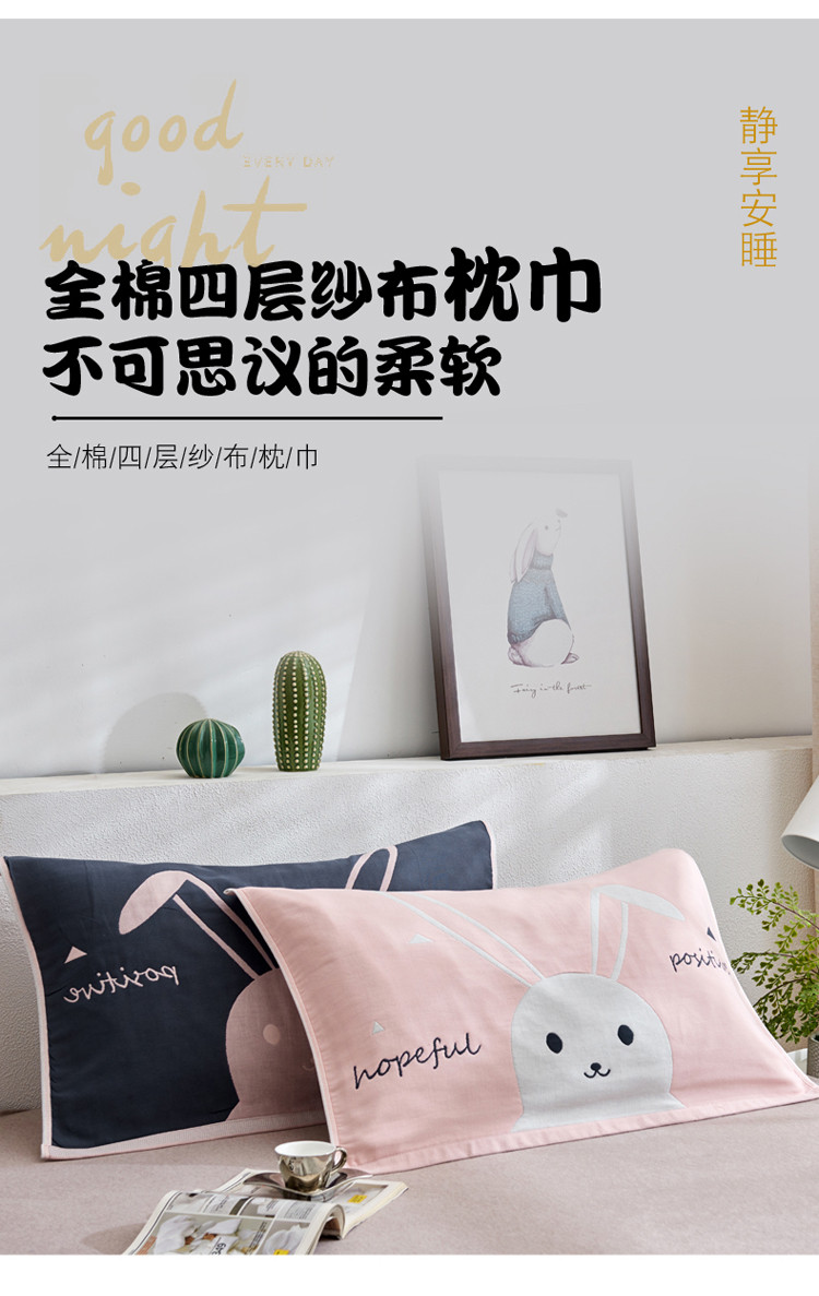 • 91家纺网 家纺一手货源 找家纺 朴尔 2022新款全棉四层纱布大版花独版枕巾(一对) 长耳兔(50*80)
