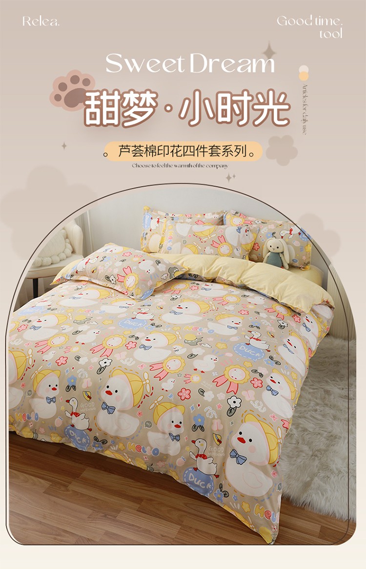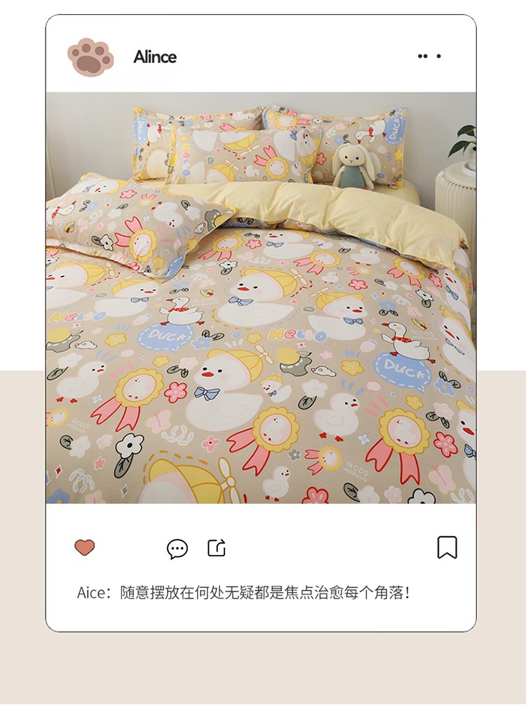 妖妖家纺 2023新款芦荟棉AB双版印花四件套 YY同学