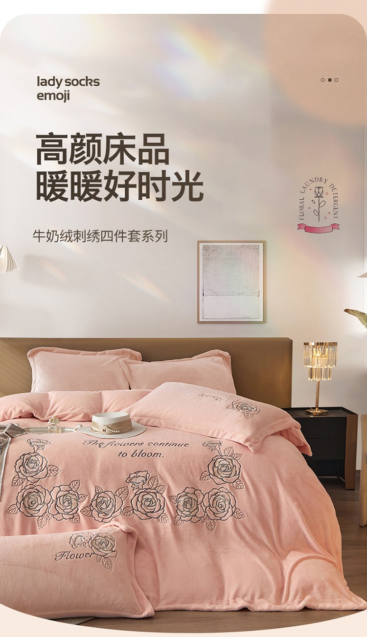 (总)名品优仓 2025新款220克牛奶绒绣花四件套-珊瑚,珊瑚-宝石蓝,珊瑚-粉色,珊瑚-姜黄,珊瑚-米杏,珊瑚-沫粉,珊瑚-杏粉
