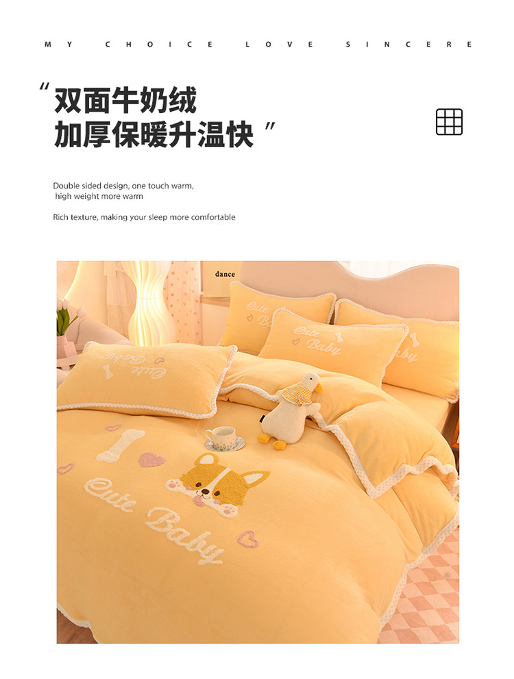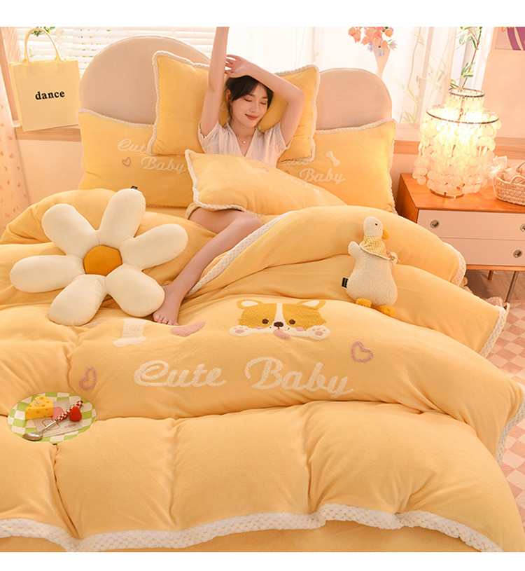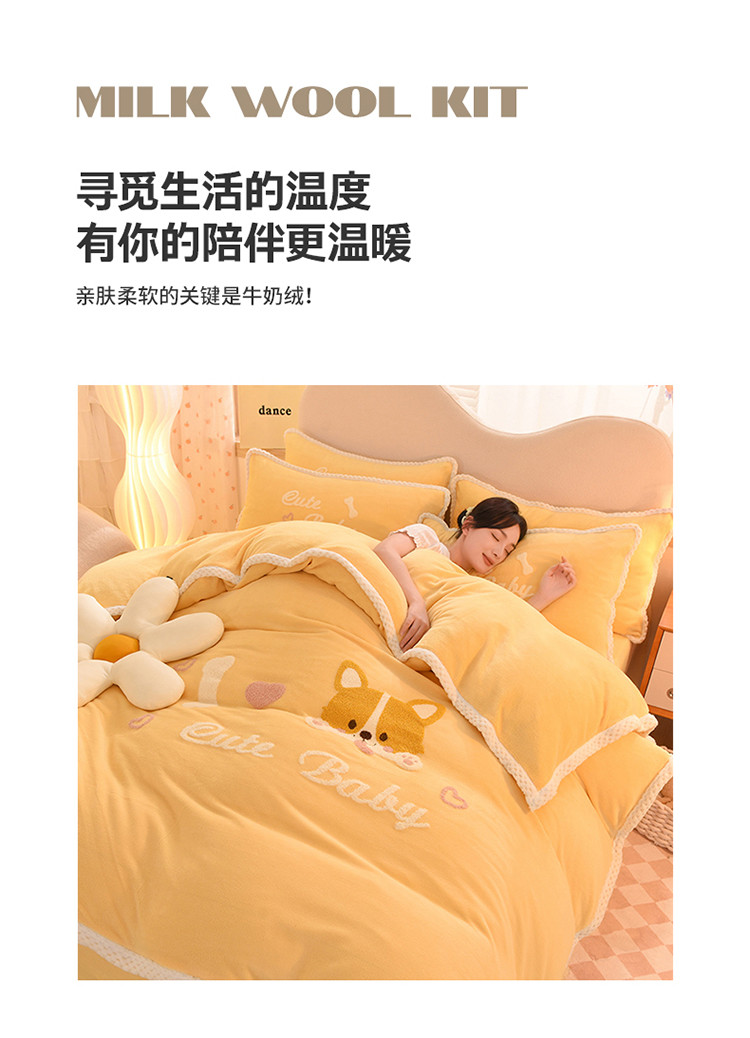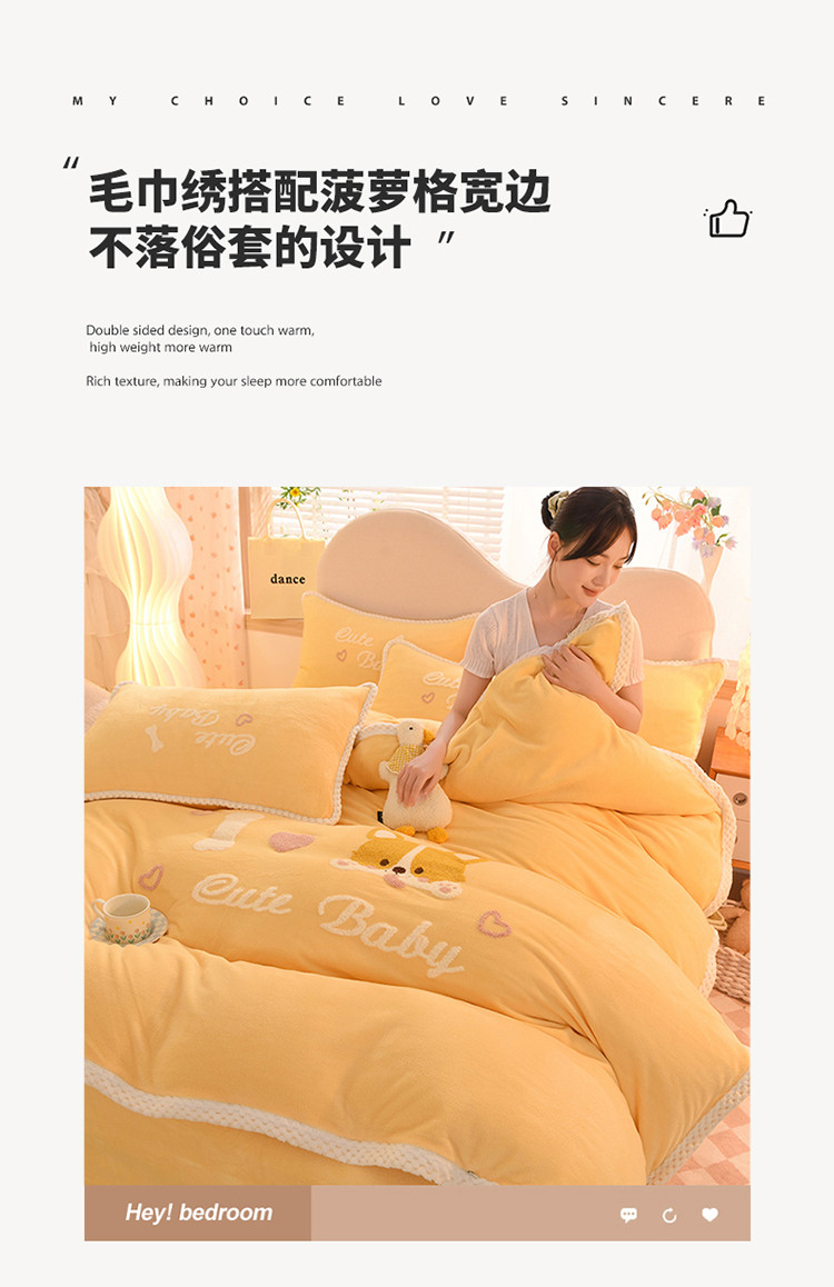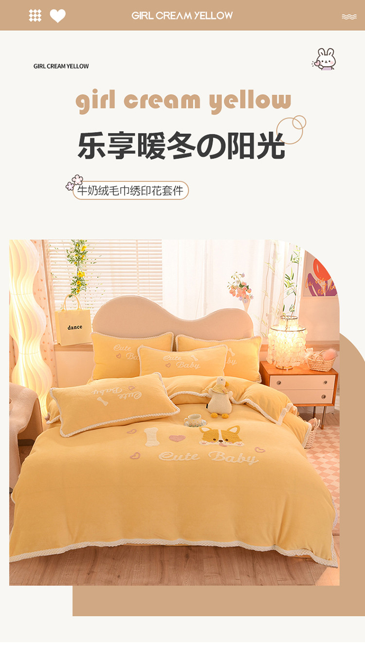 当前位置: 91家纺网 > 商品网购 > 床品套件 > 四件套 > 牛奶绒四件套 > 菲儿 2022新款毛巾绣牛奶绒四件套 旺仔-麦穗黄