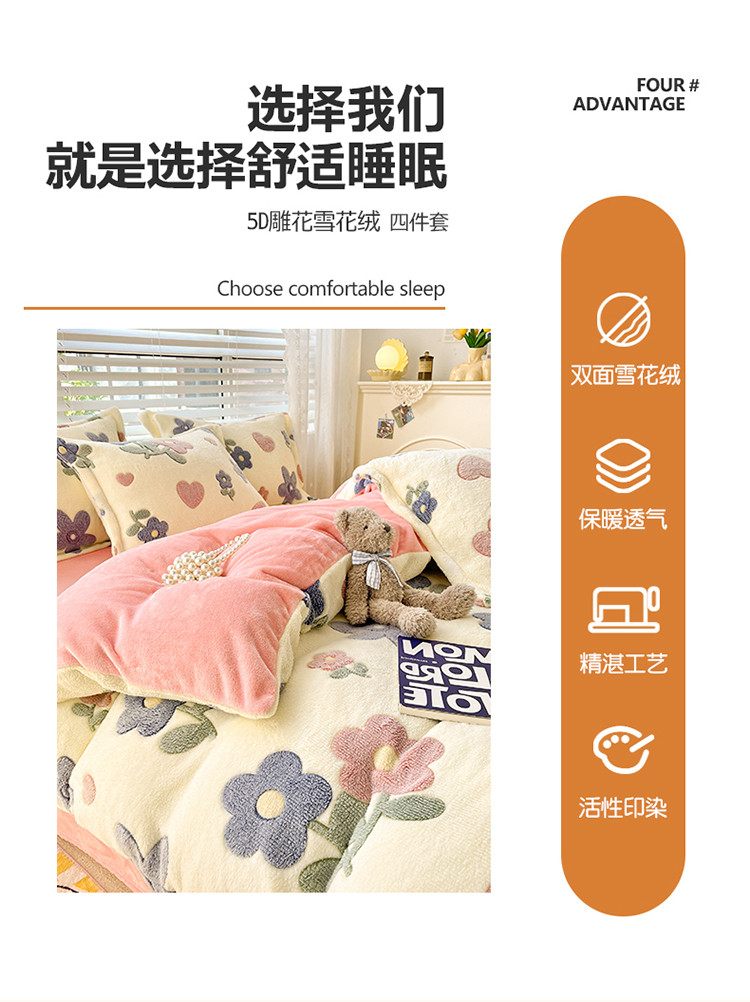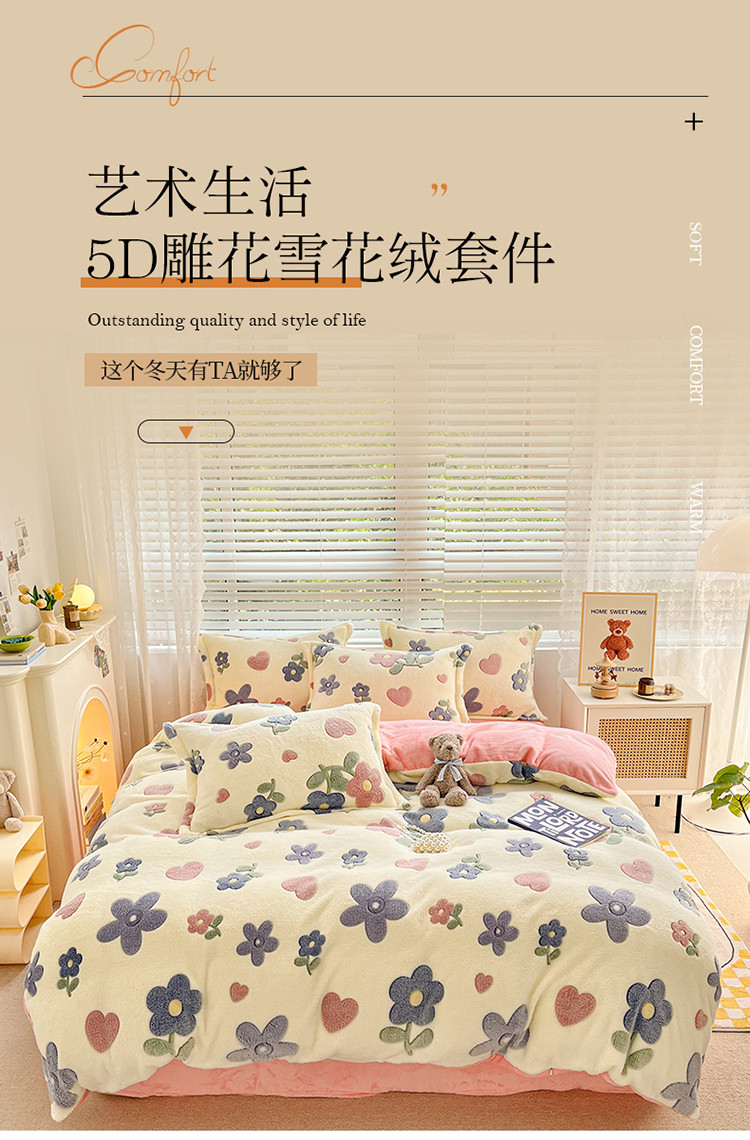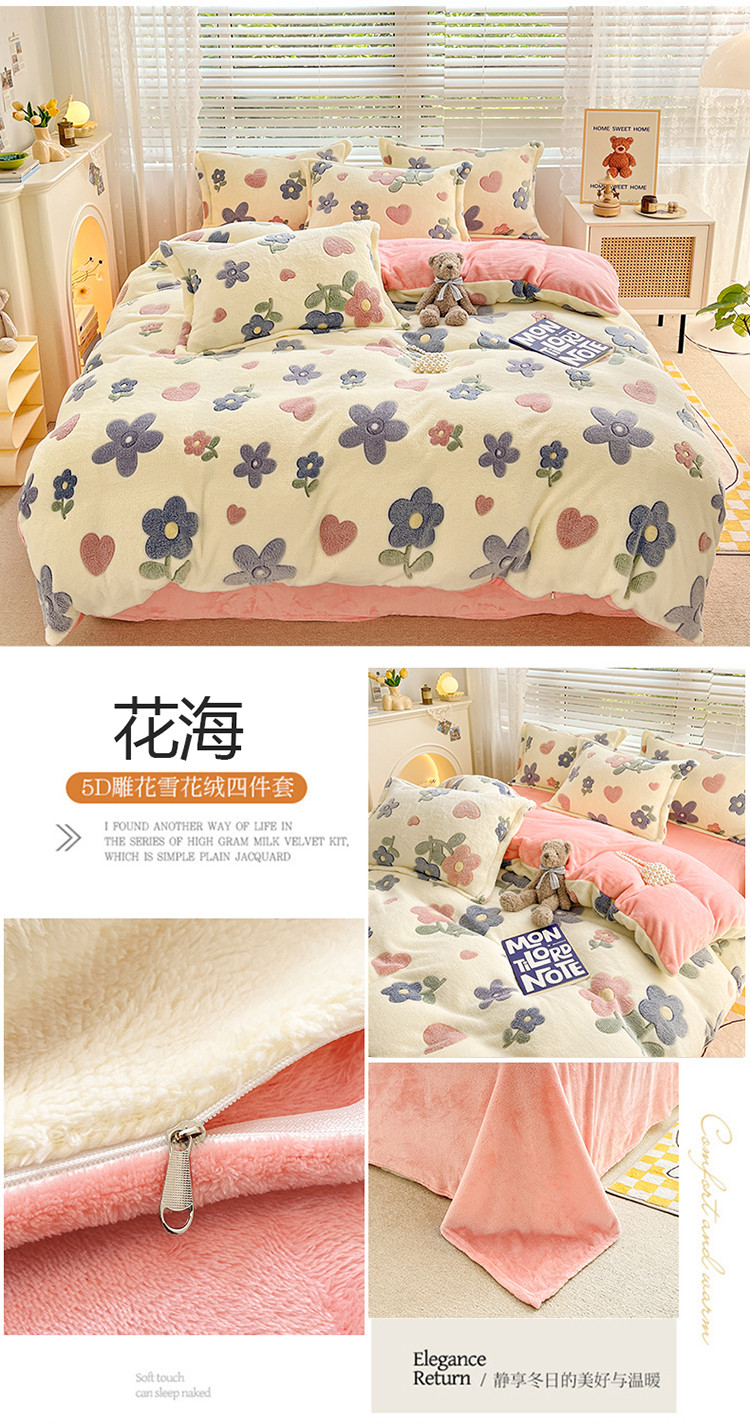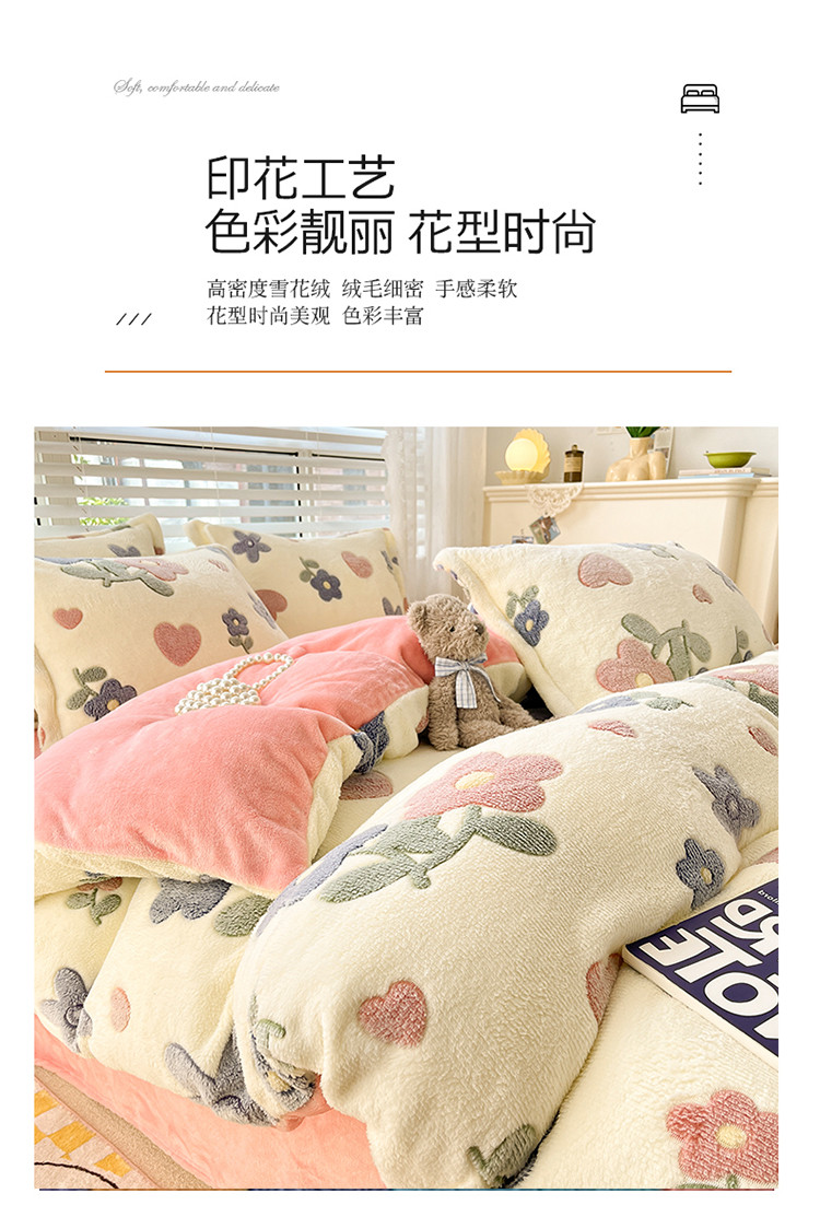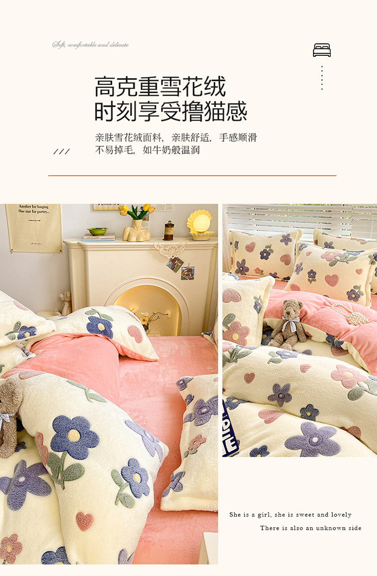 商品名称:苏拉 2023新款秋冬新款雪花绒牛奶绒四件套 花海