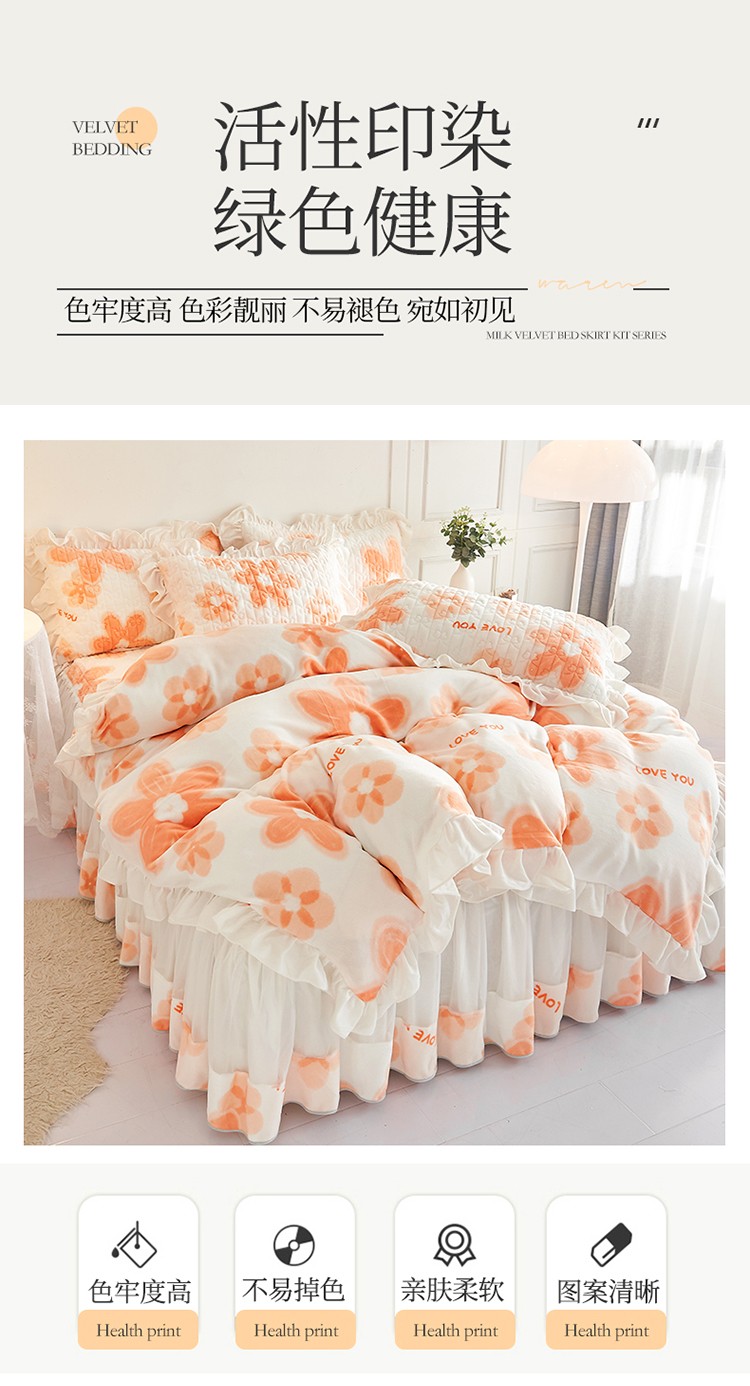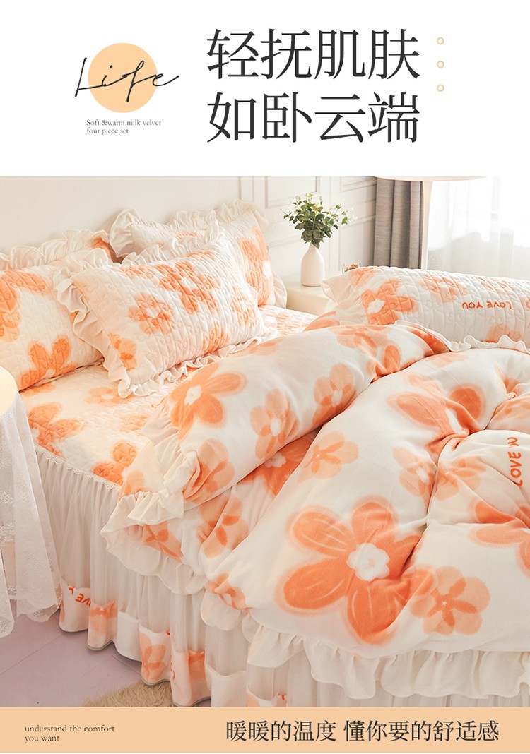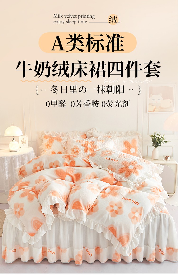 • 91家纺网 家纺一手货源 找家纺 宜凡2022新款A类牛奶绒印花床裙四件套 陌颜花恋