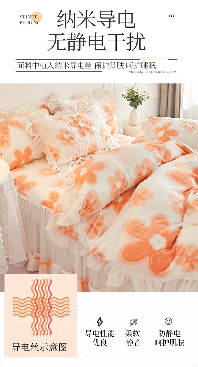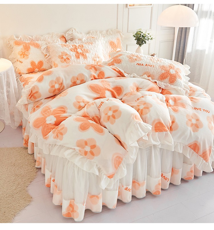 宜凡2022新款A类牛奶绒印花床裙四件套 陌颜花恋