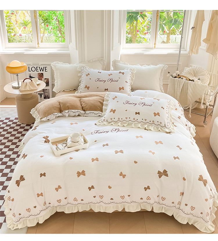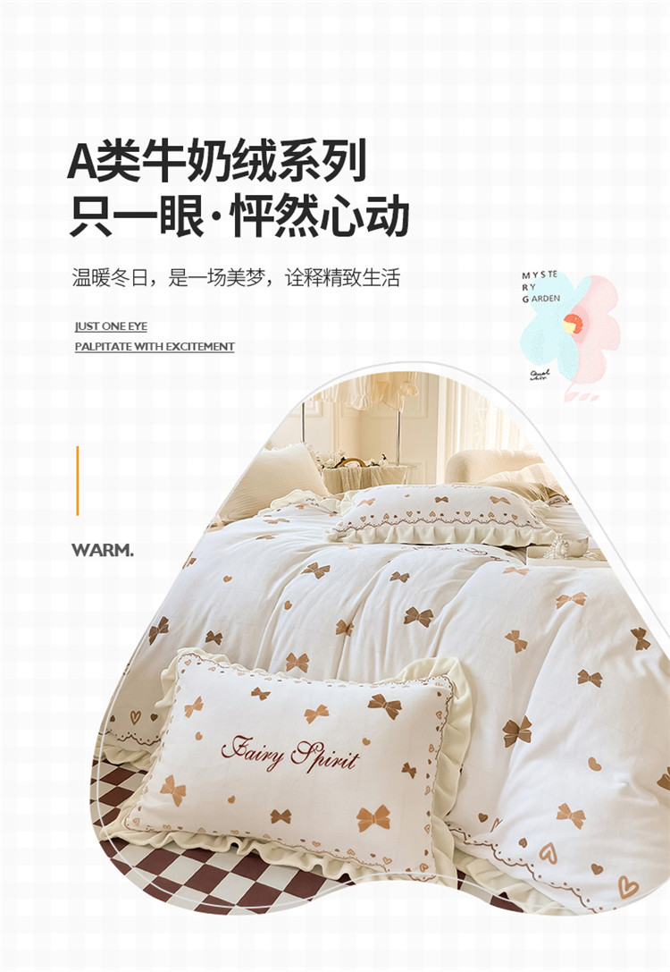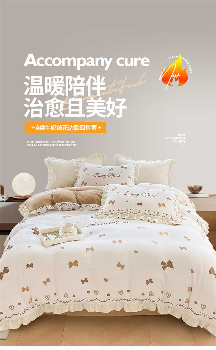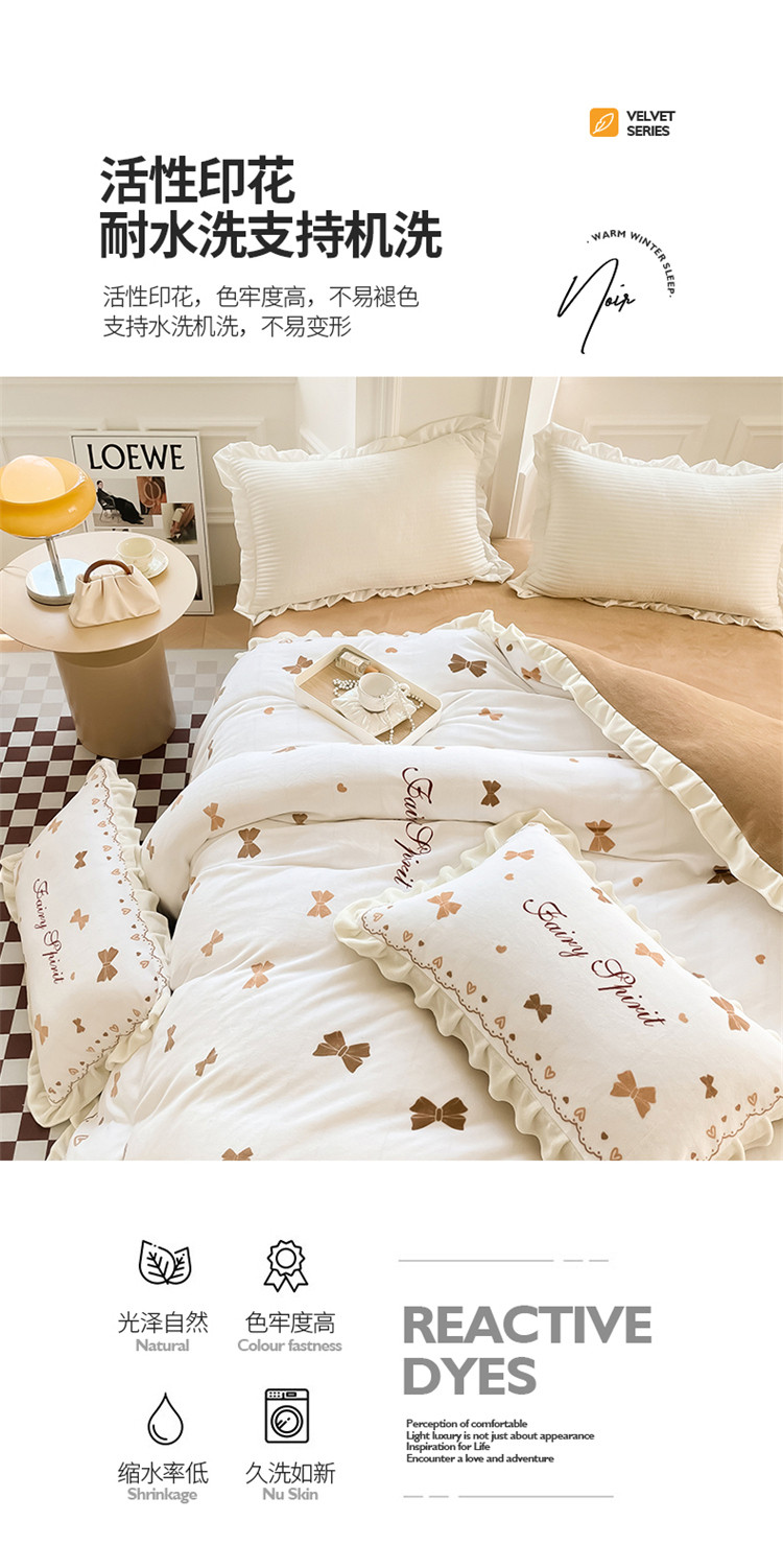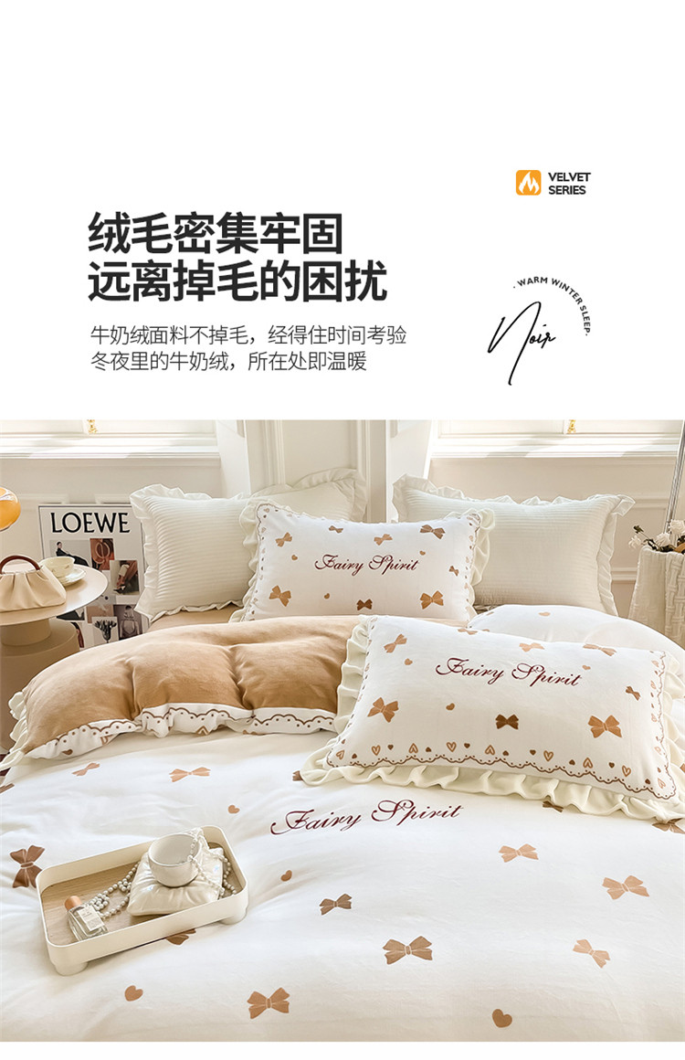 (总)懒猫家纺 2025新款亲肤舒适牛奶绒四件套-可可小姐系列,可可小姐-瓷白,可可小姐-水粉