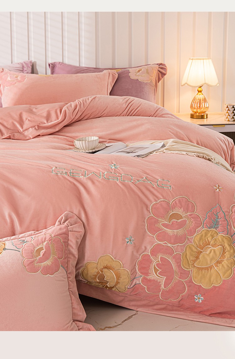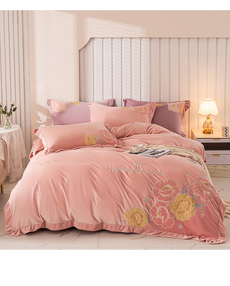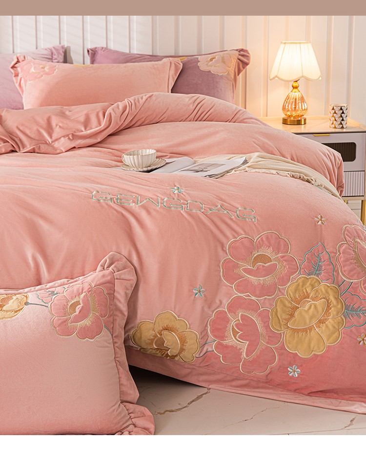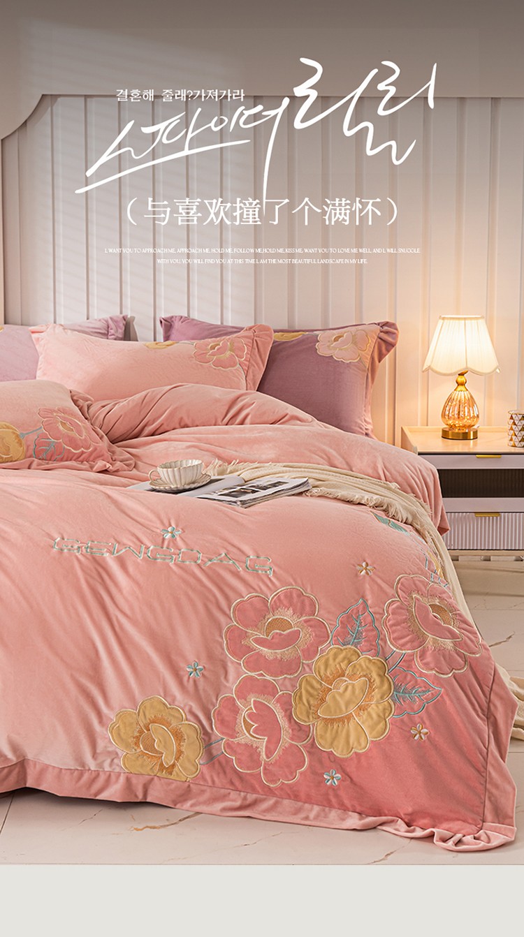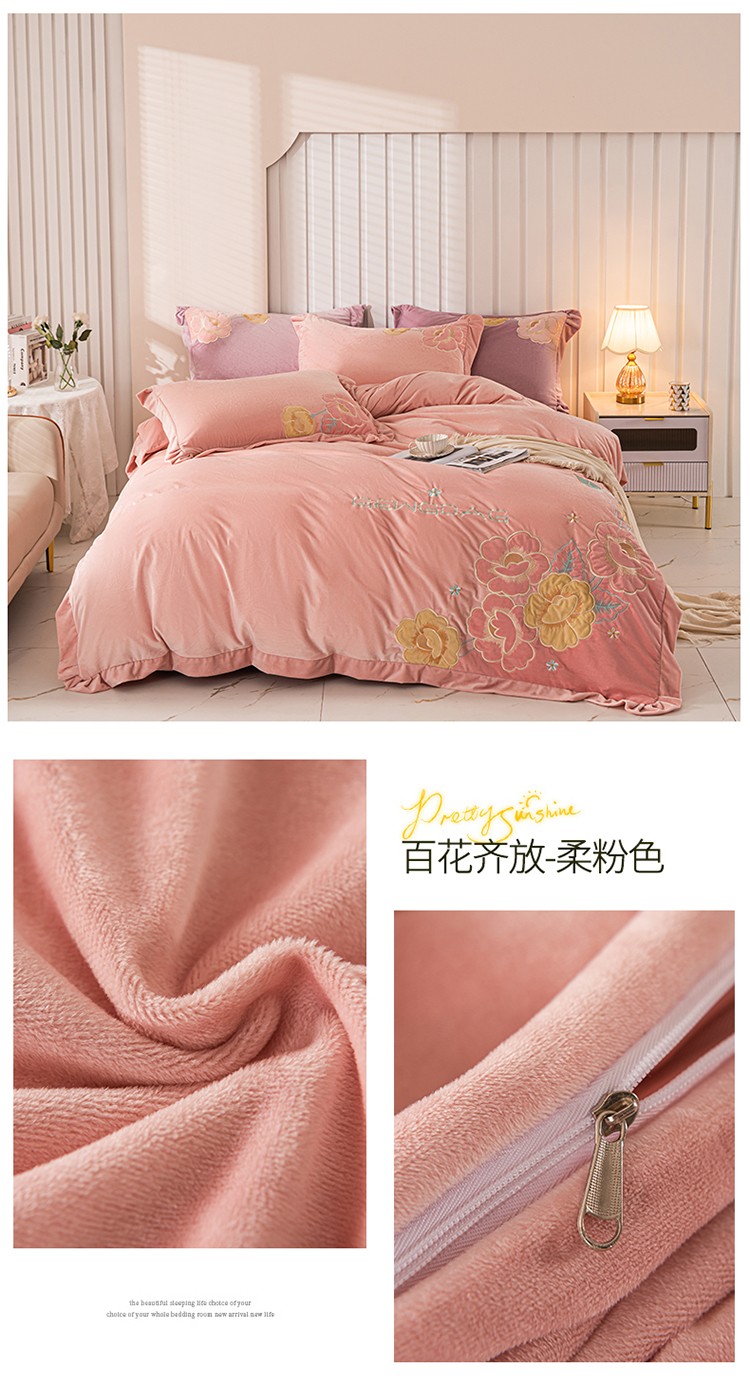 (总)名品优仓 2025新款220克牛奶绒绣花四件套-珊瑚,珊瑚-宝石蓝,珊瑚-粉色,珊瑚-姜黄,珊瑚-米杏,珊瑚-沫粉,珊瑚-杏粉