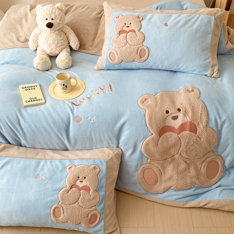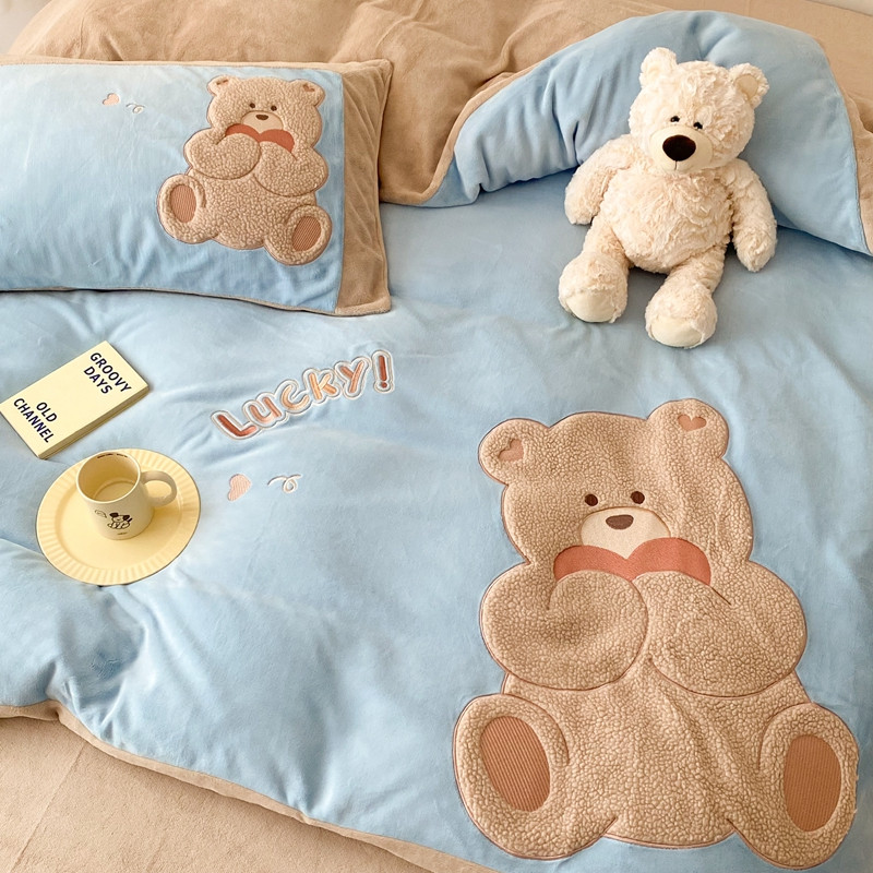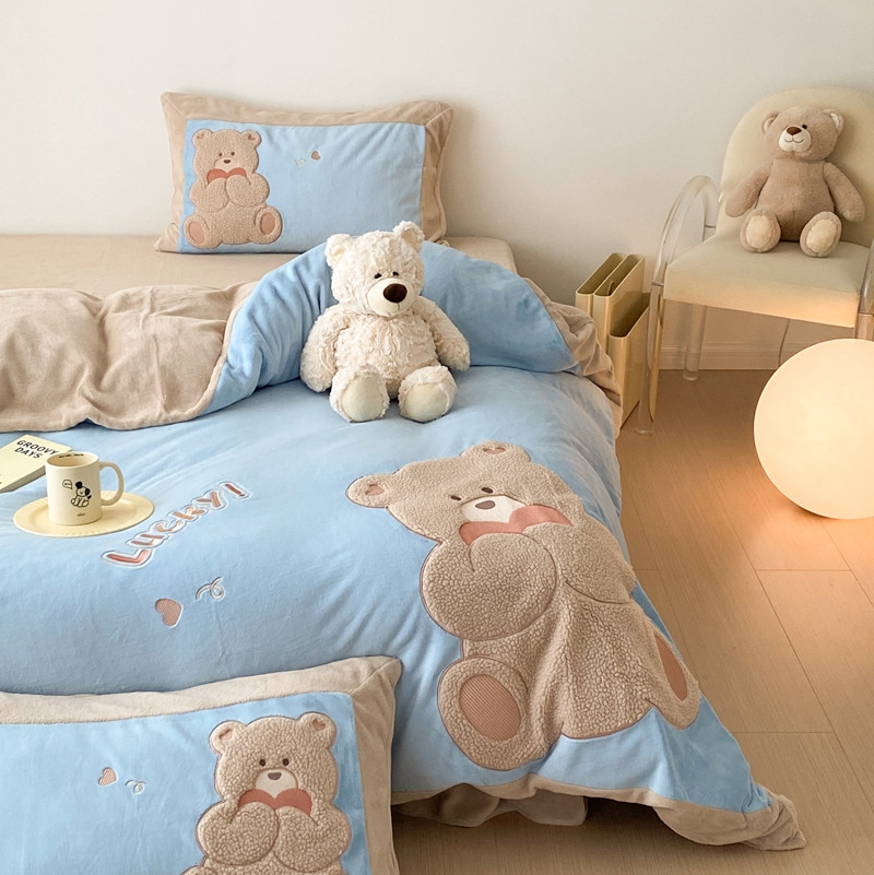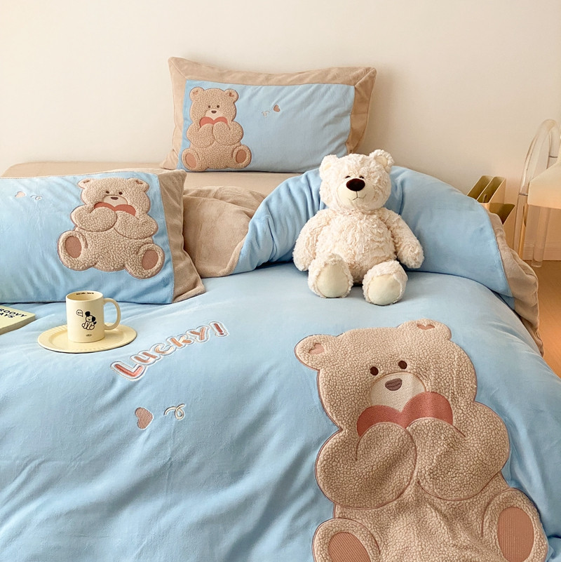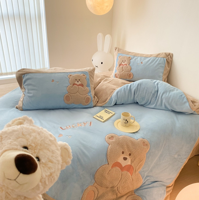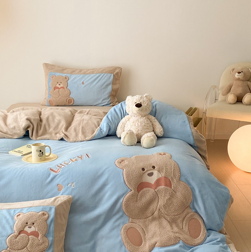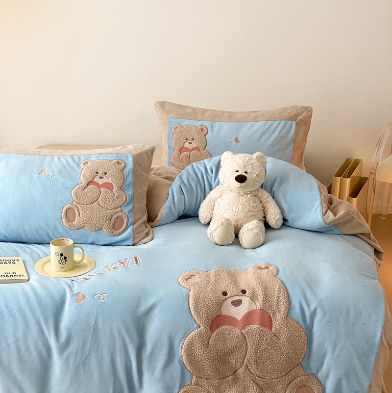 橘滋 2022新款高端系列牛奶绒贴布绣四件套-爱心熊 爱心熊-蓝
