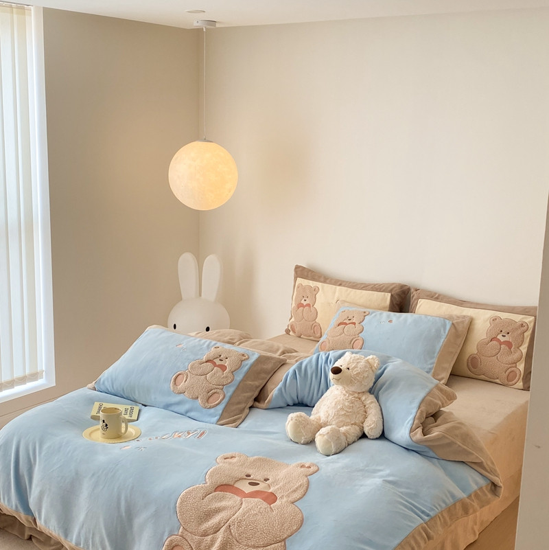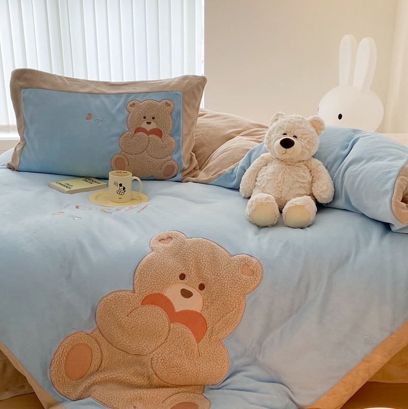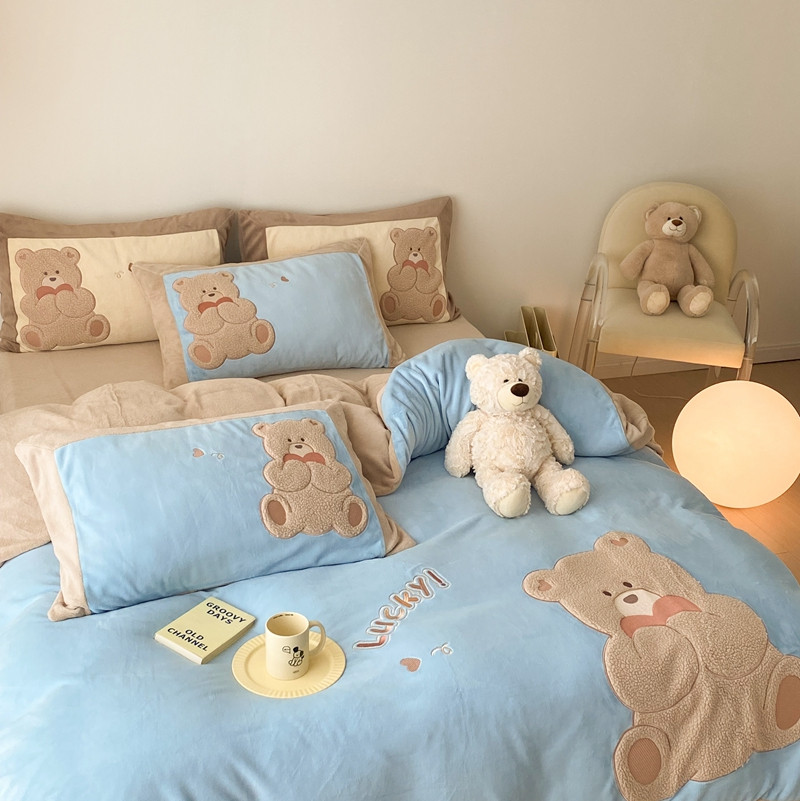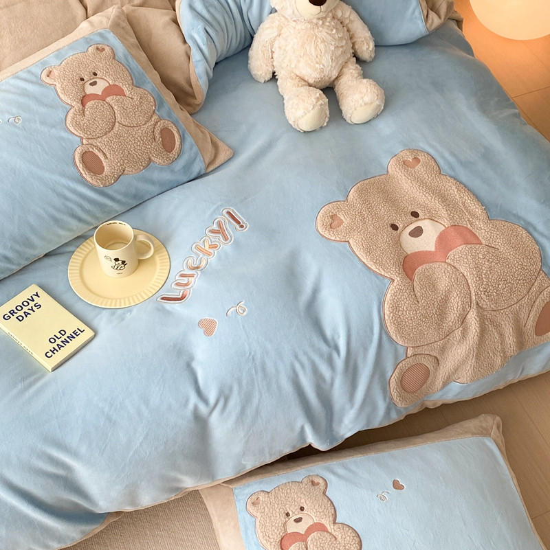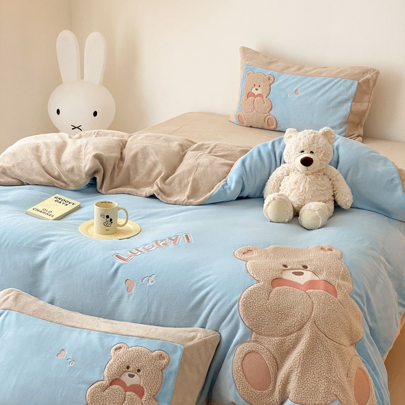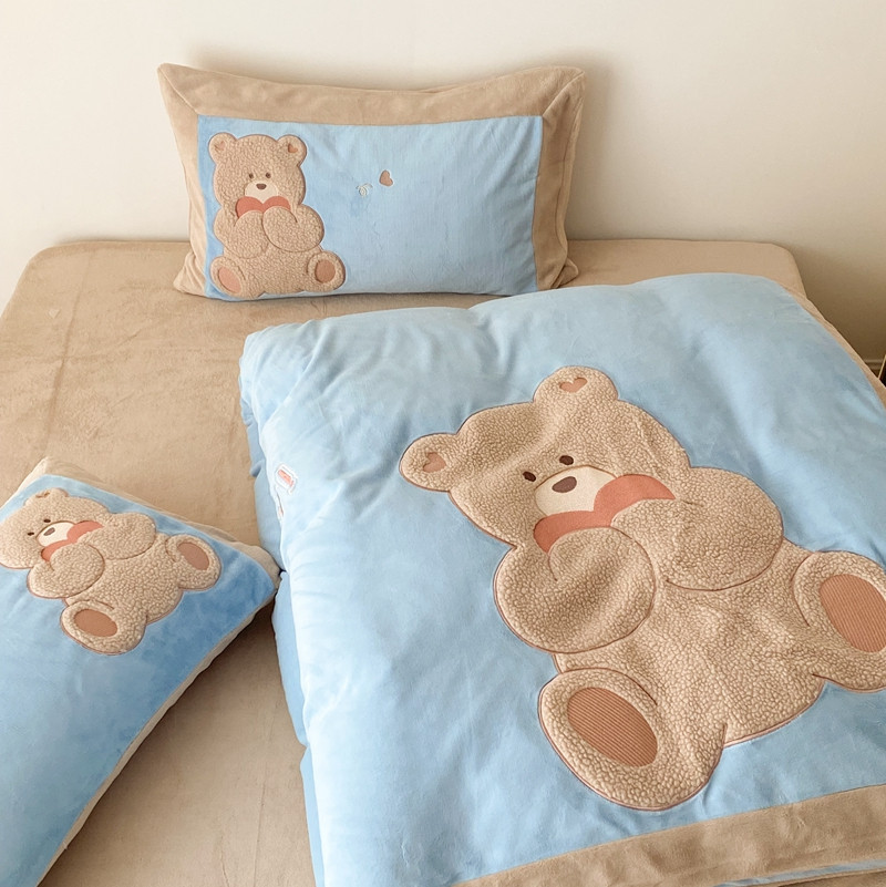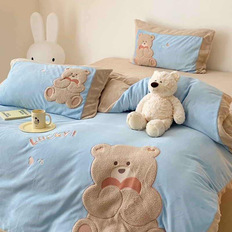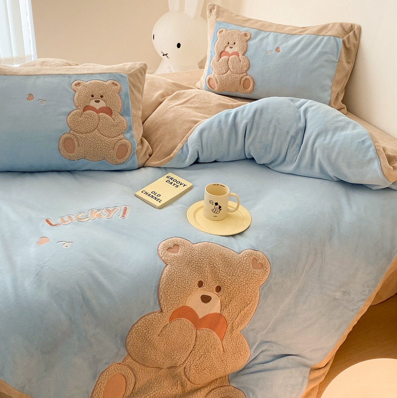 橘滋 2022新款高端系列牛奶绒贴布绣四件套-爱心熊 爱心熊-蓝