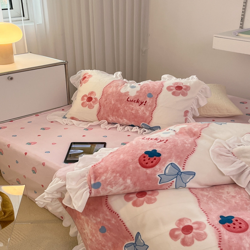 (总)昔可家纺 2024新款印花牛奶绒四件套系列-洛丽塔风,萝莉小兔,小熊烘焙屋,小熊玩偶屋