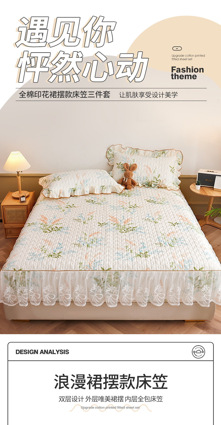(总)宜凡家纺 2025新款全棉数码印花床裙三件套系列一,静若幽兰,浮云织梦,梦幻花园,陌上花开